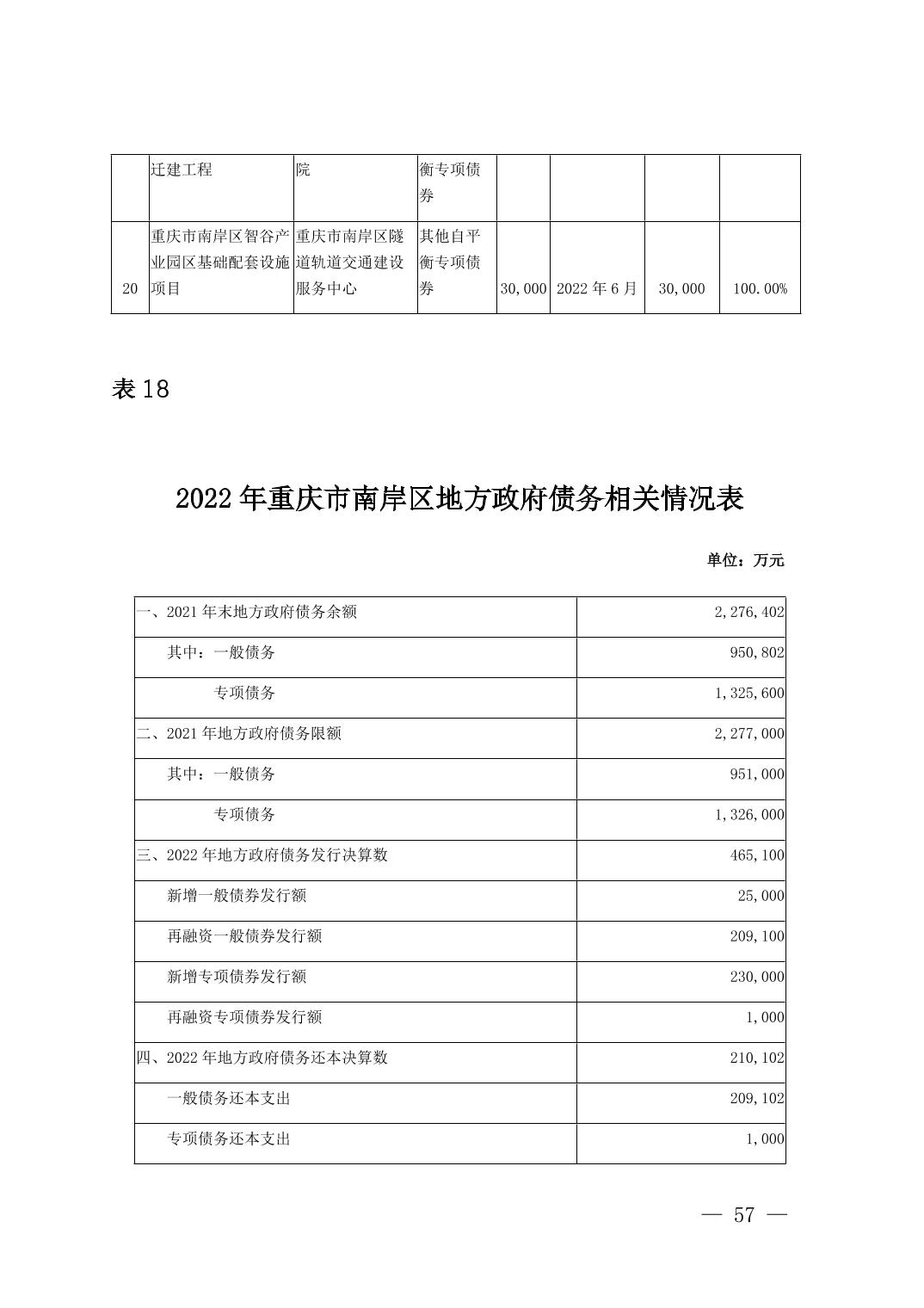 重庆市南岸区人民政府 关于2022年财政总决算草案情况的报告