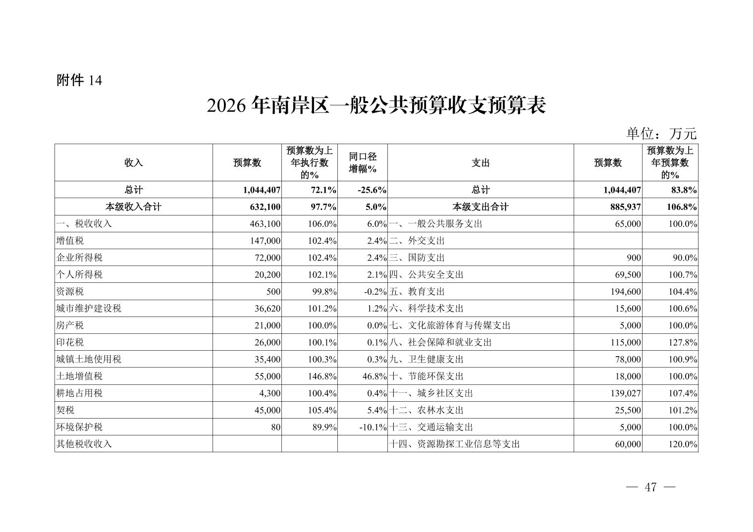 重庆市南岸区2025年财政预算执行情况和2026年财政预算草案的报告