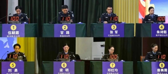 经过两个阶段的激烈角逐,最终南坪镇派出所民警朱诗懿、花园路派出所辅警梁玥获得一等奖;茶园派出所民警甘路、花园路派出所民警张军、茶园派出所辅警唐美霞获得二等奖;南滨路派出所民警伍朝霞、龙门浩派出所民警刘勇、花园路派出所辅警邓红均获得三等奖。