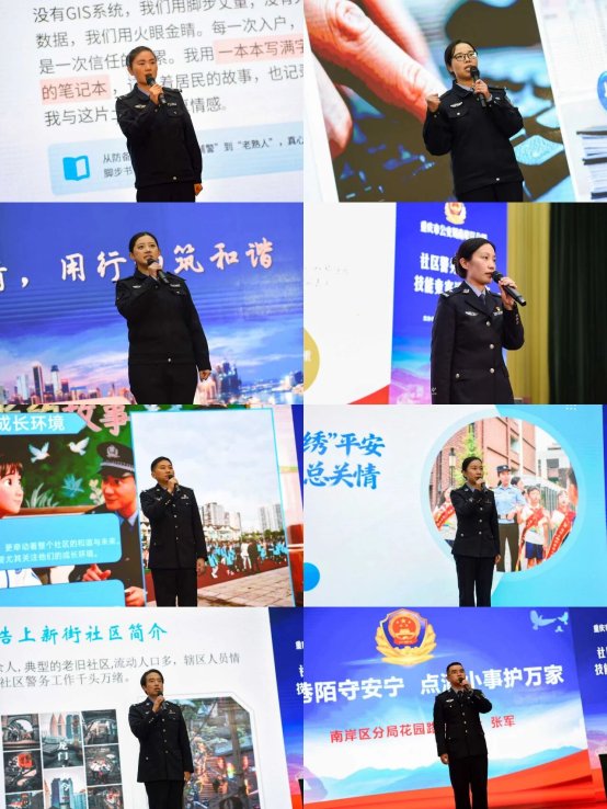 风采展示环节,参赛选手依次走上讲台,通过课件展示社区警务工作情况,比措施赛成绩、比亮点赛创新,充分展示各自的社区警务“独门绝活”,呈现了一场业务能力的“高水平”对决。