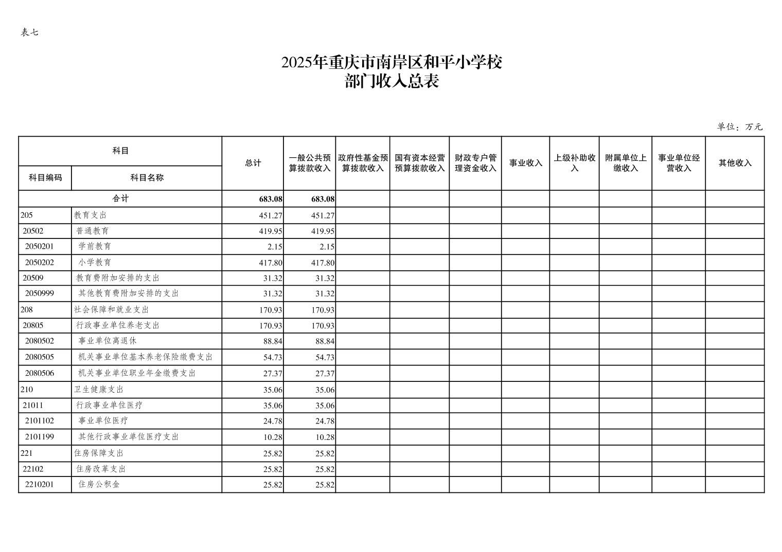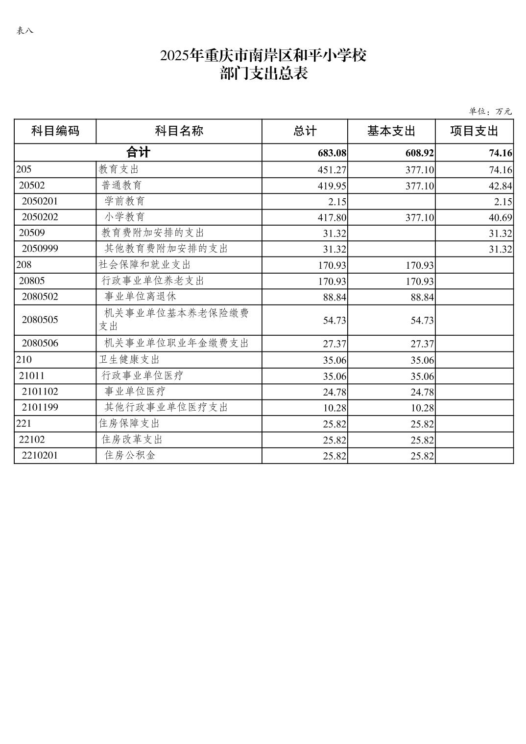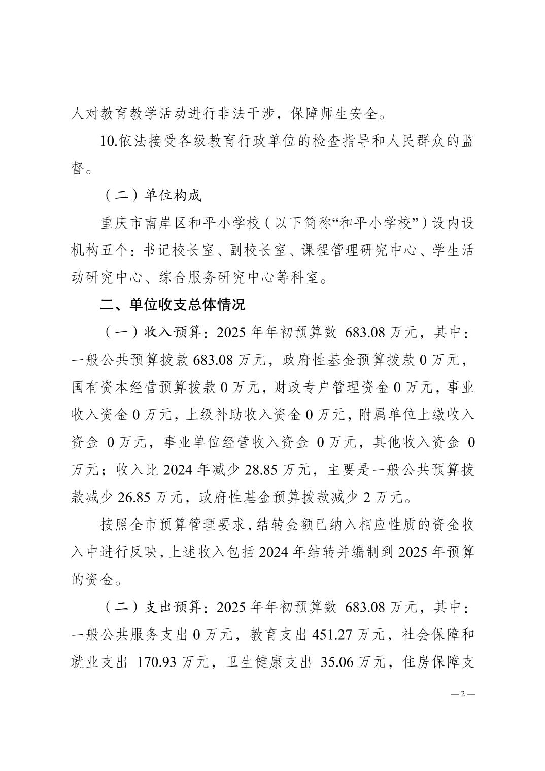 重庆市南岸区和平小学校2025年单位预算情况说明