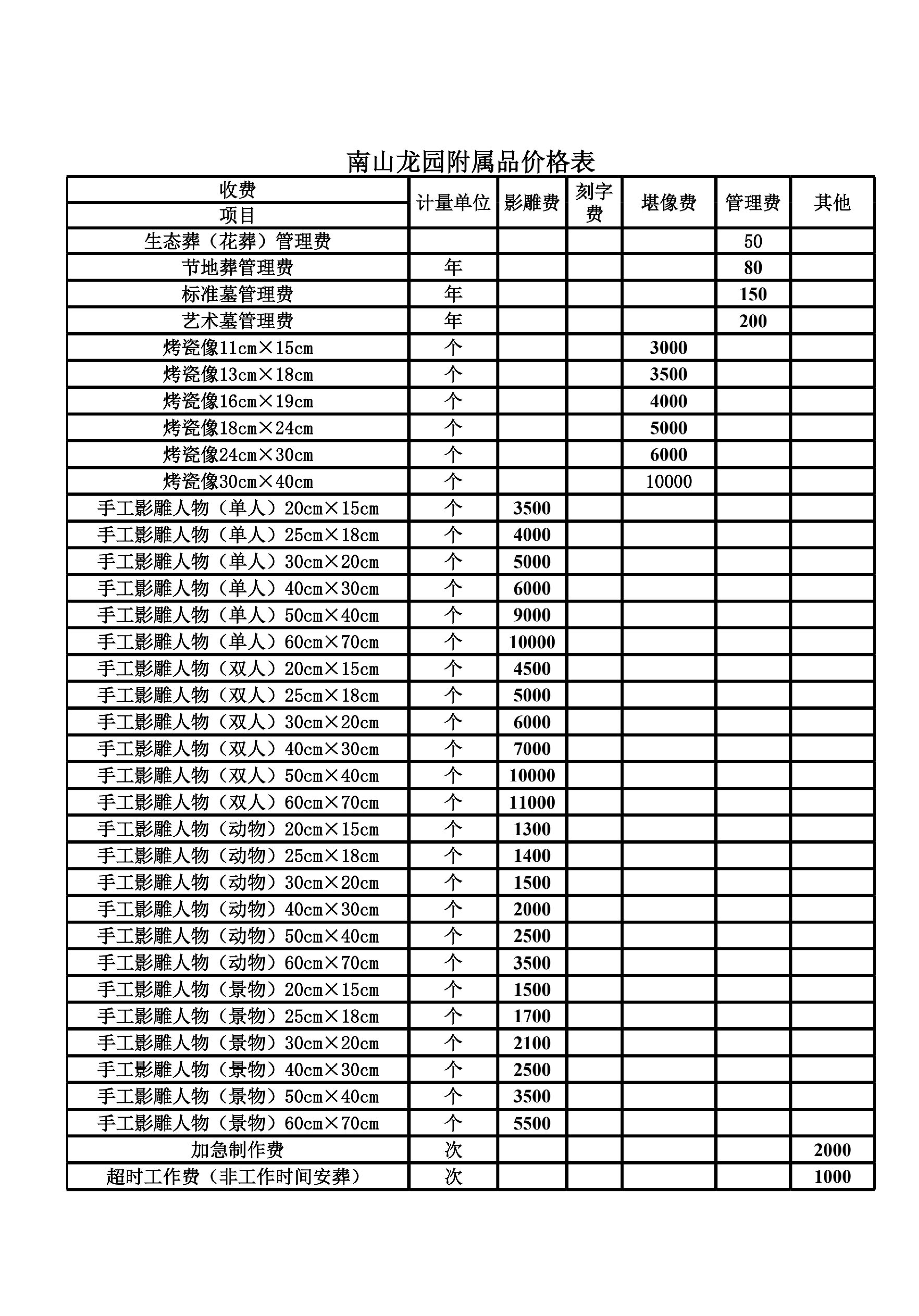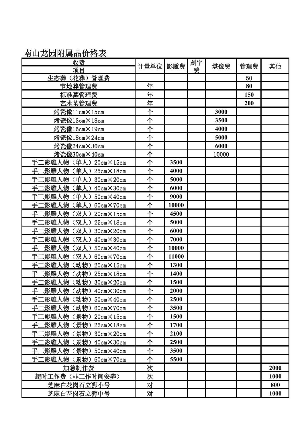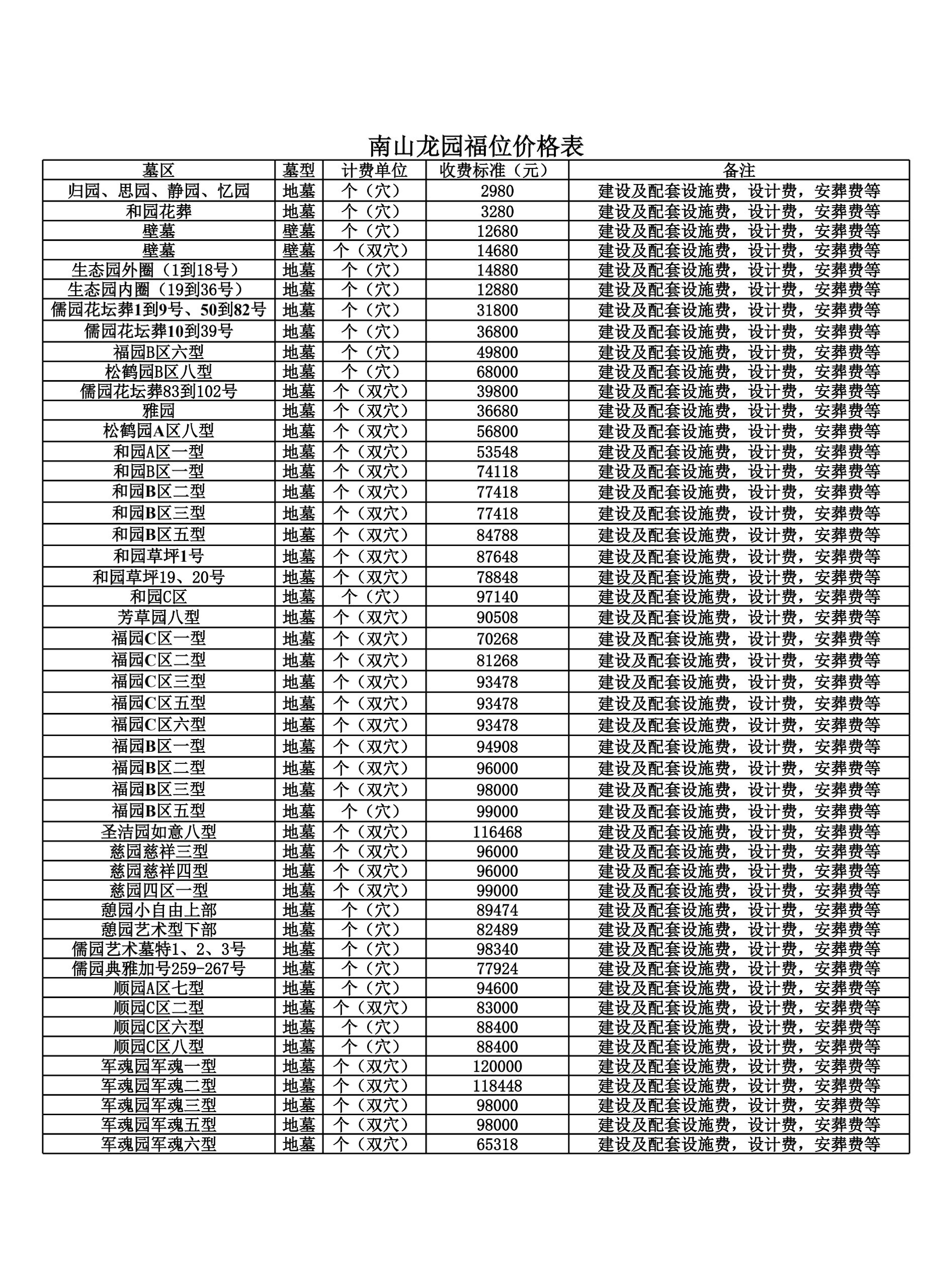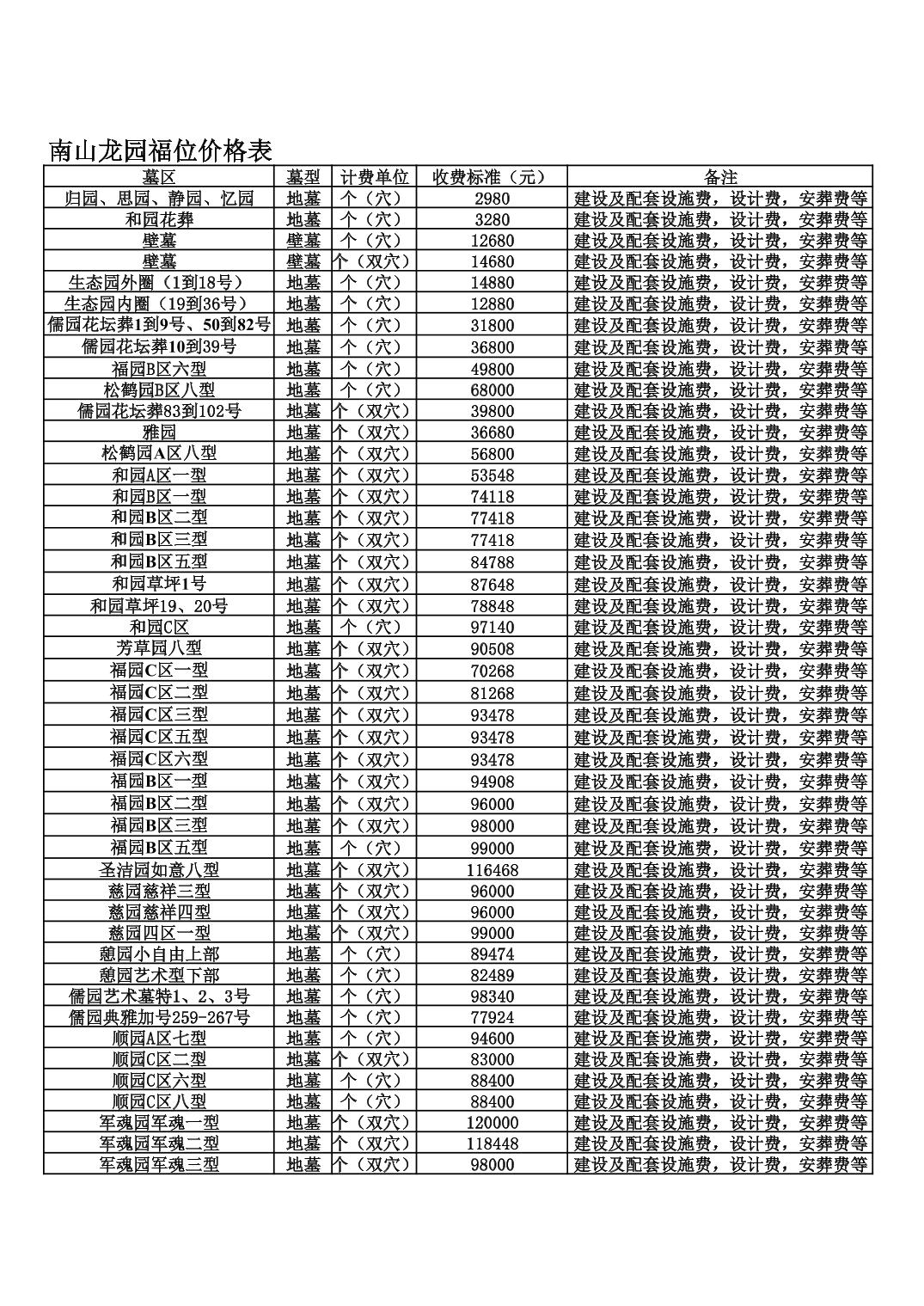 南山龙园价格公示