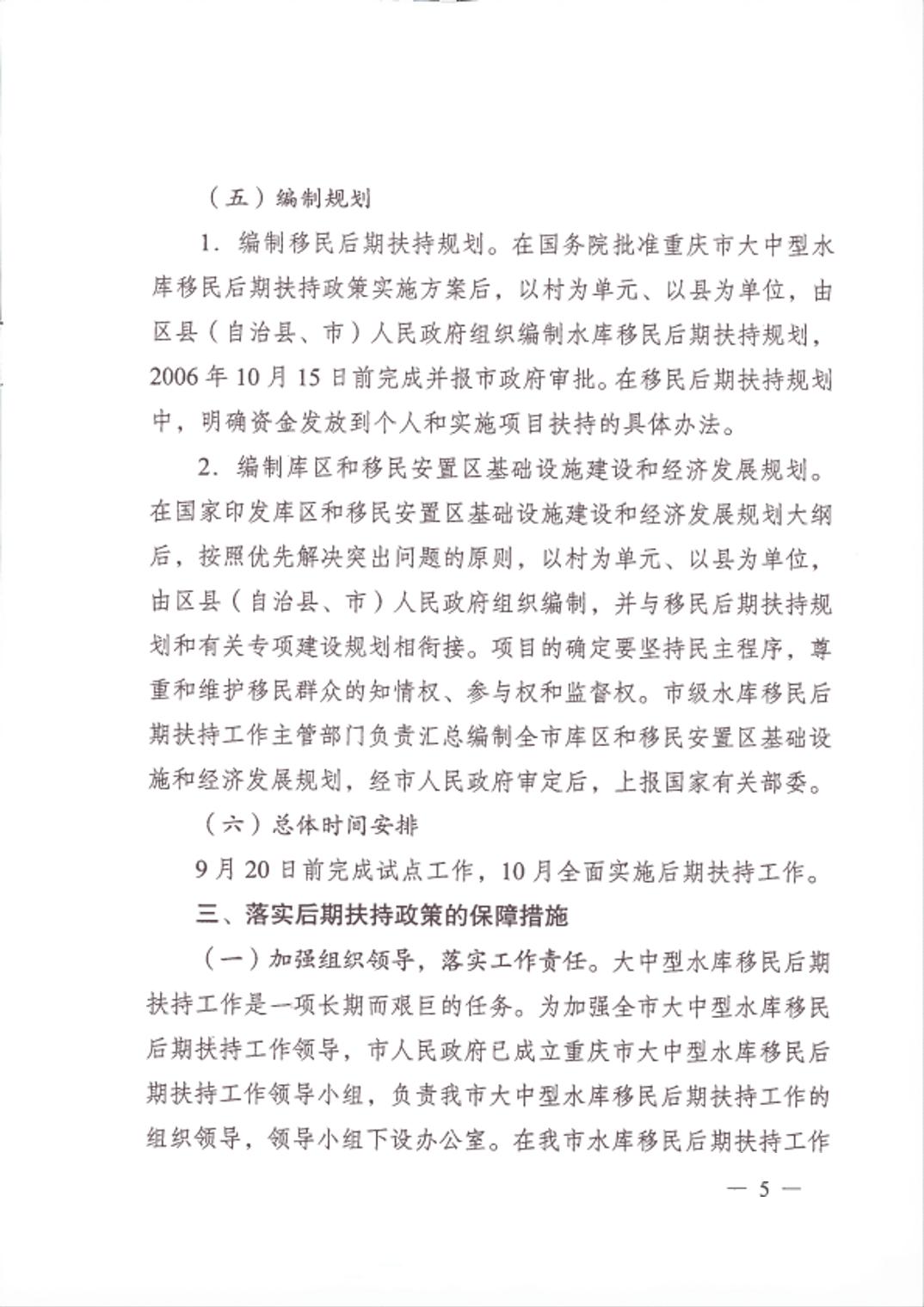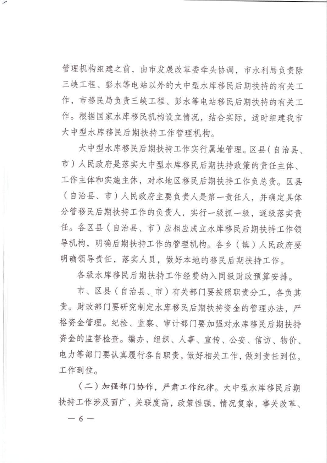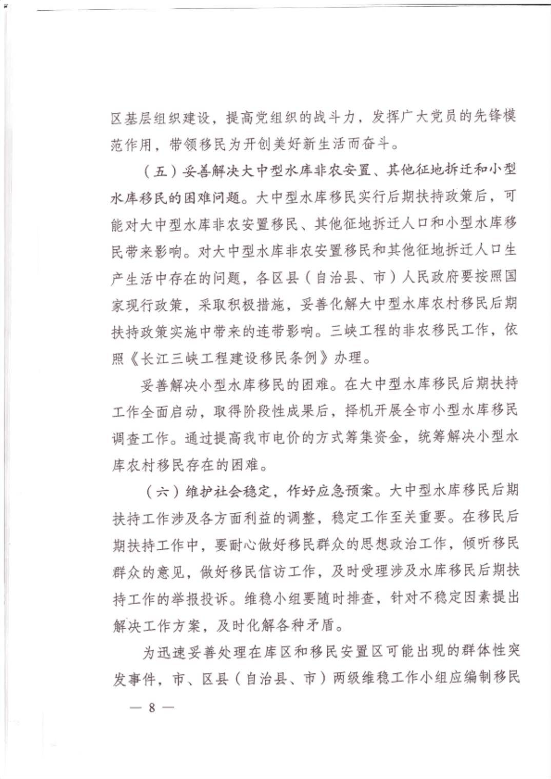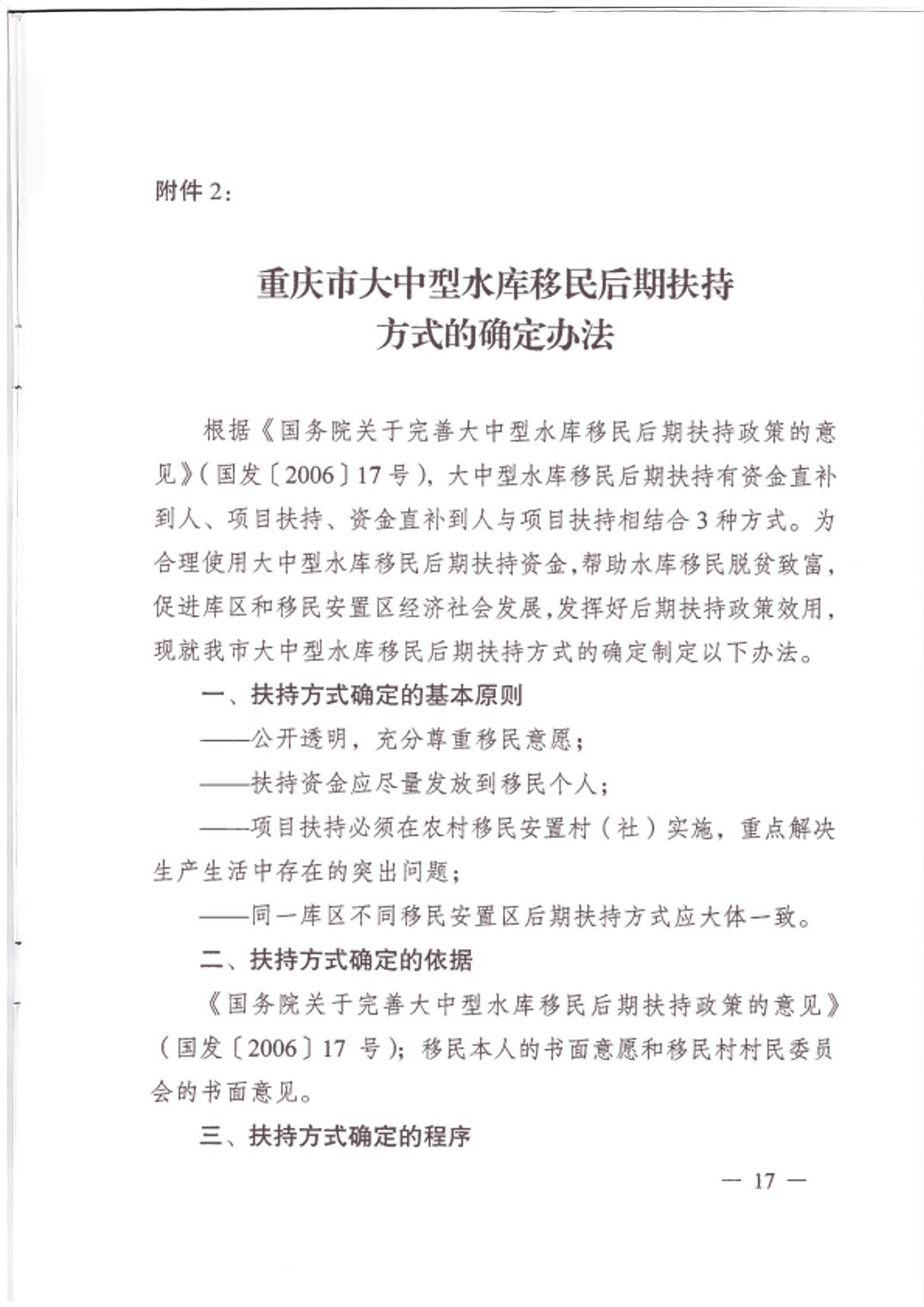 重庆市大中型水库移民后期扶持政策实施方案