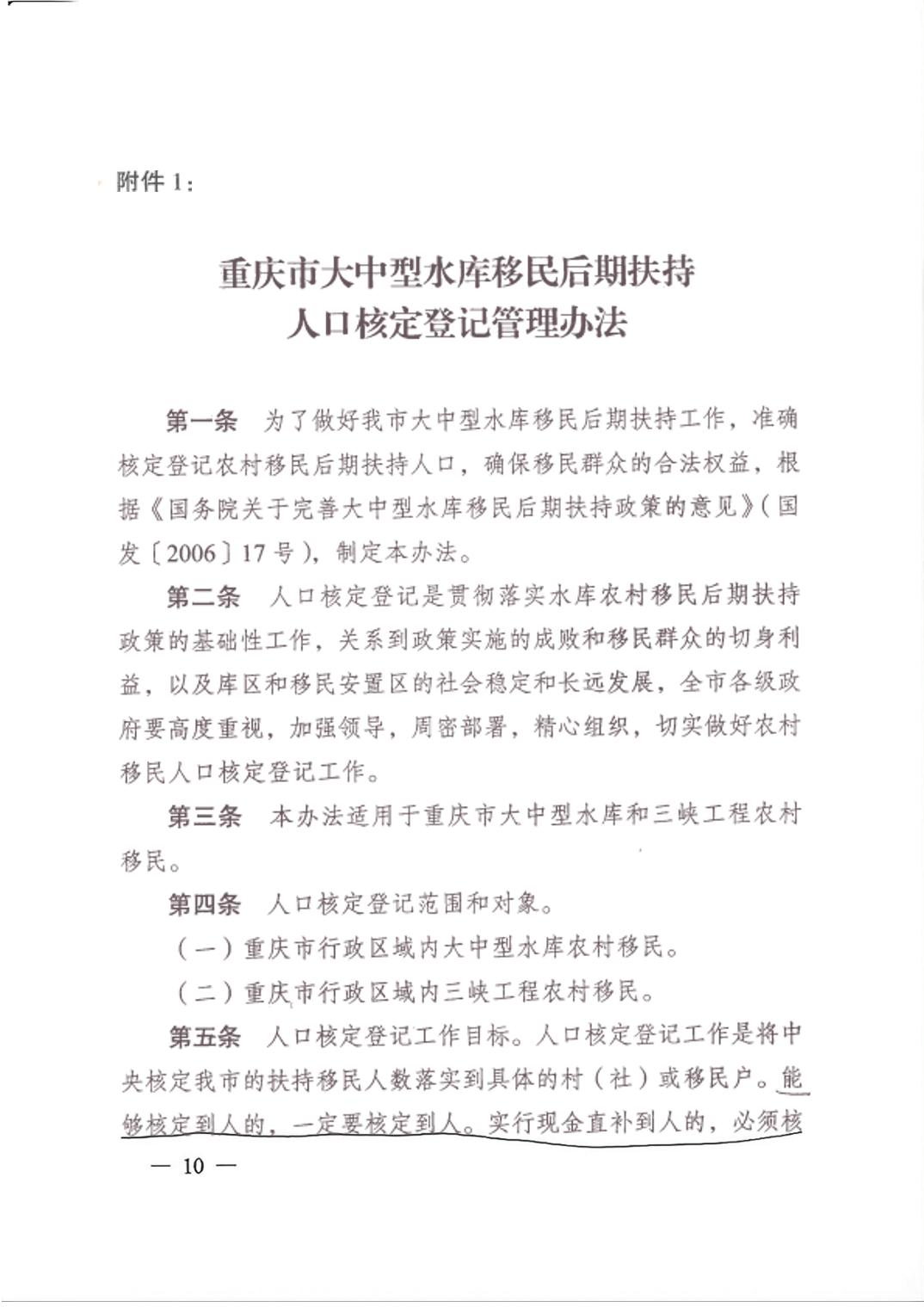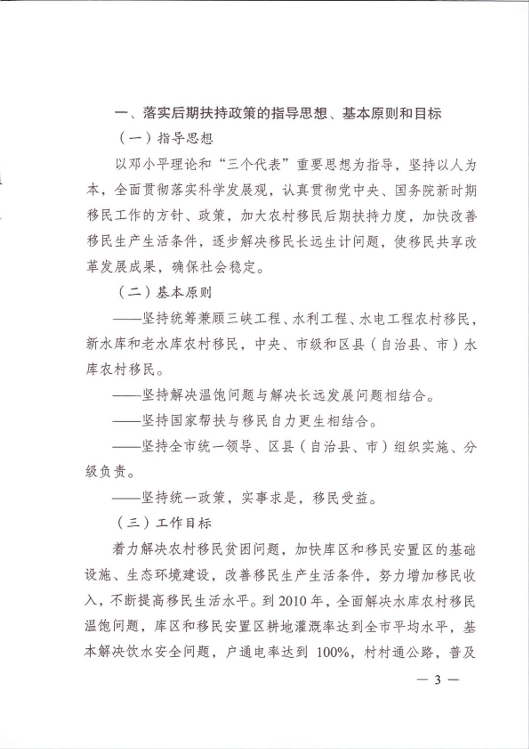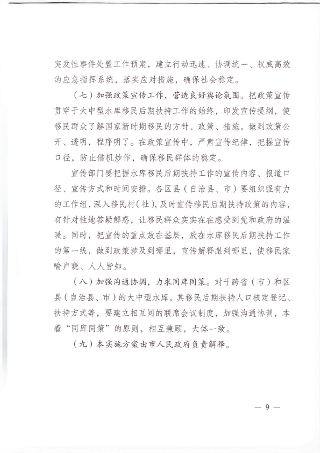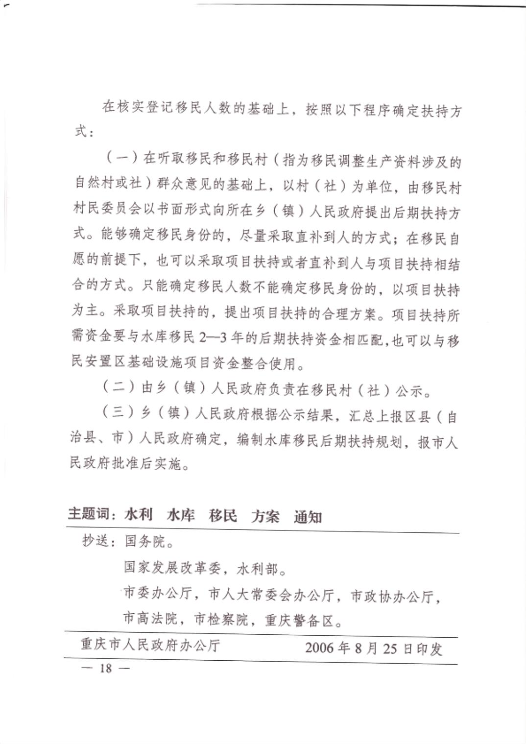 重庆市大中型水库移民后期扶持政策实施方案