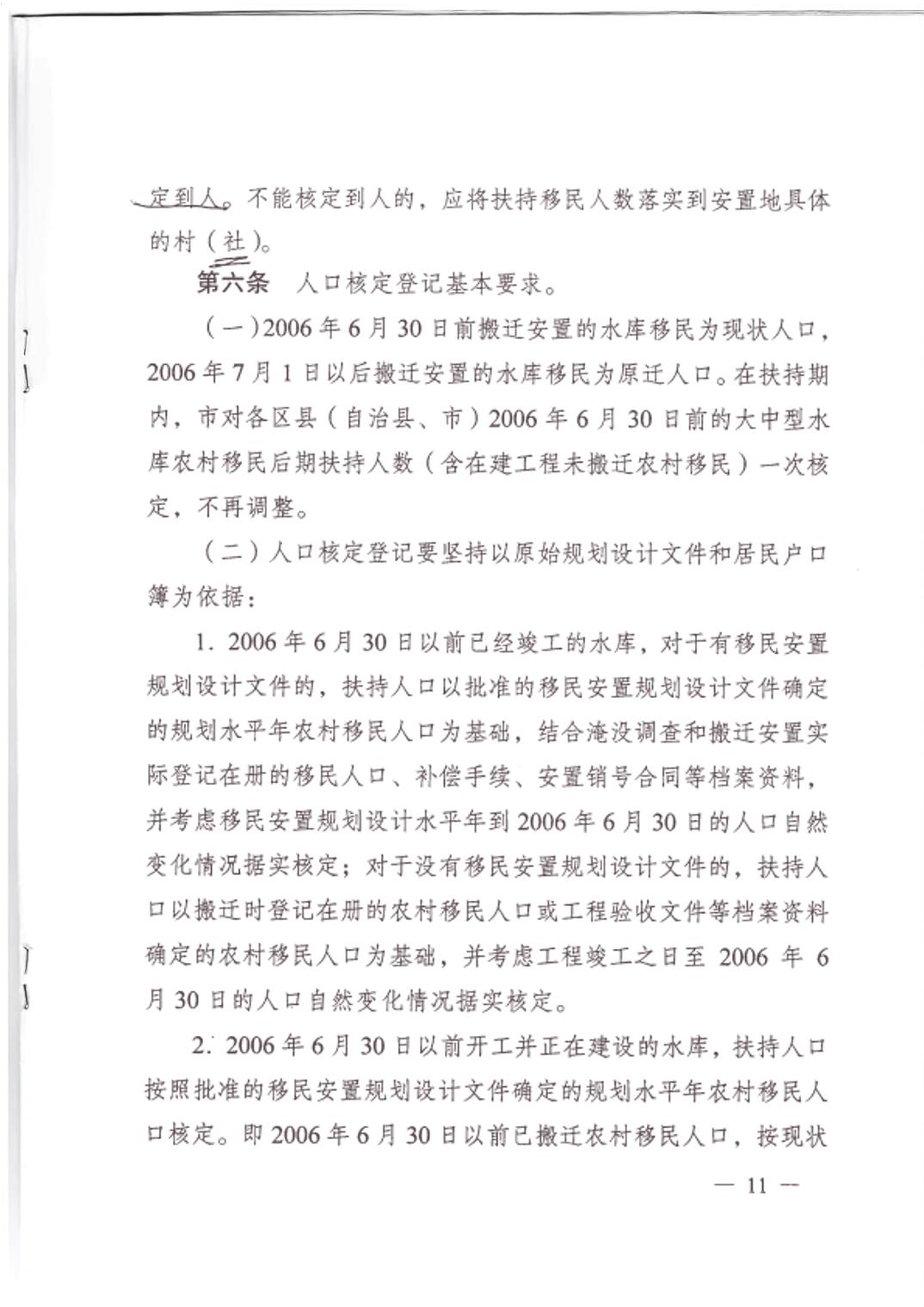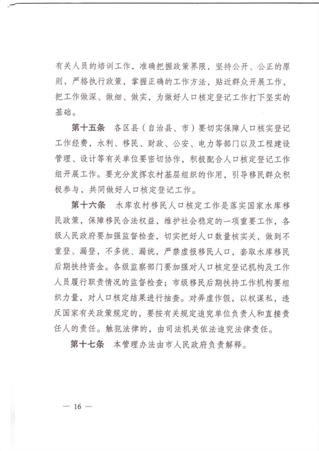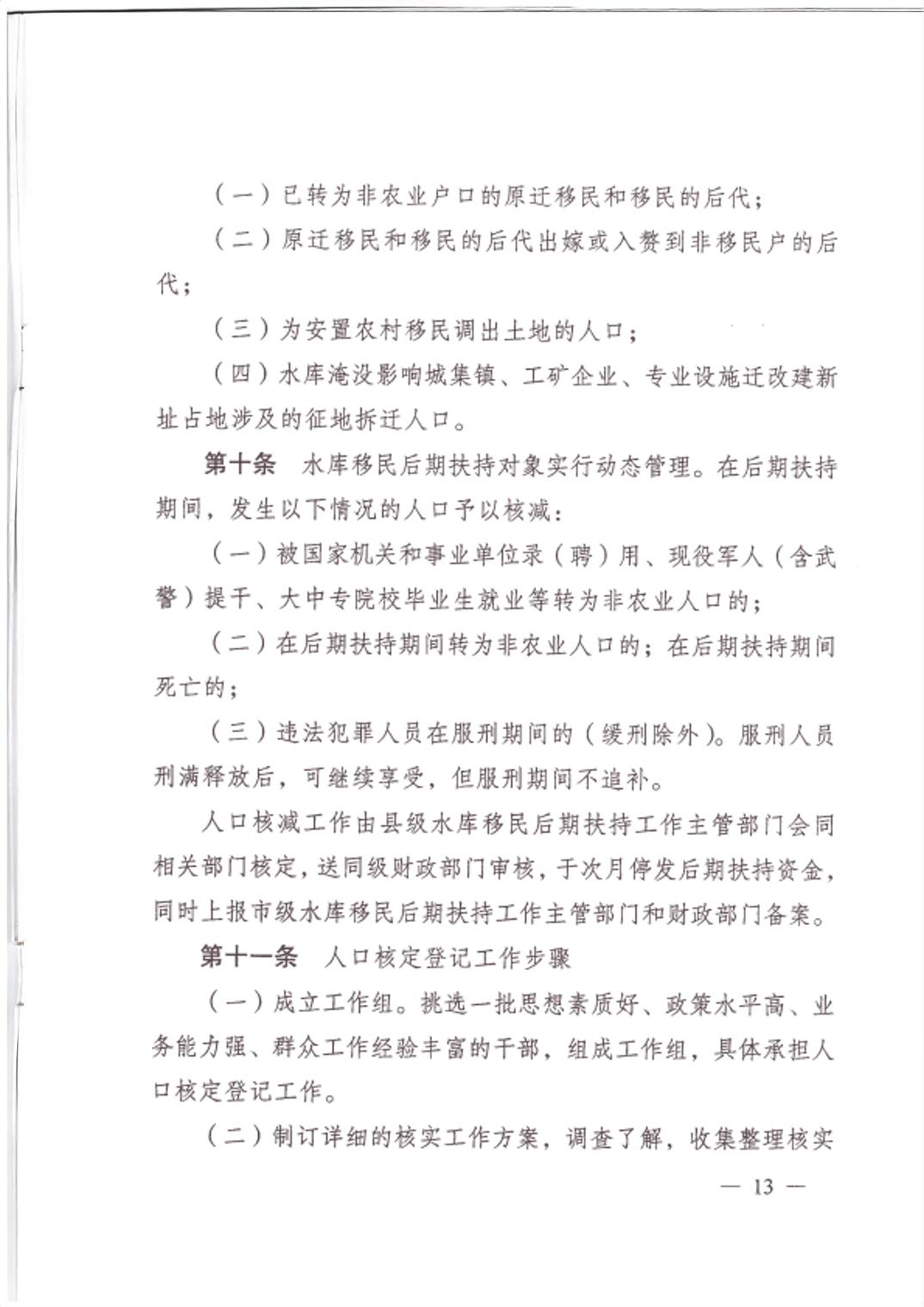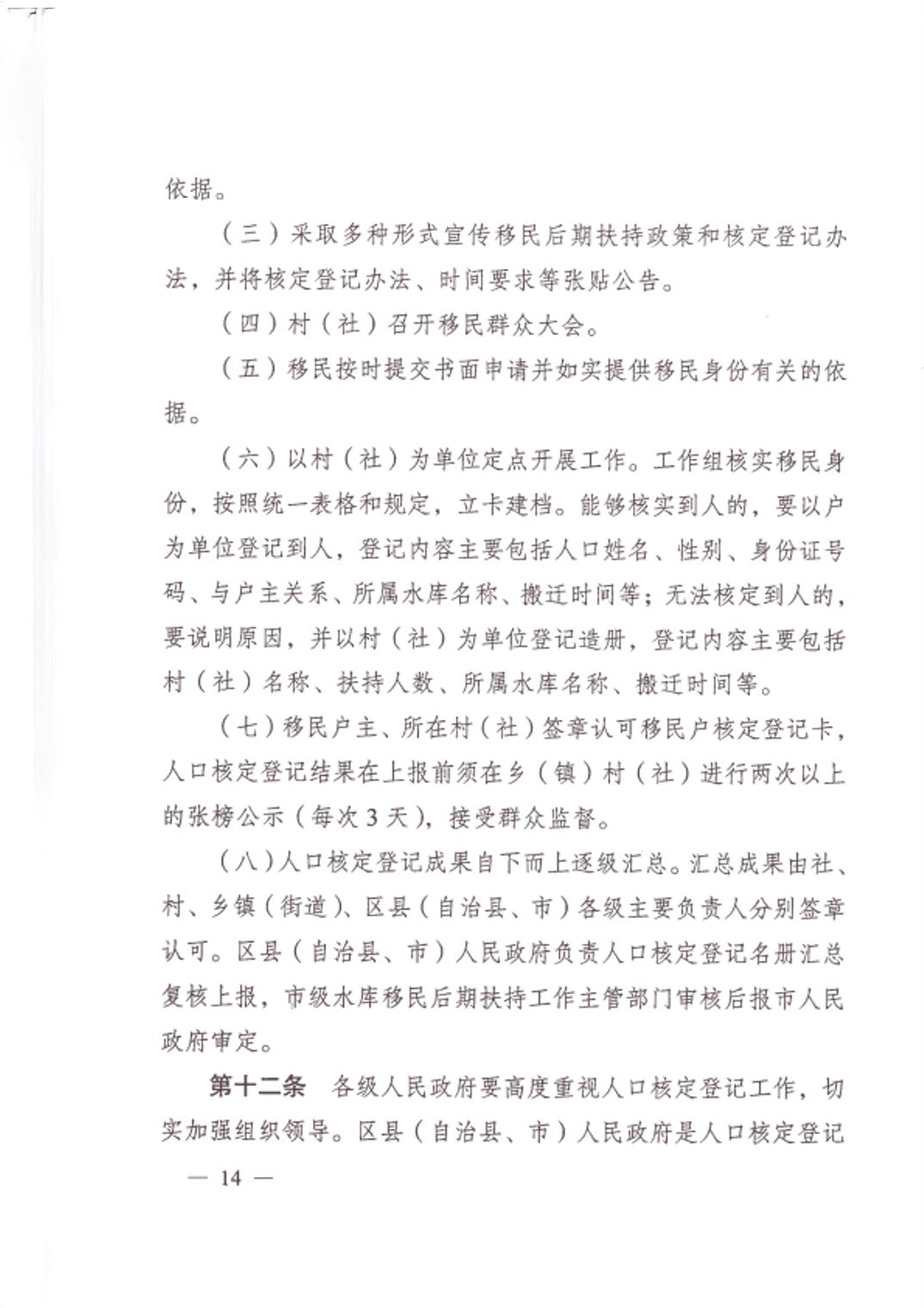 重庆市大中型水库移民后期扶持政策实施方案