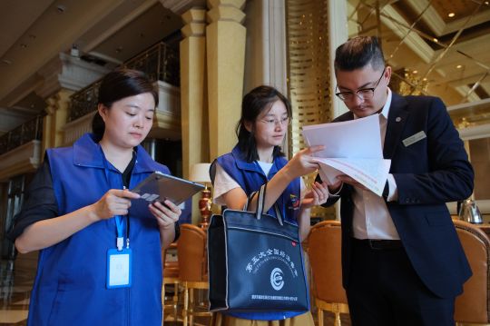 经济普查员开展第五次全国经济普查入户清查登记工作。记者郭旭摄