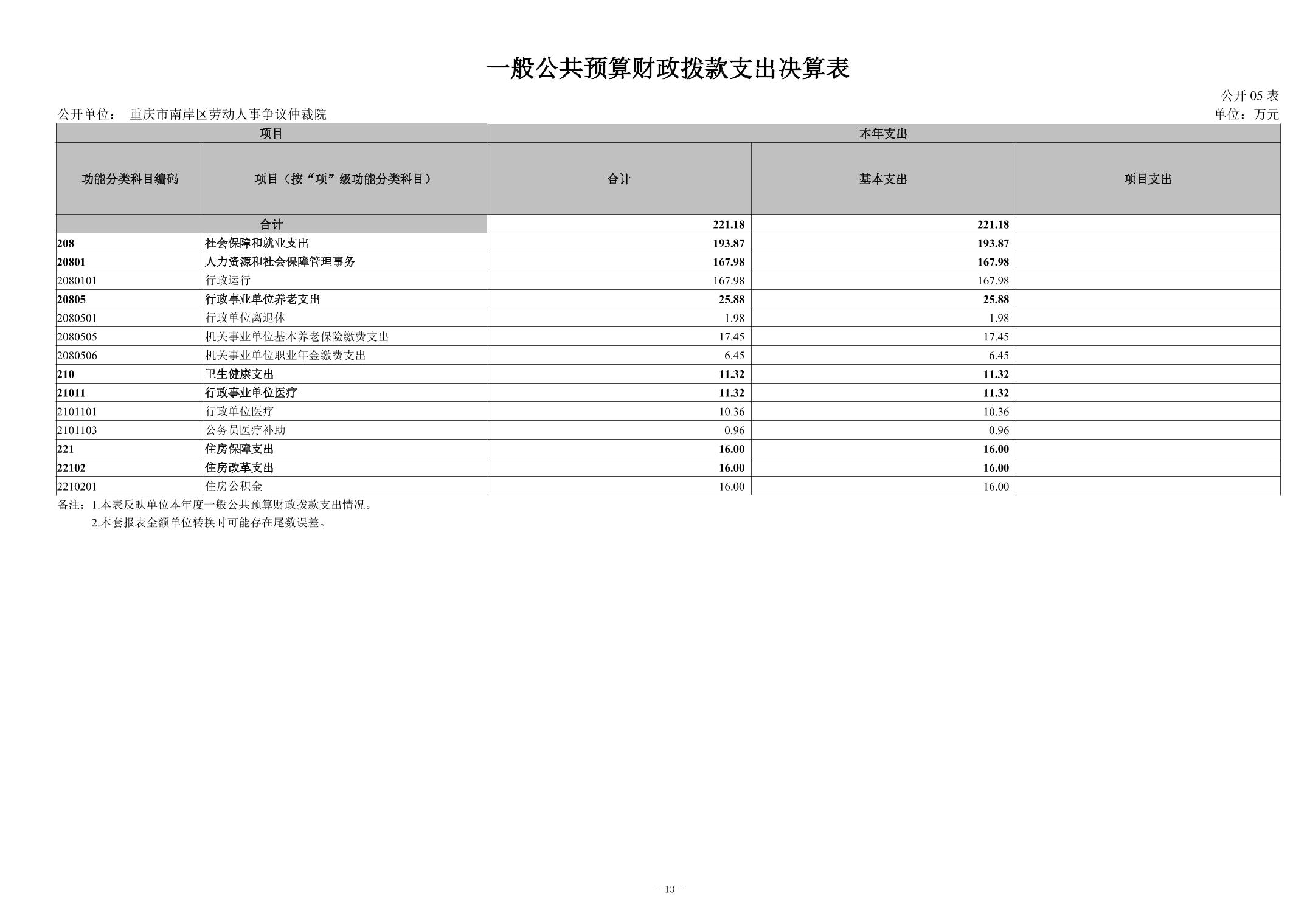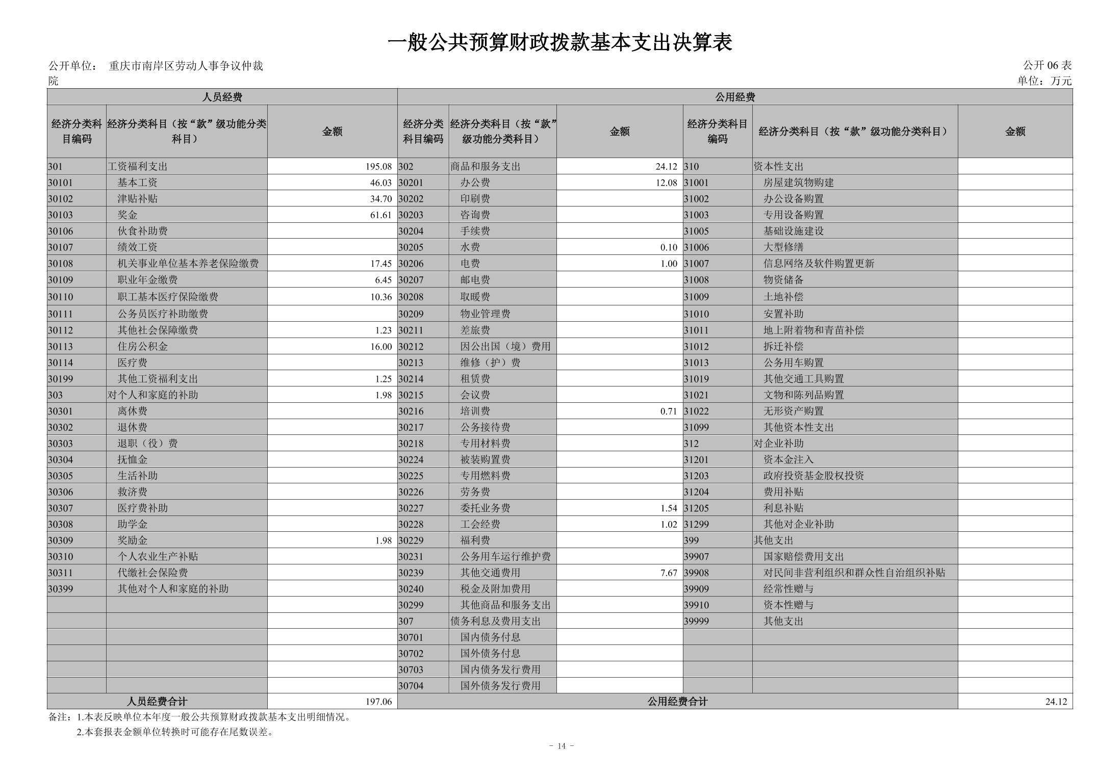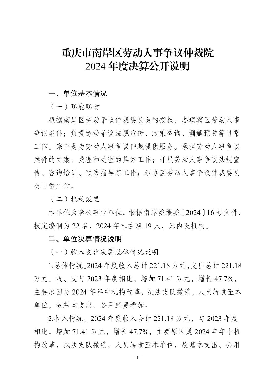 重庆市南岸区劳动人事争议仲裁院2024年度决算公开说明