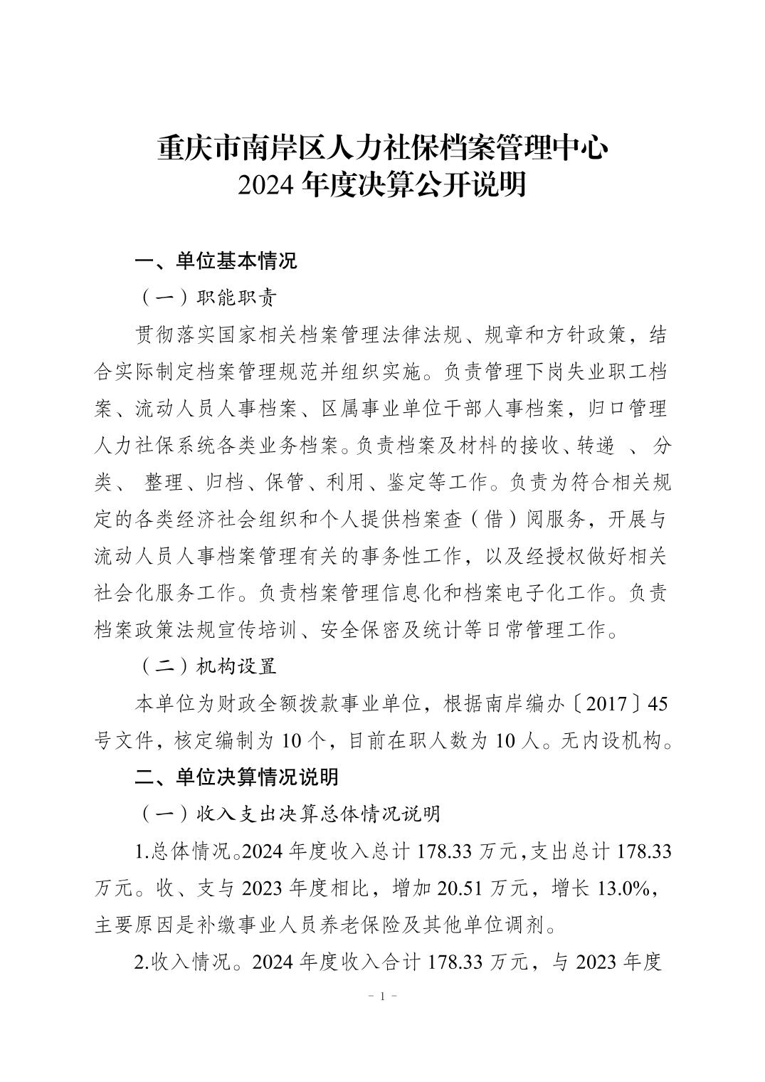 重庆市南岸区人力社保档案管理中心2024年度决算公开说明