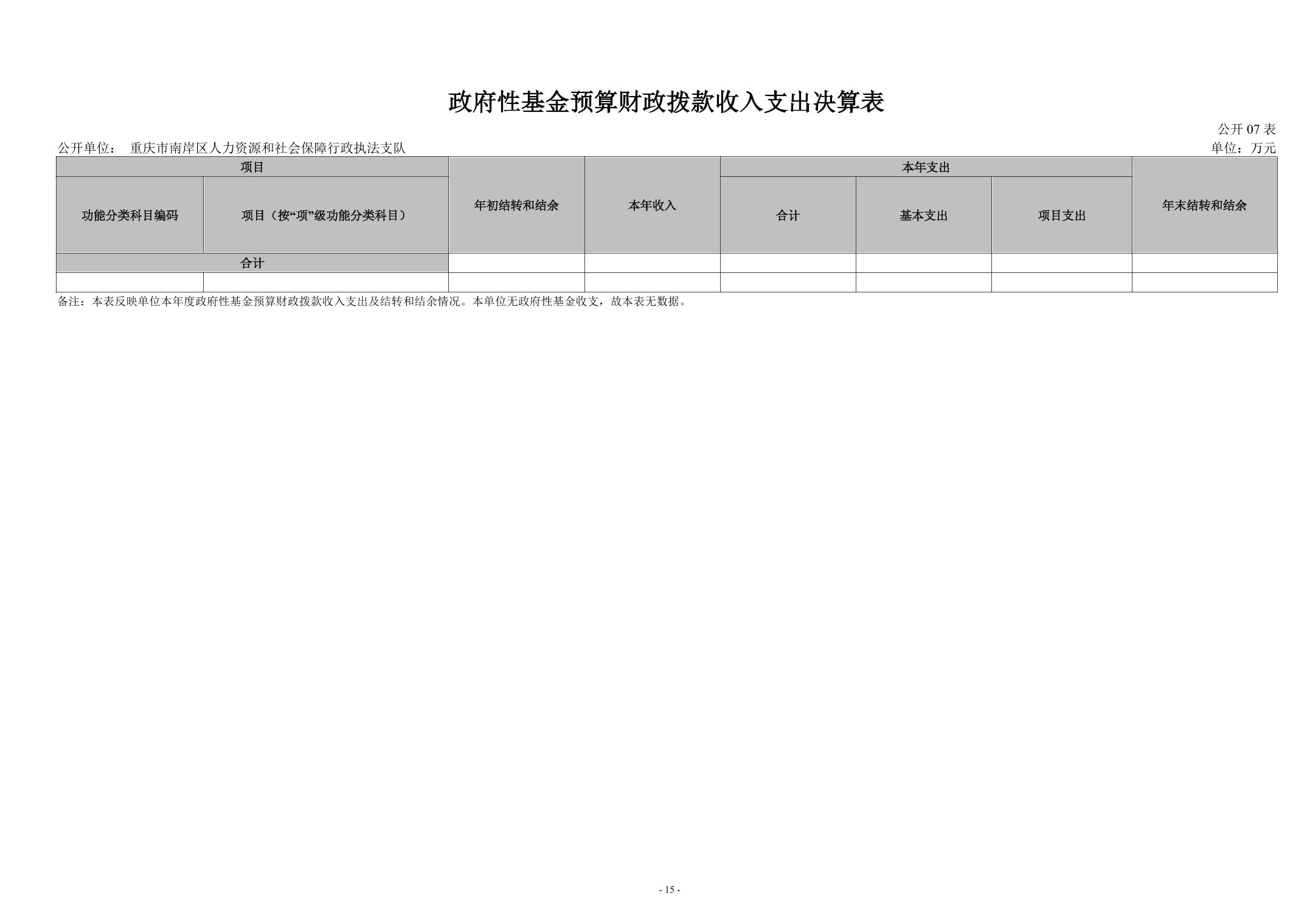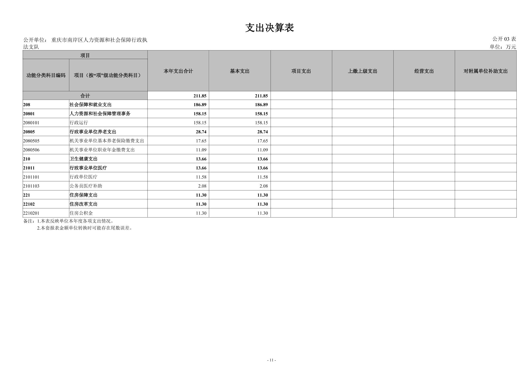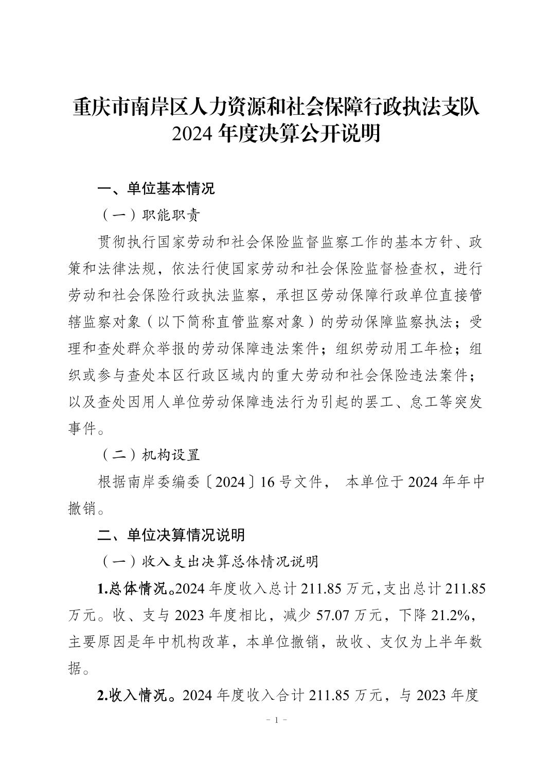 重庆市南岸区人力资源和社会保障行政执法支队2024年度决算公开说明