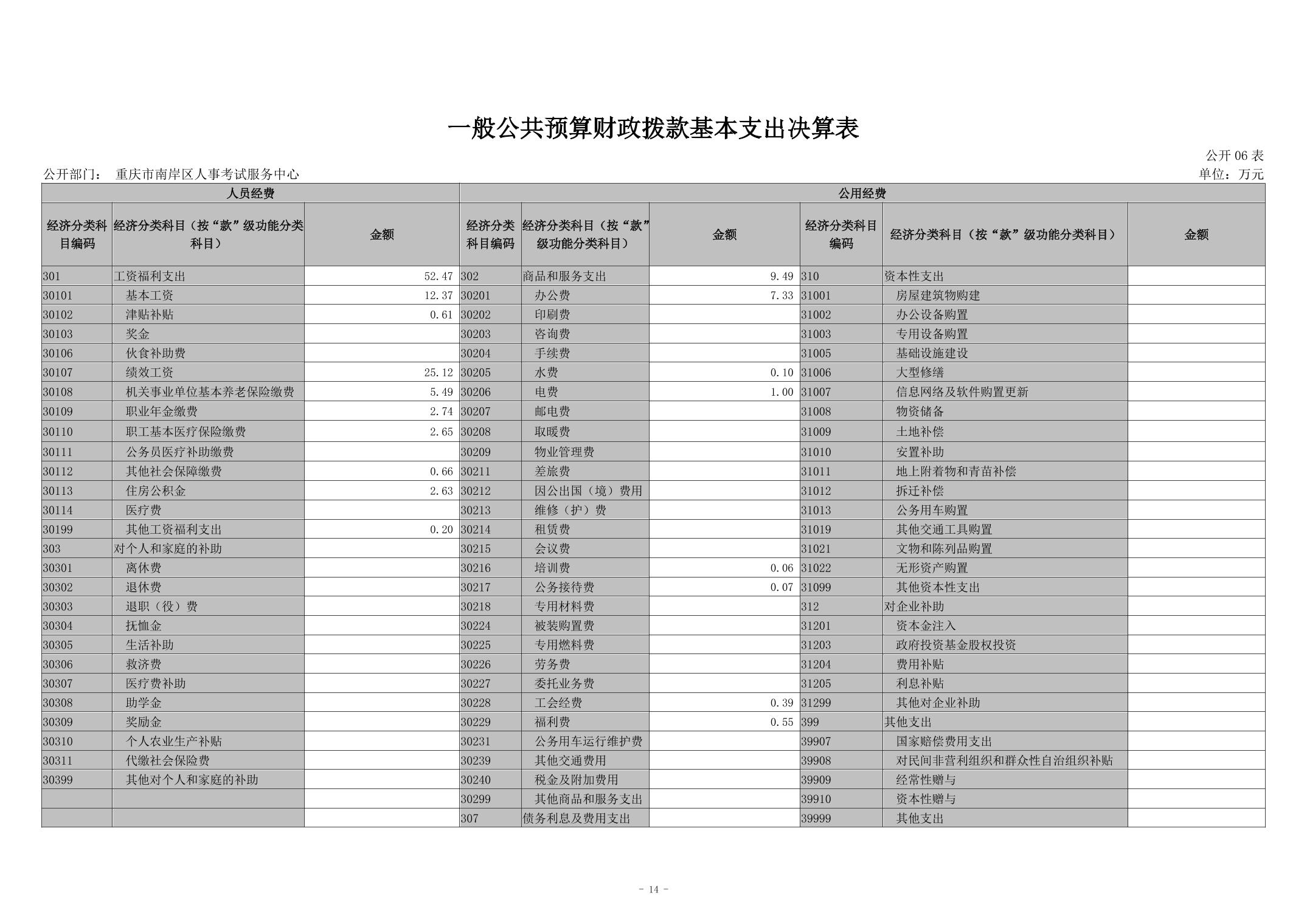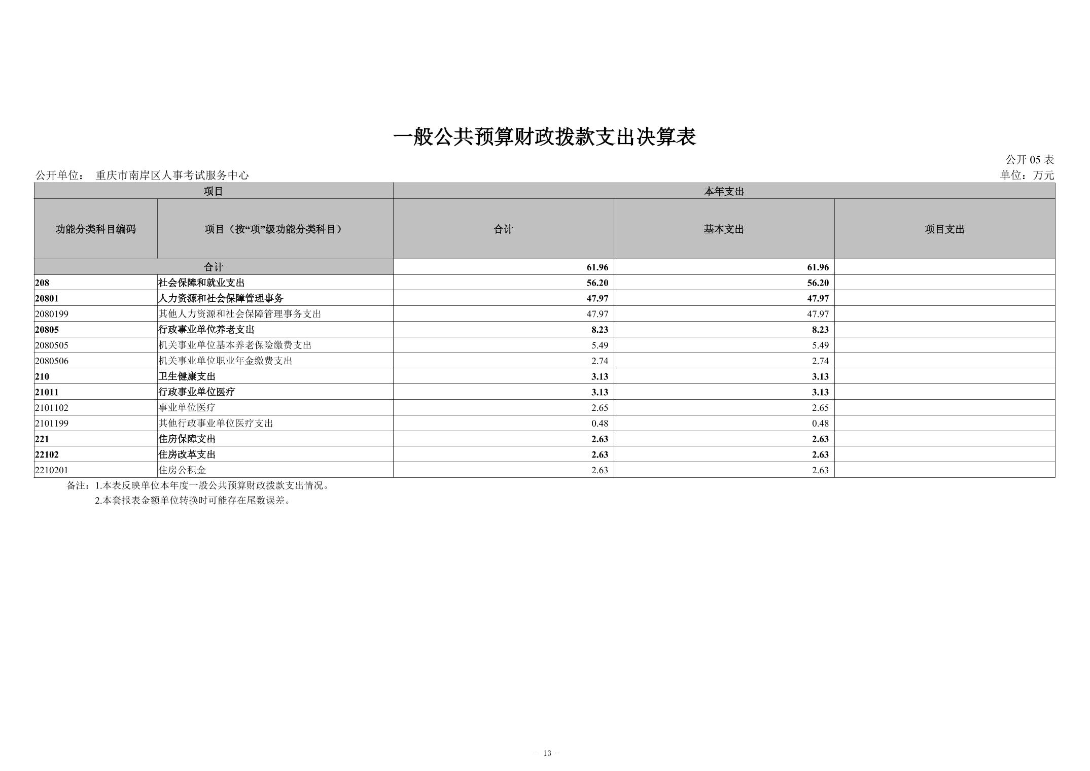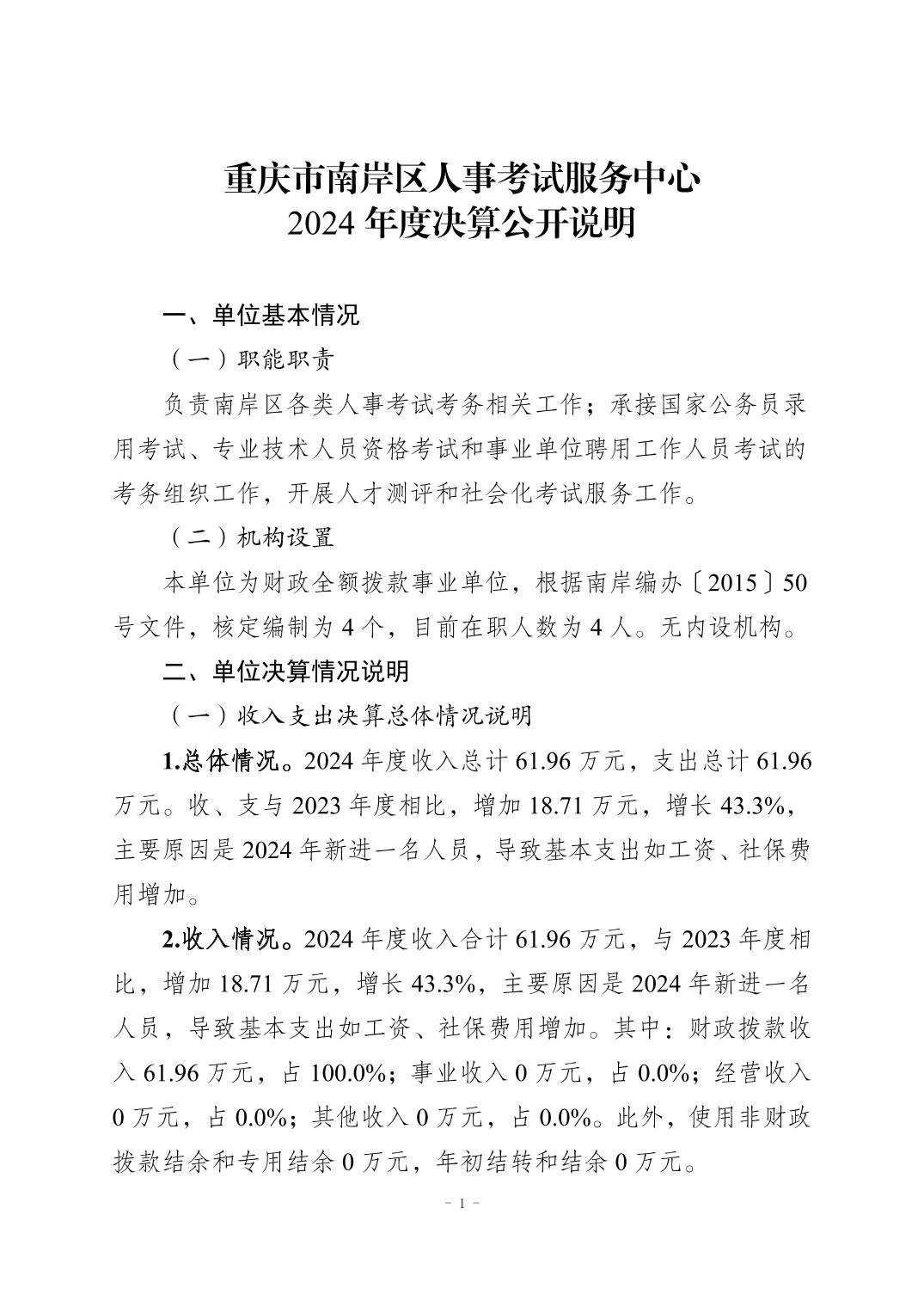 重庆市南岸区人事考试服务中心2024年度决算公开说明