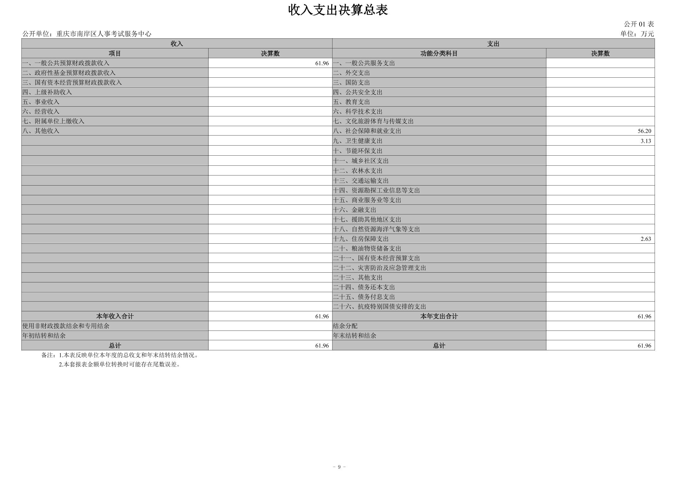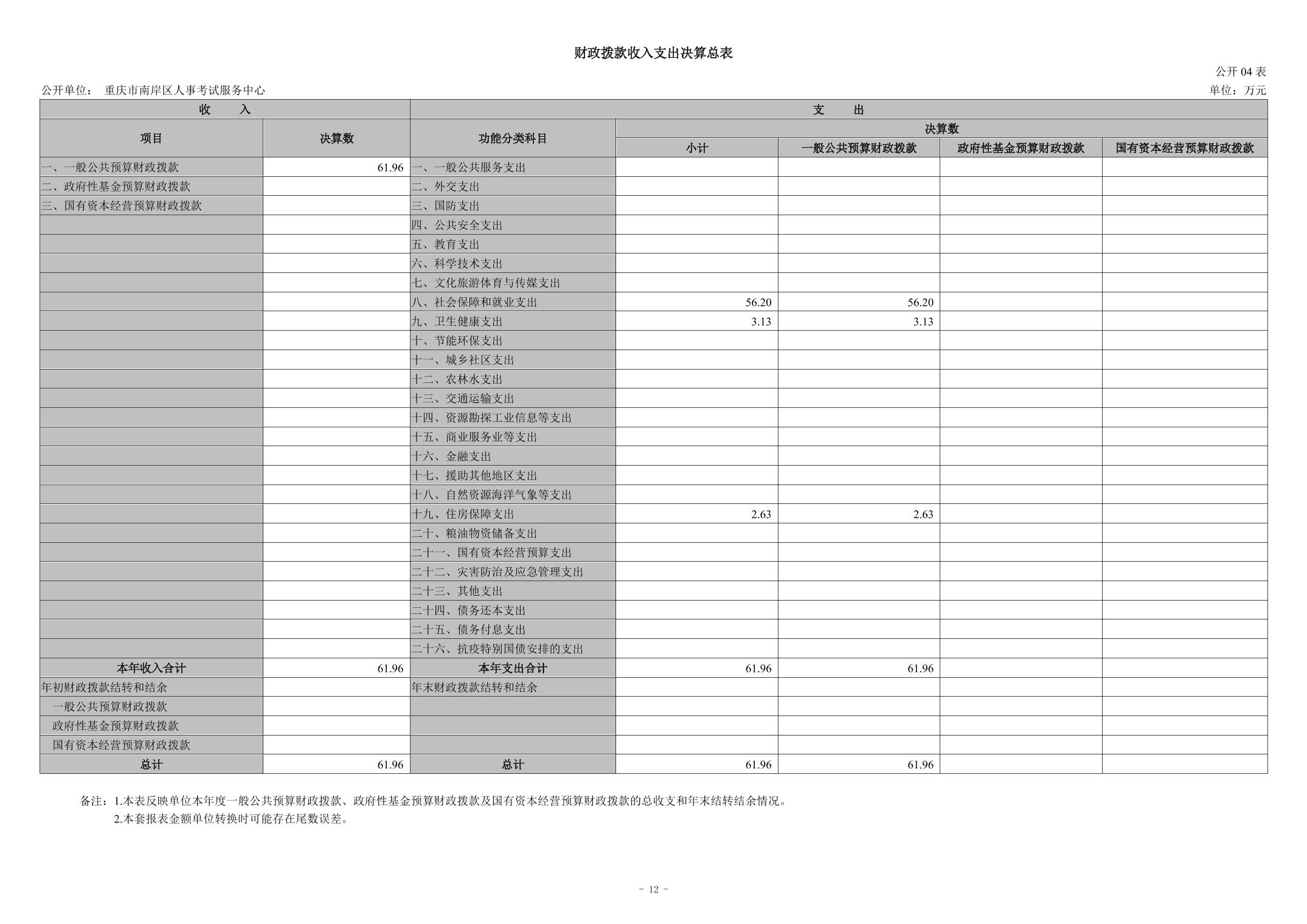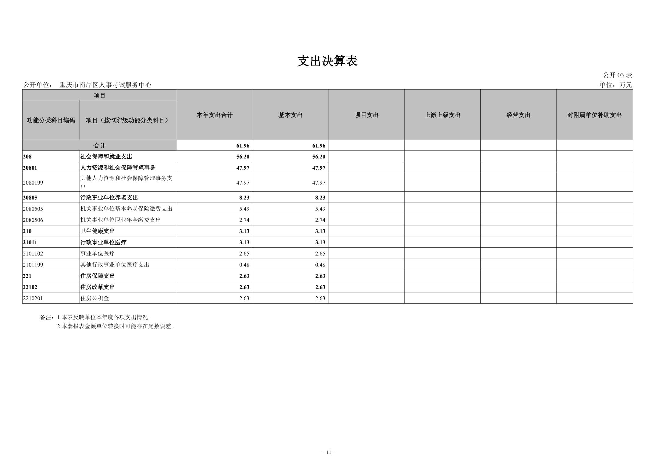 重庆市南岸区人事考试服务中心2024年度决算公开说明