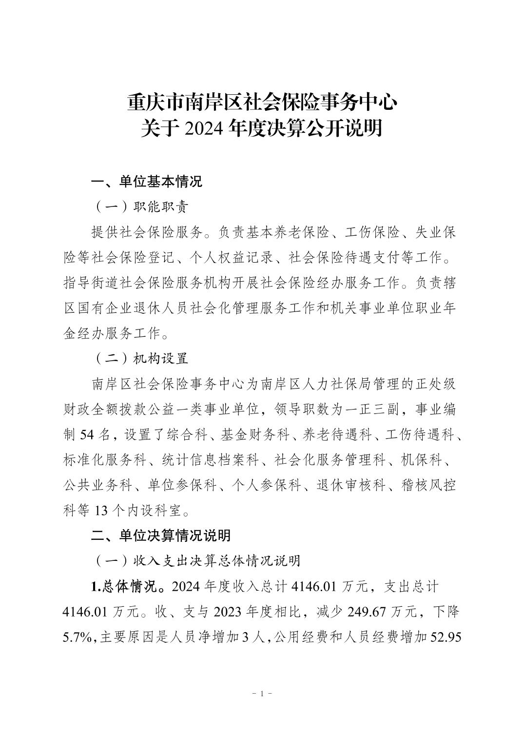 重庆市南岸区社会保险事务中心2024年度决算公开说明