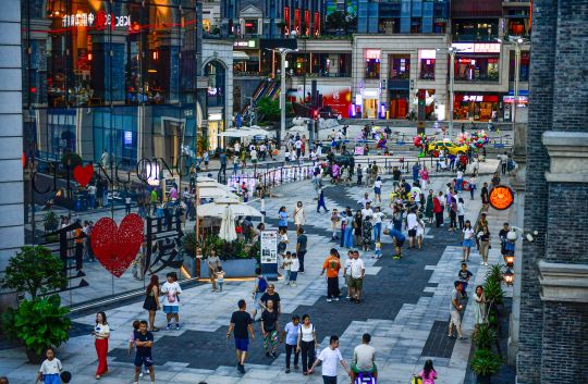 端午小长假期间,南岸区各景点迎来旅游打卡高峰。图为6月23日,南岸区长嘉汇购物公园,众多游客前来游玩。 (记者 崔景印 摄影报道)