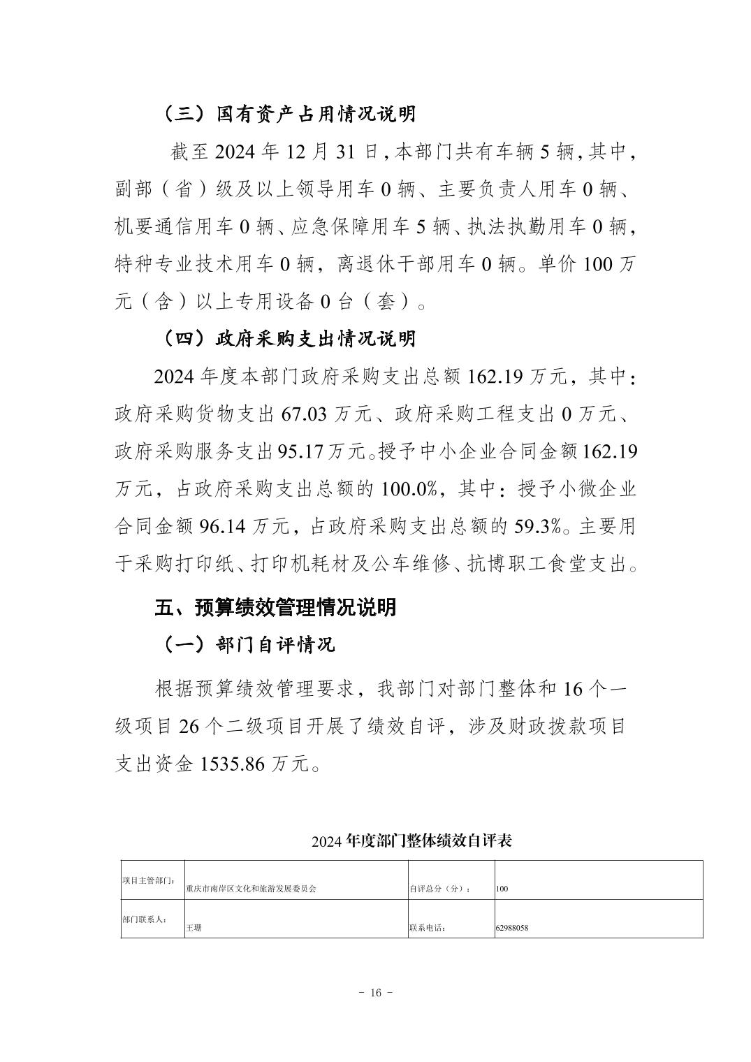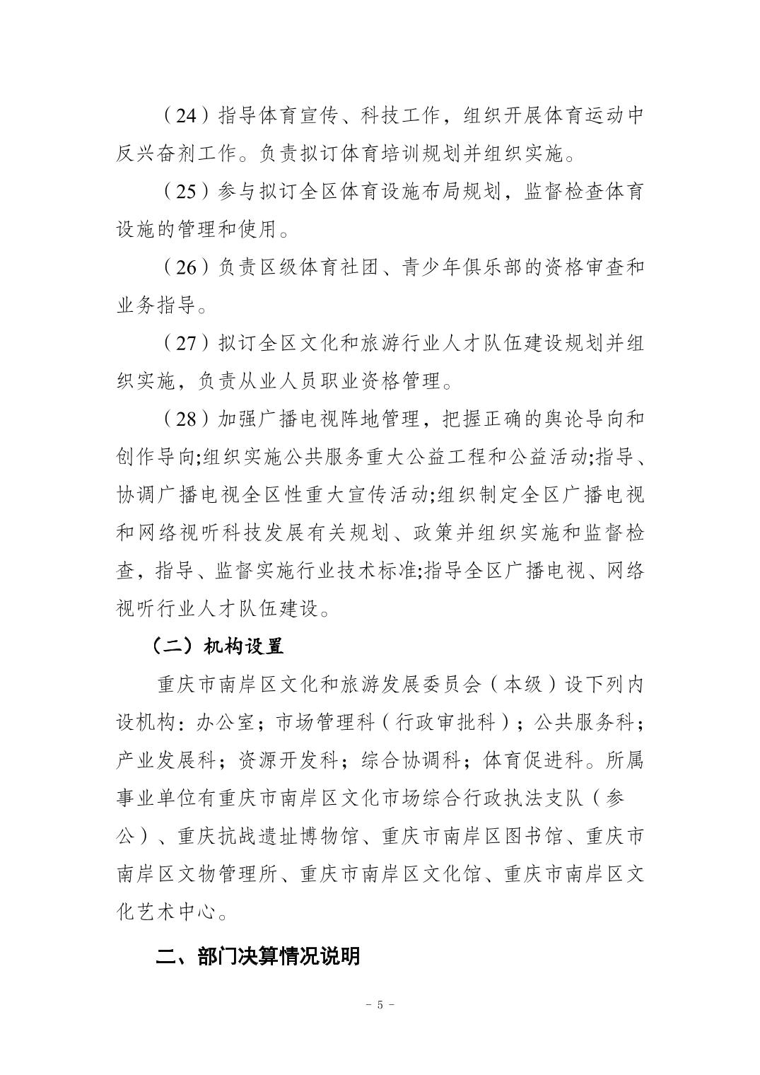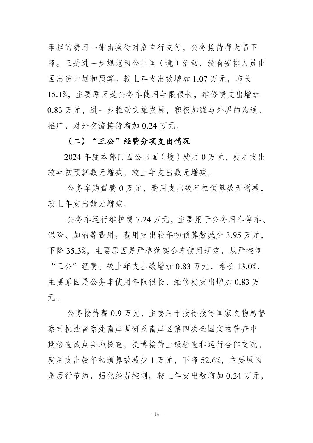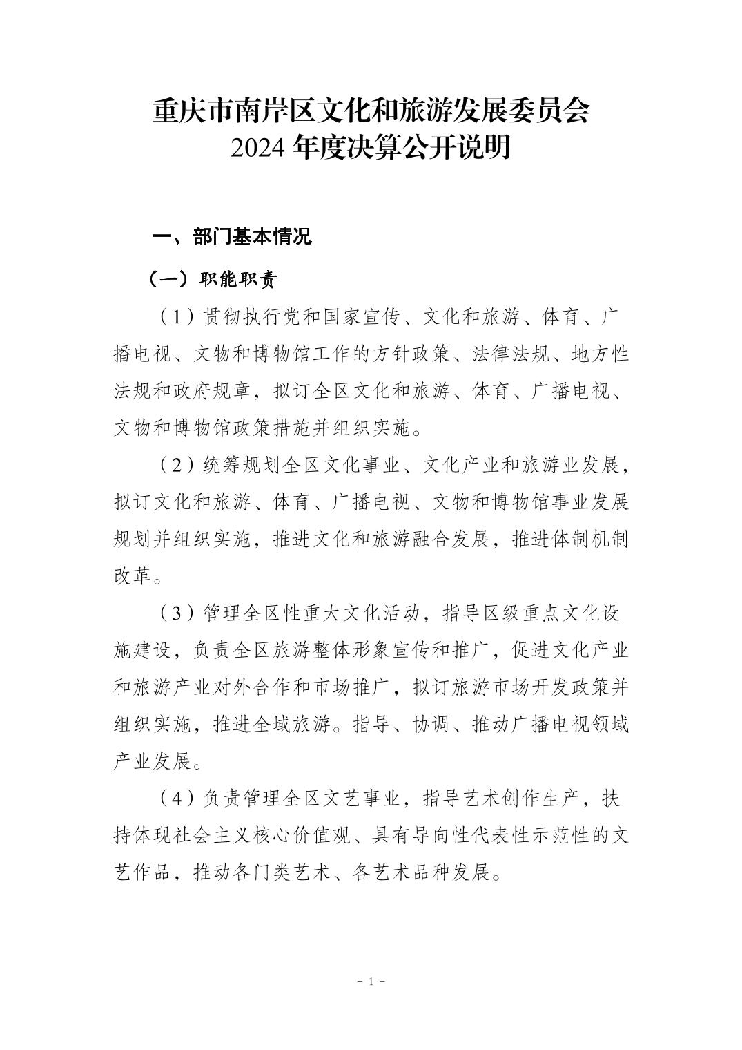 重庆市南岸区文化和旅游发展委员会2024年决算公开说明