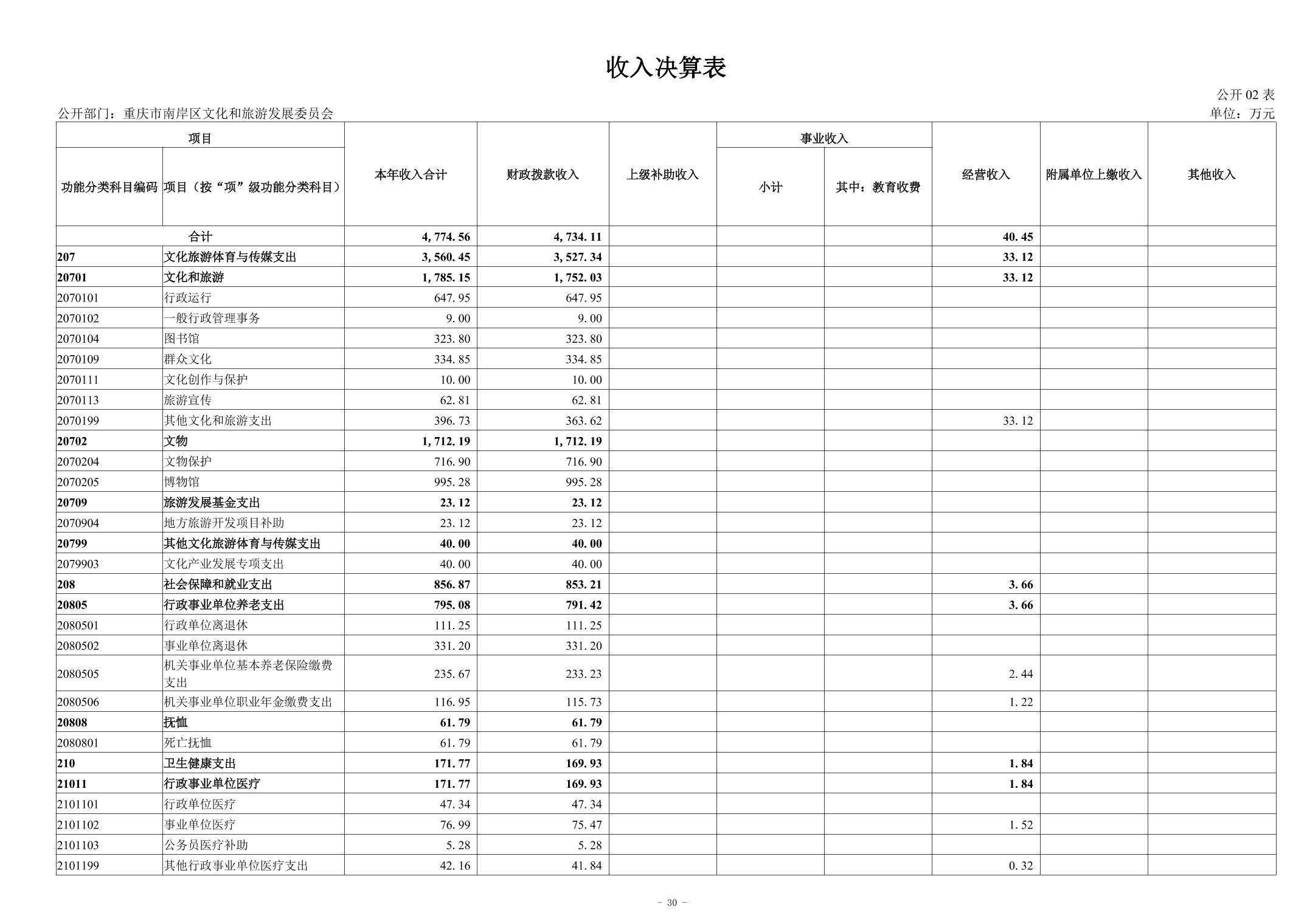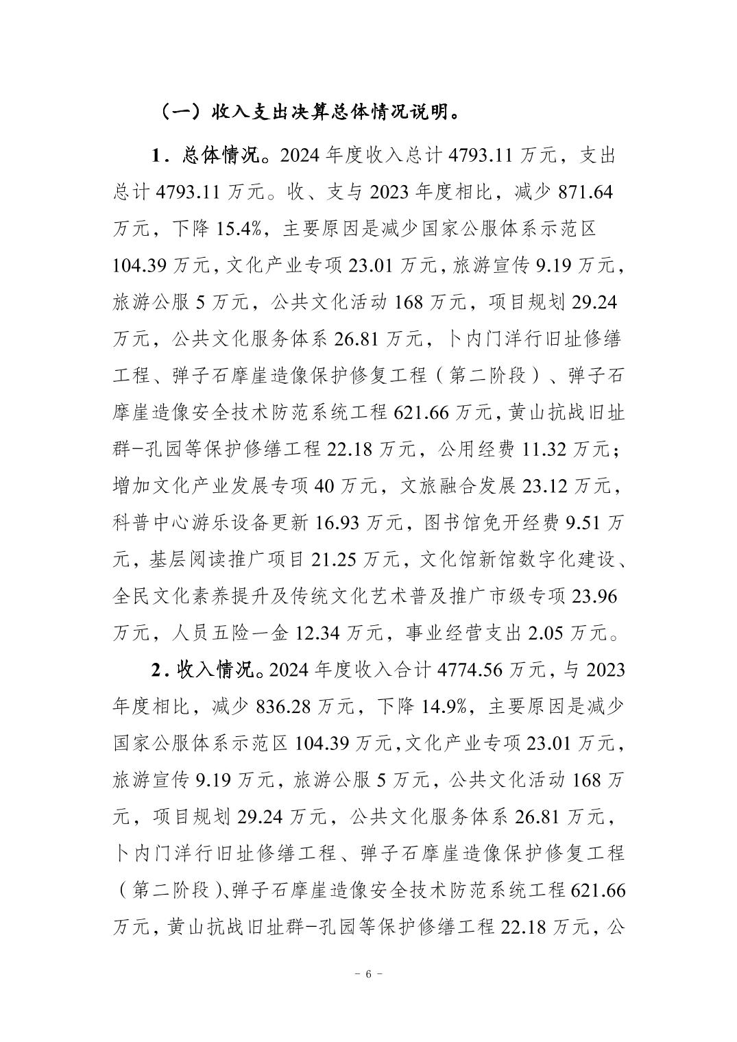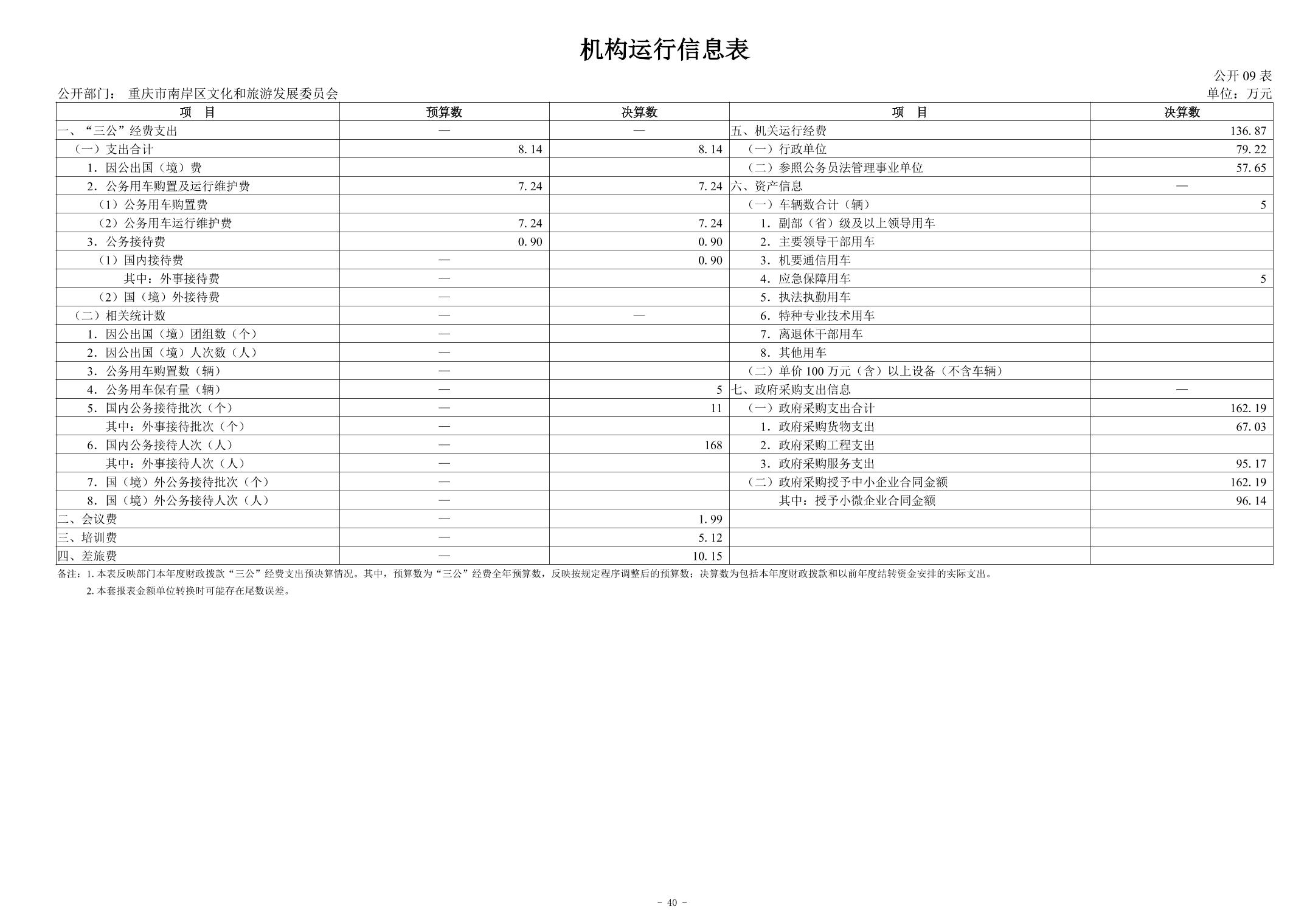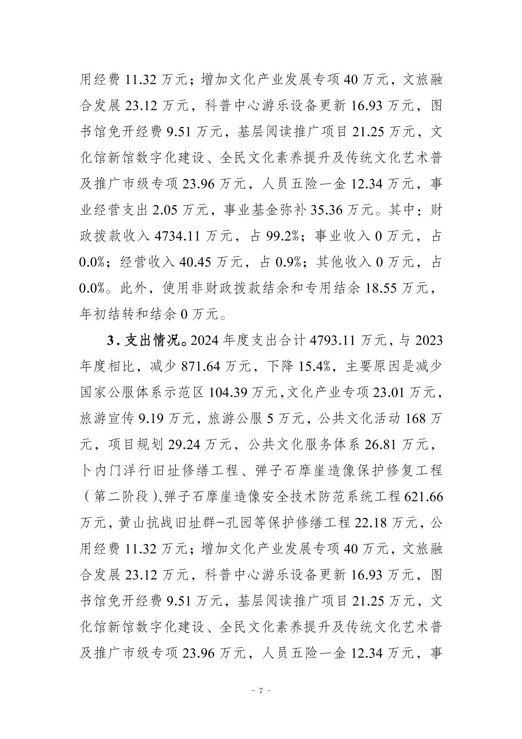 重庆市南岸区文化和旅游发展委员会2024年决算公开说明