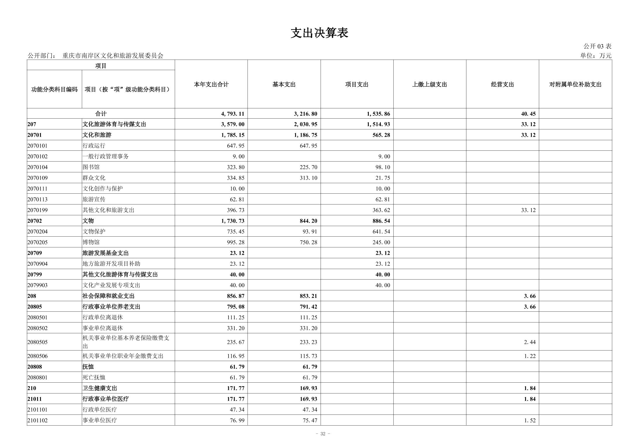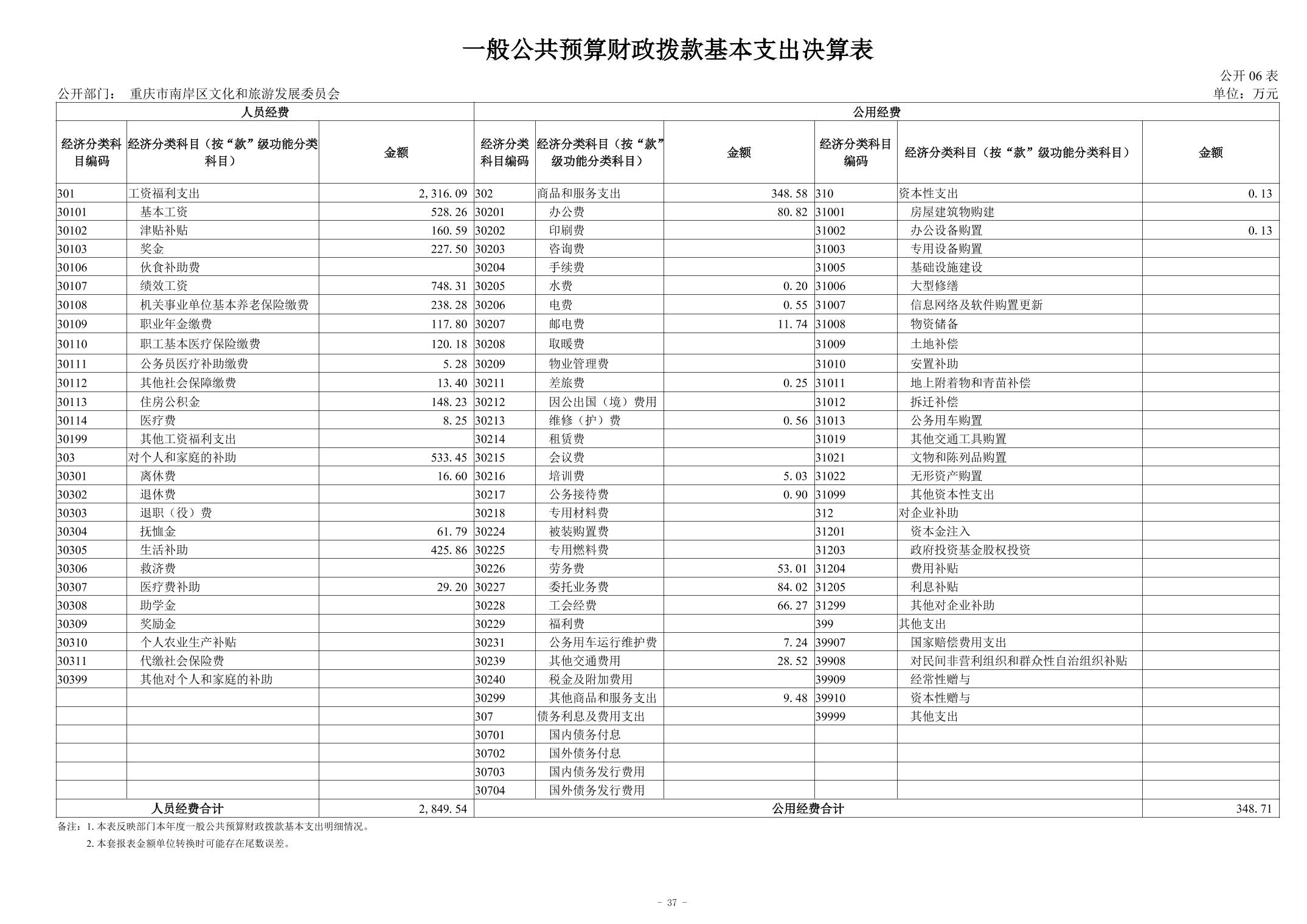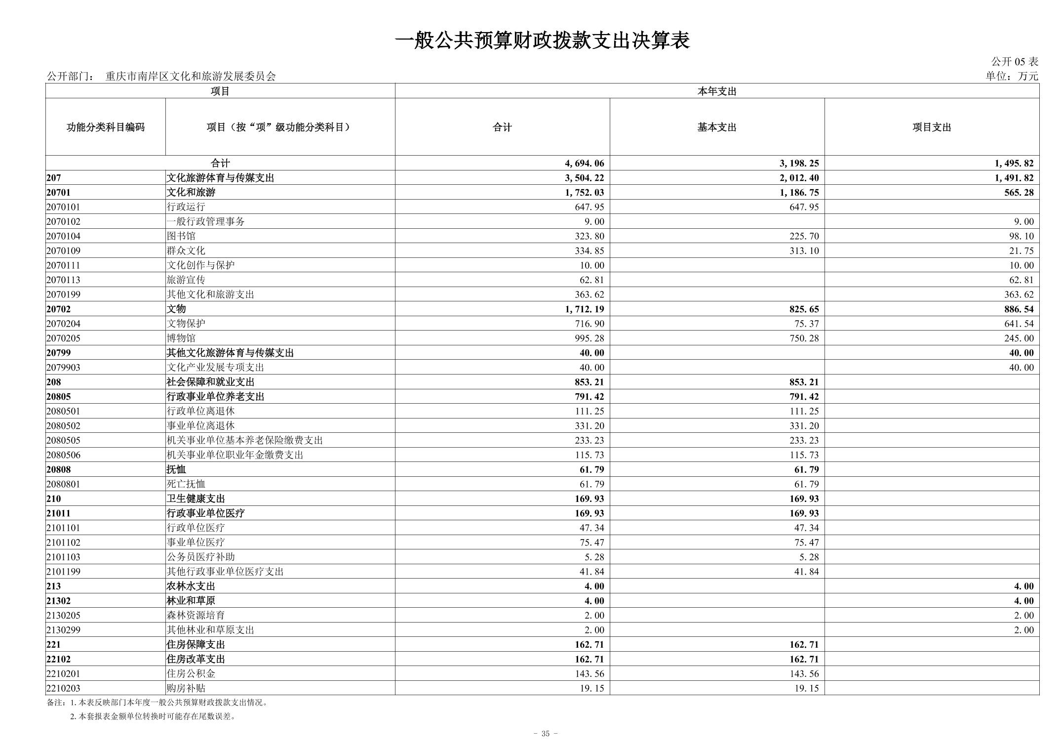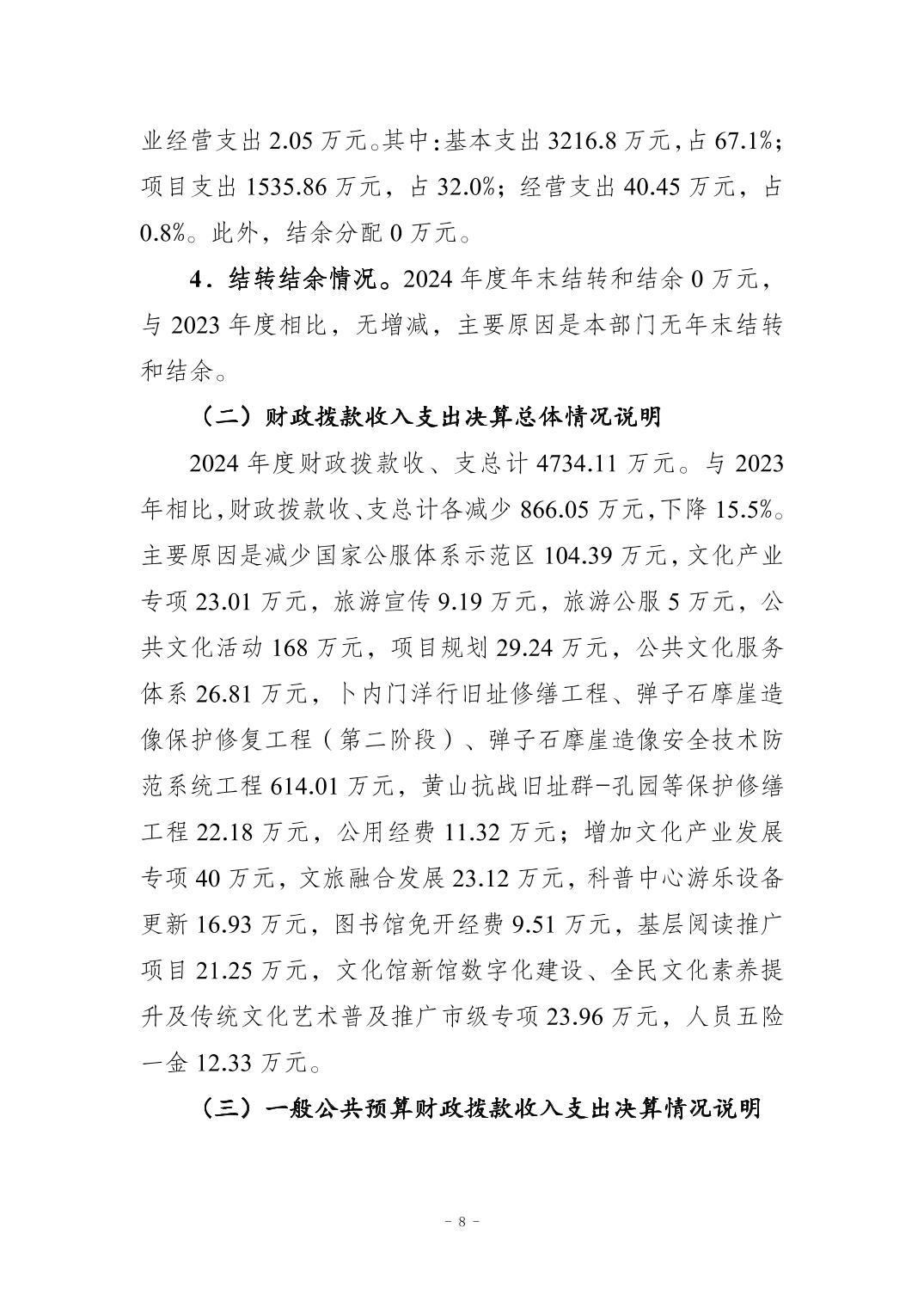 重庆市南岸区文化和旅游发展委员会2024年决算公开说明
