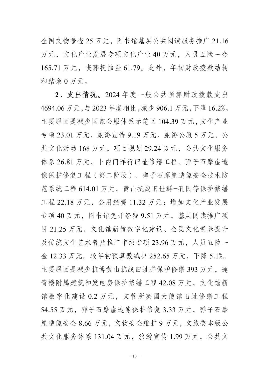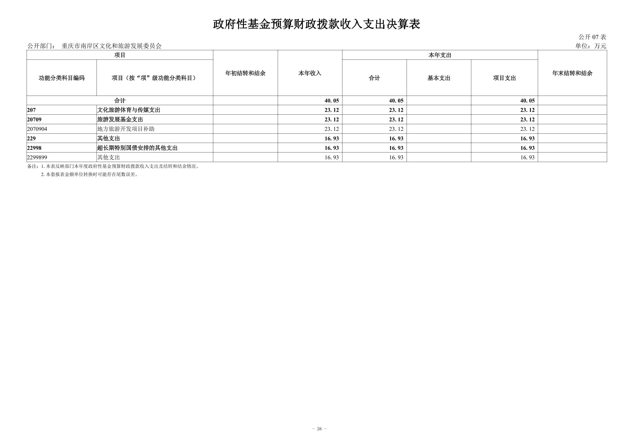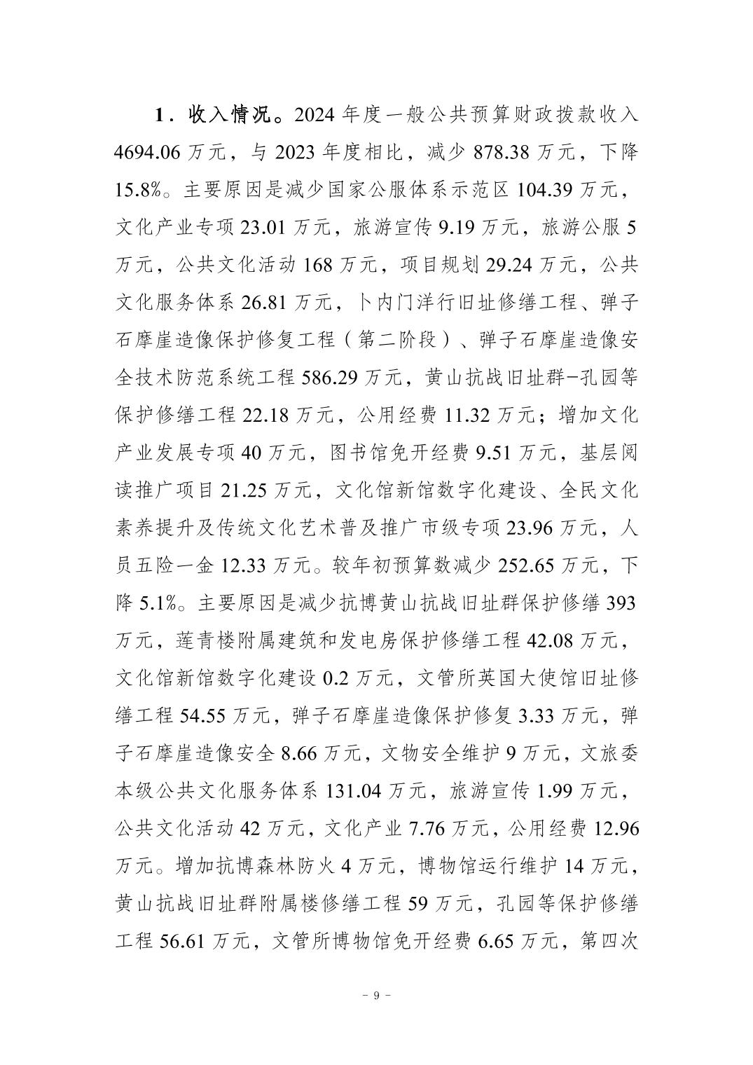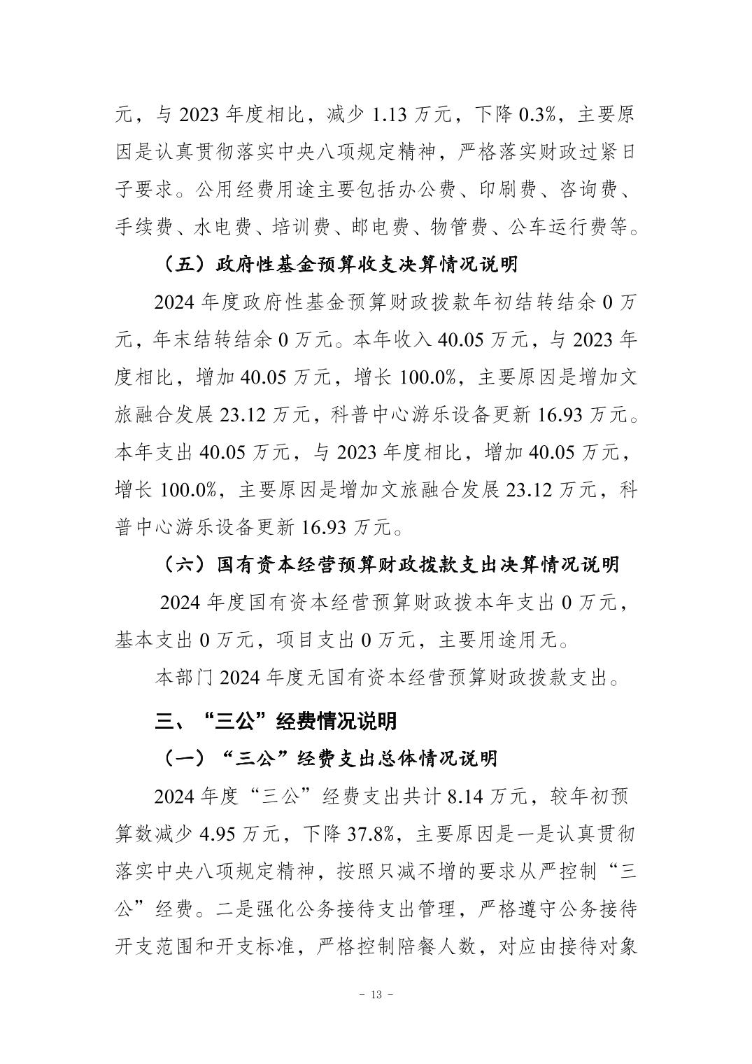 重庆市南岸区文化和旅游发展委员会2024年决算公开说明