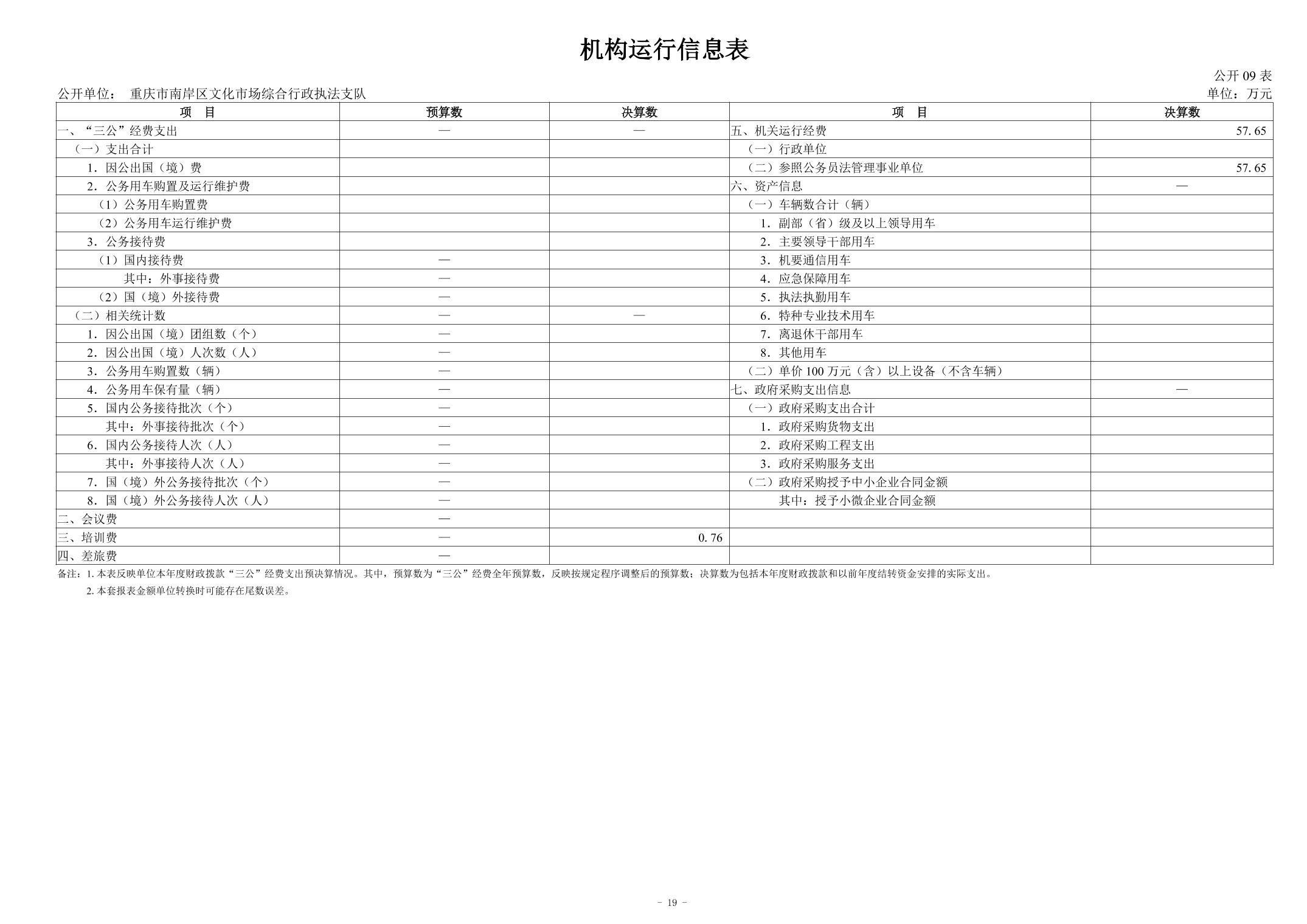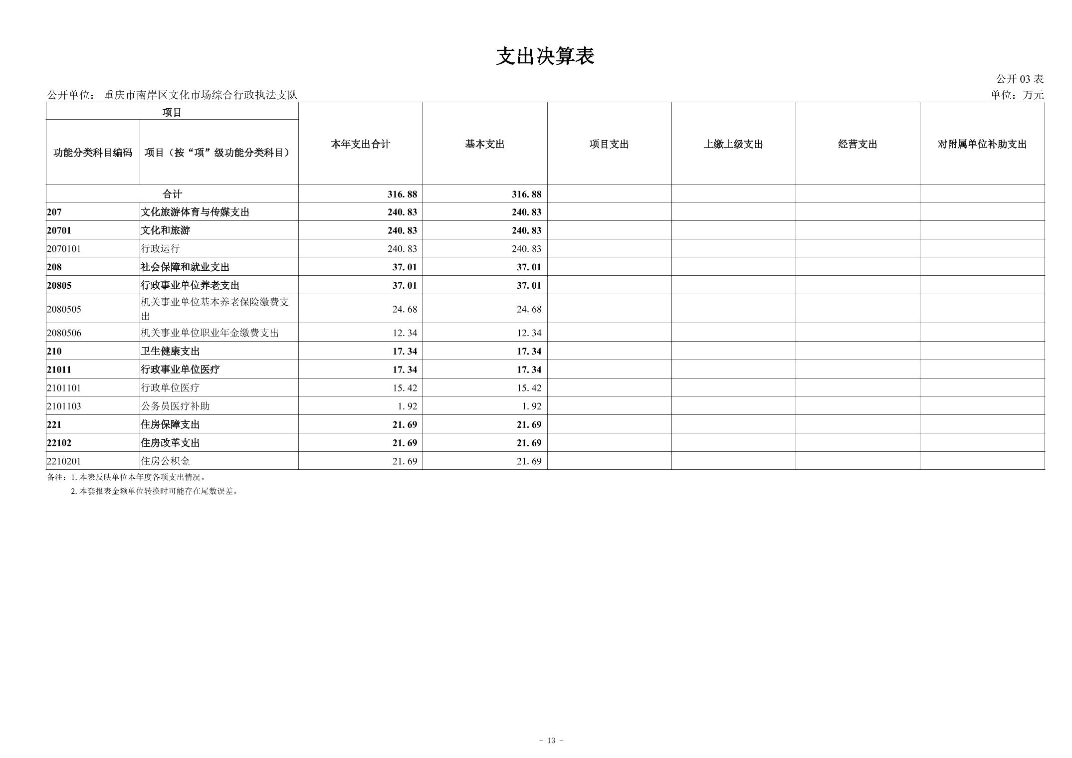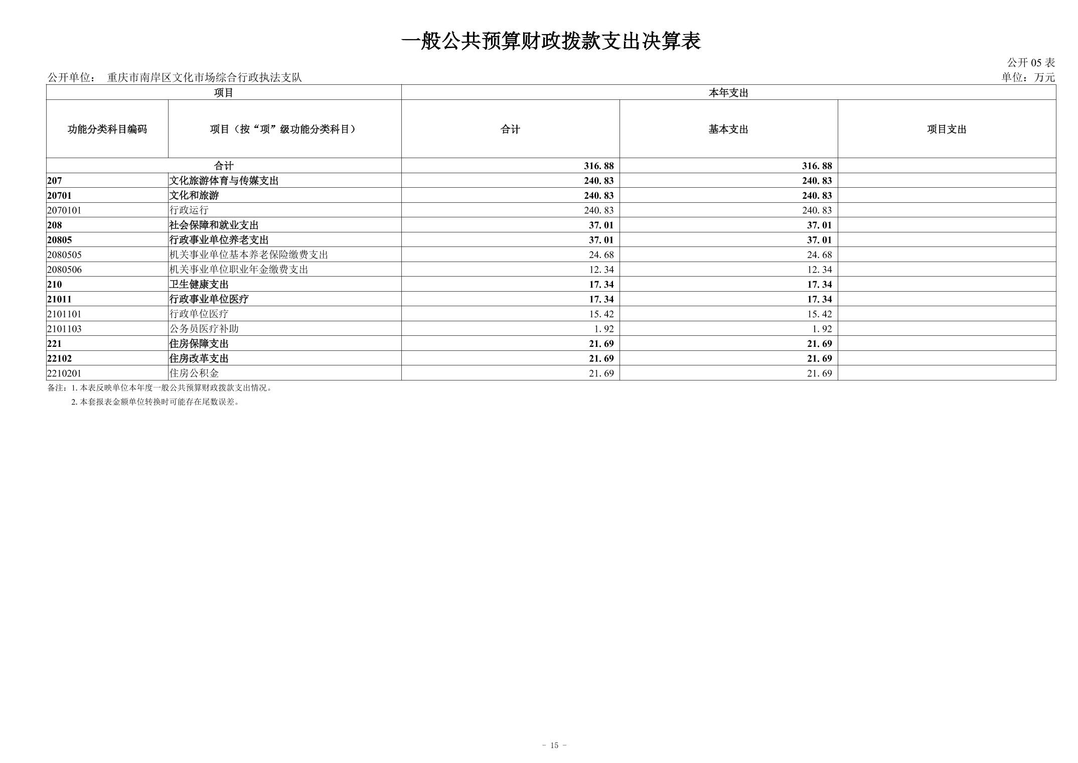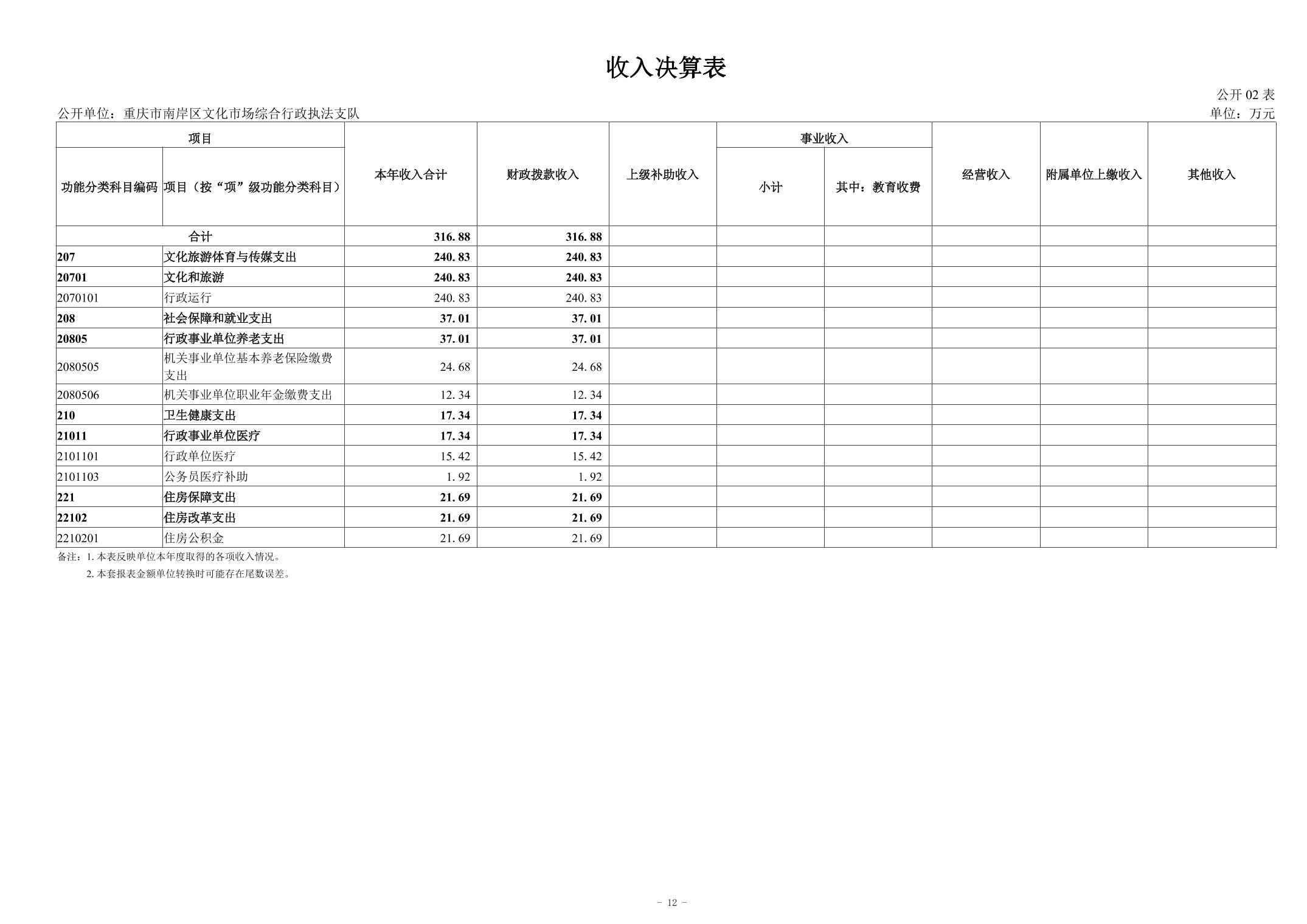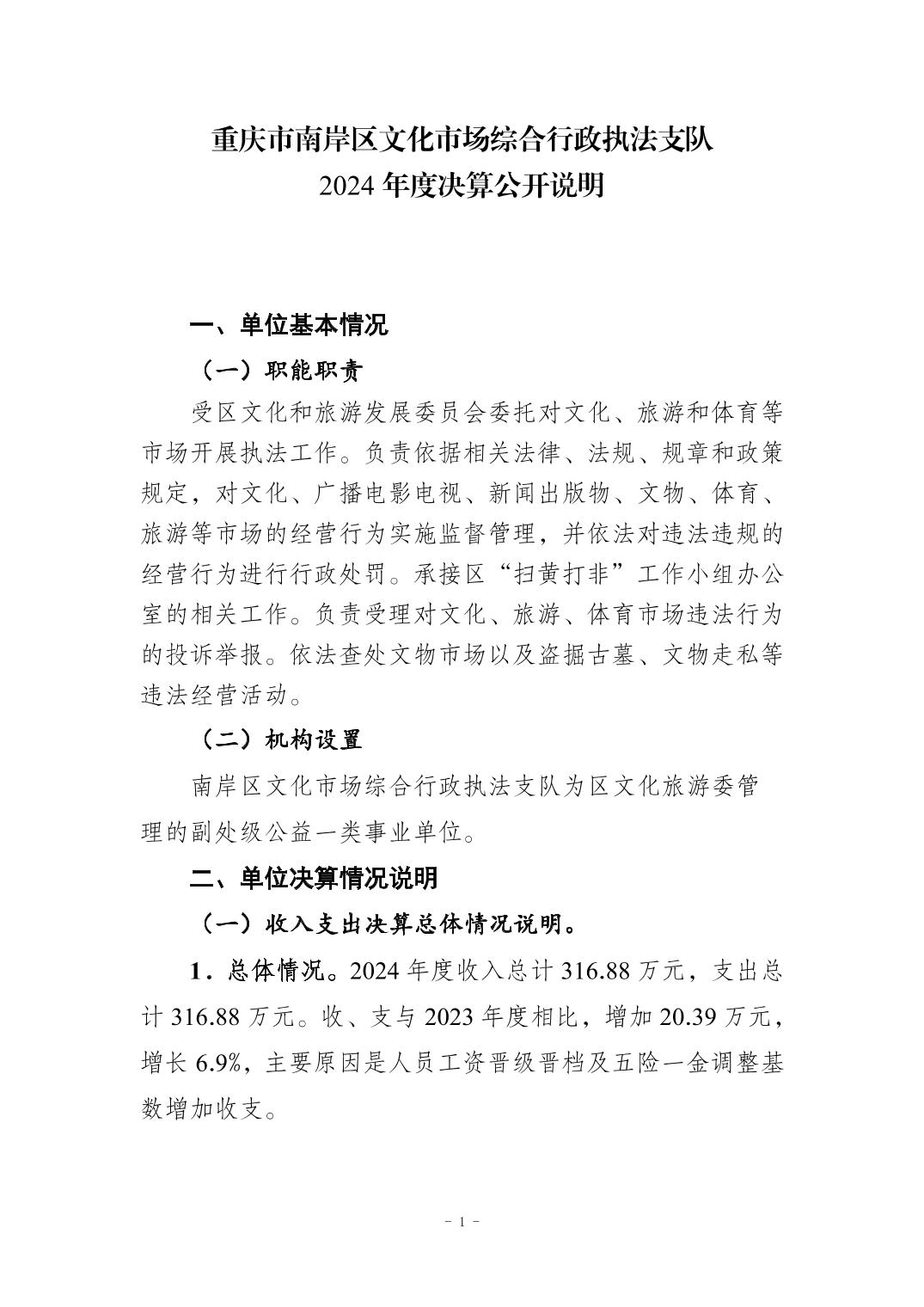 重庆市南岸区文化市场综合行政执法支队2024年决算公开说明