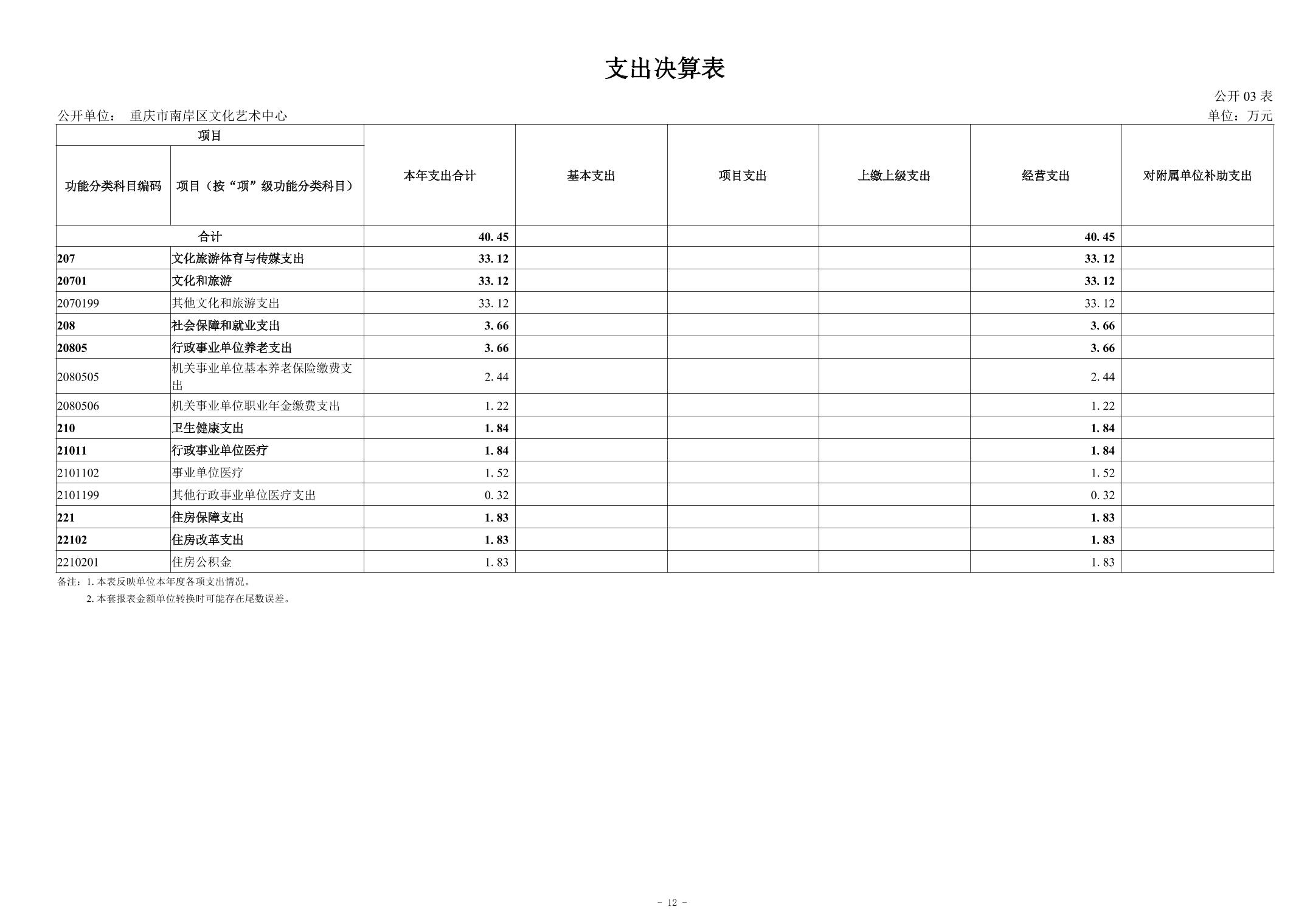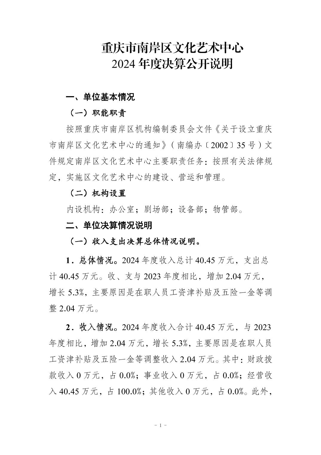 重庆市南岸区文化艺术中心2024年决算公开说明