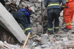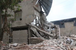 事故发生当天中科公司重庆市分公司无管理人员在现场组织施工,只有2名杂工赵*座和杨*权在1楼使用钢管架对该房屋进行支护,房屋坍塌时只有赵*座在1楼内作业,房屋坍塌后赵*座被掩埋在坍塌物下。(见组图2)