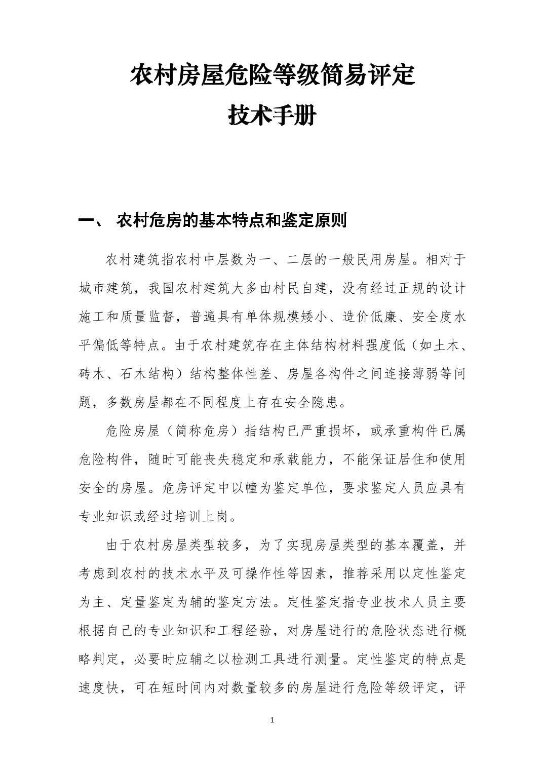 农村房屋危险等级简易评定技术手册