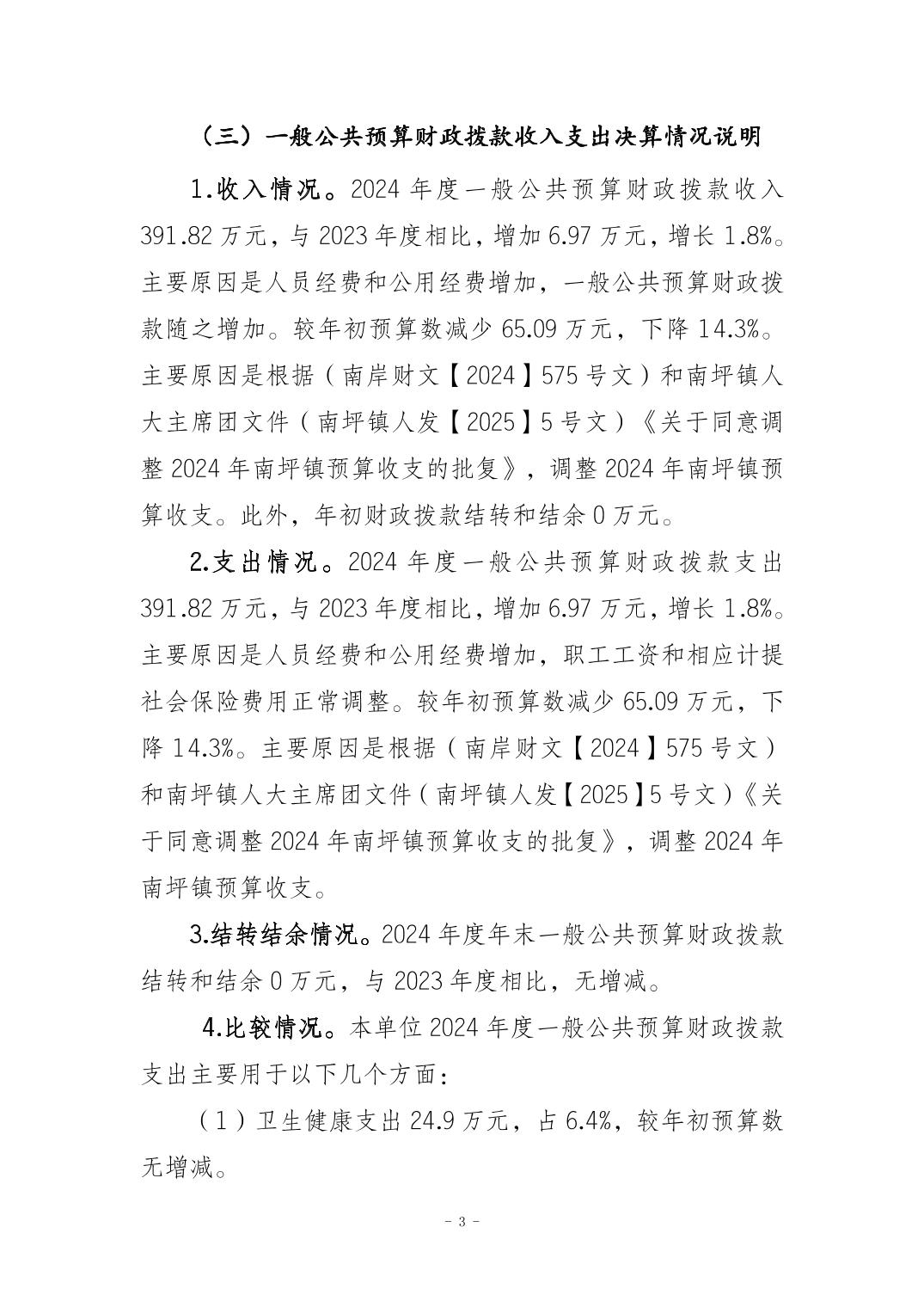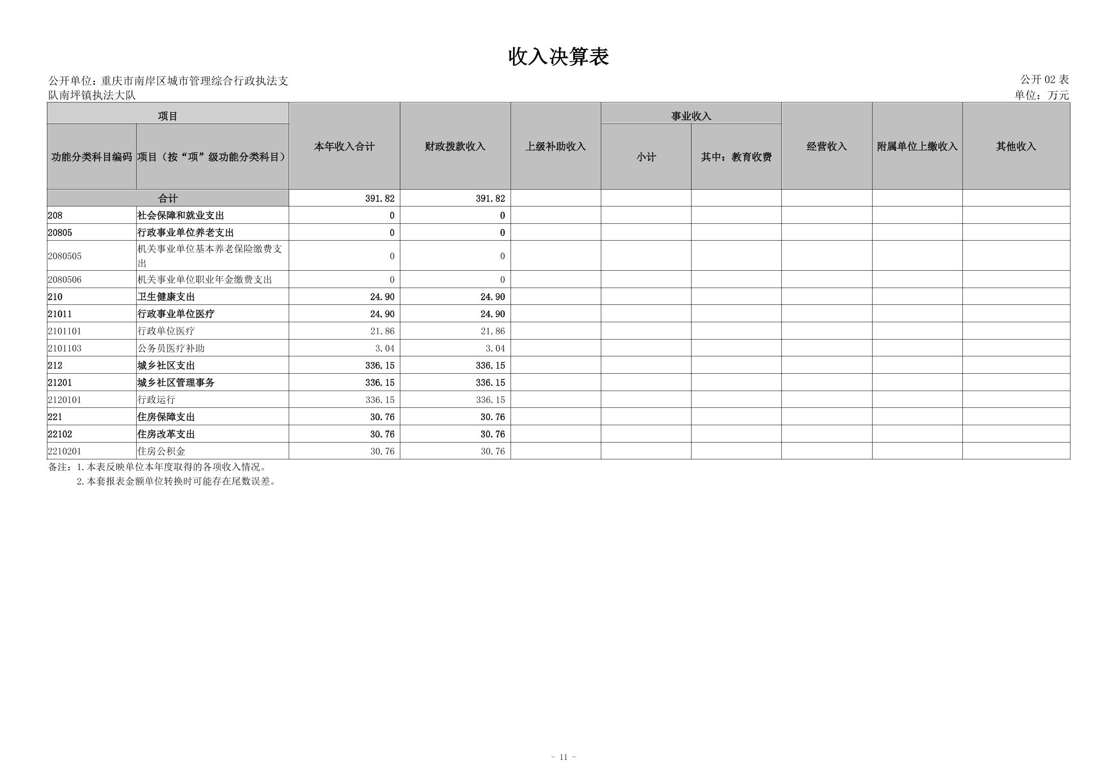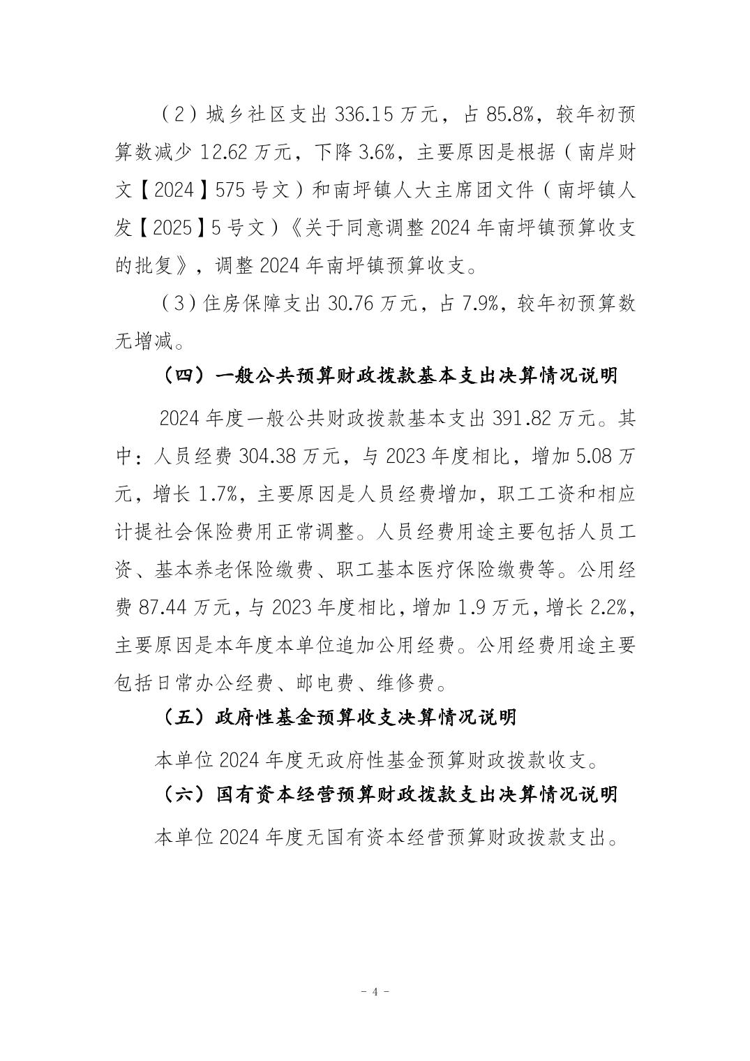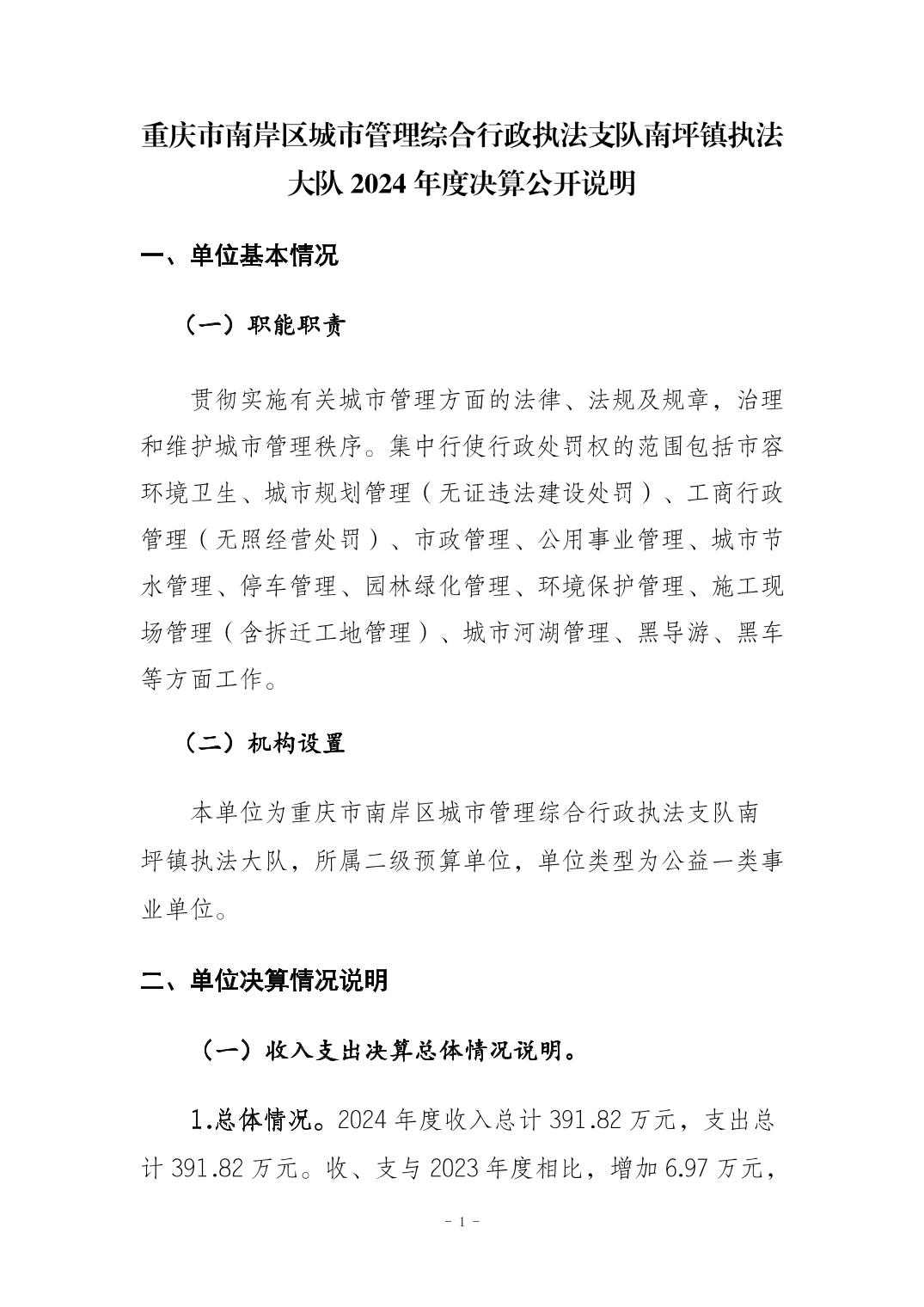 重庆市南岸区城市管理综合行政执法支队南坪镇执法大队2024年度决算公开说明