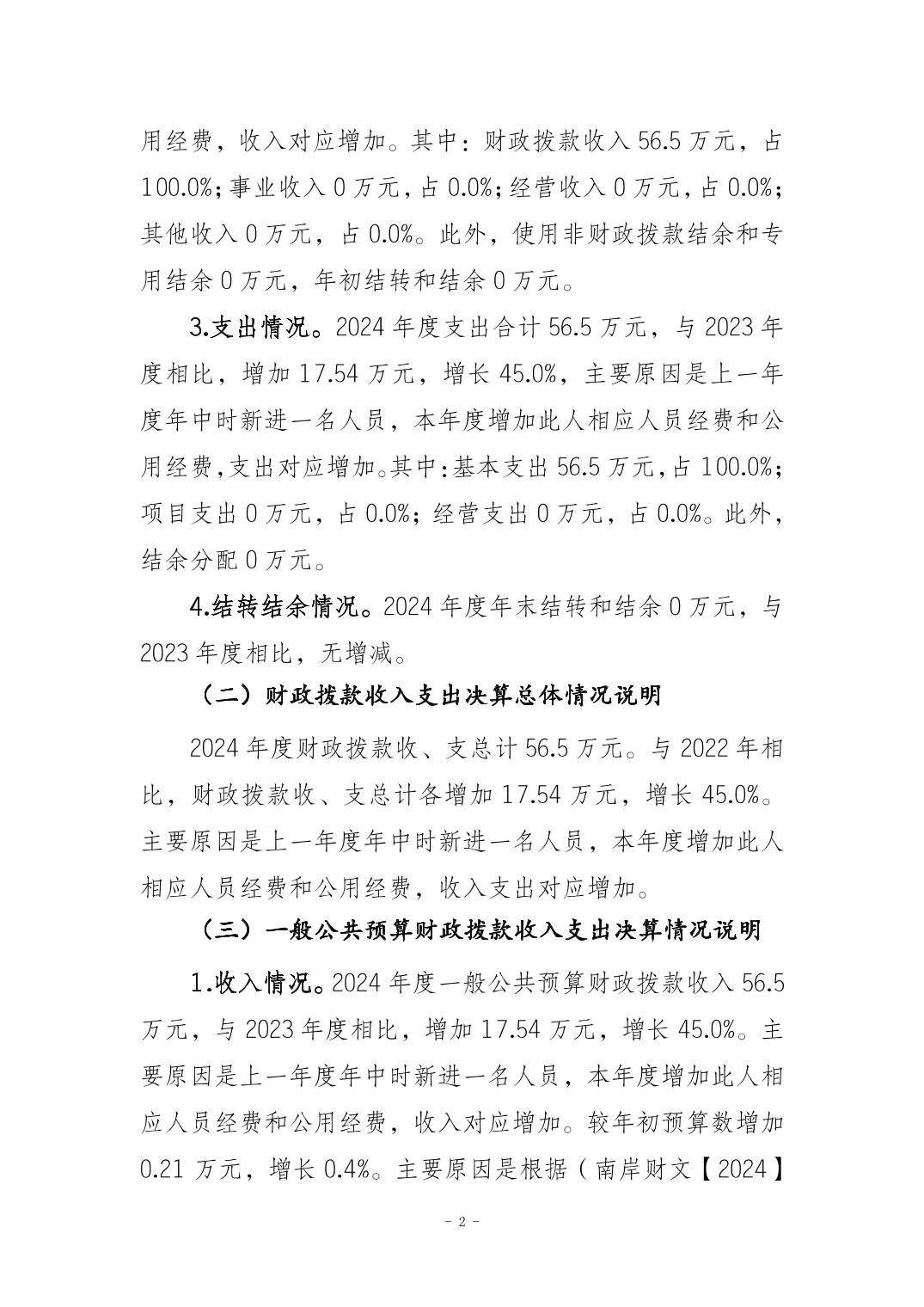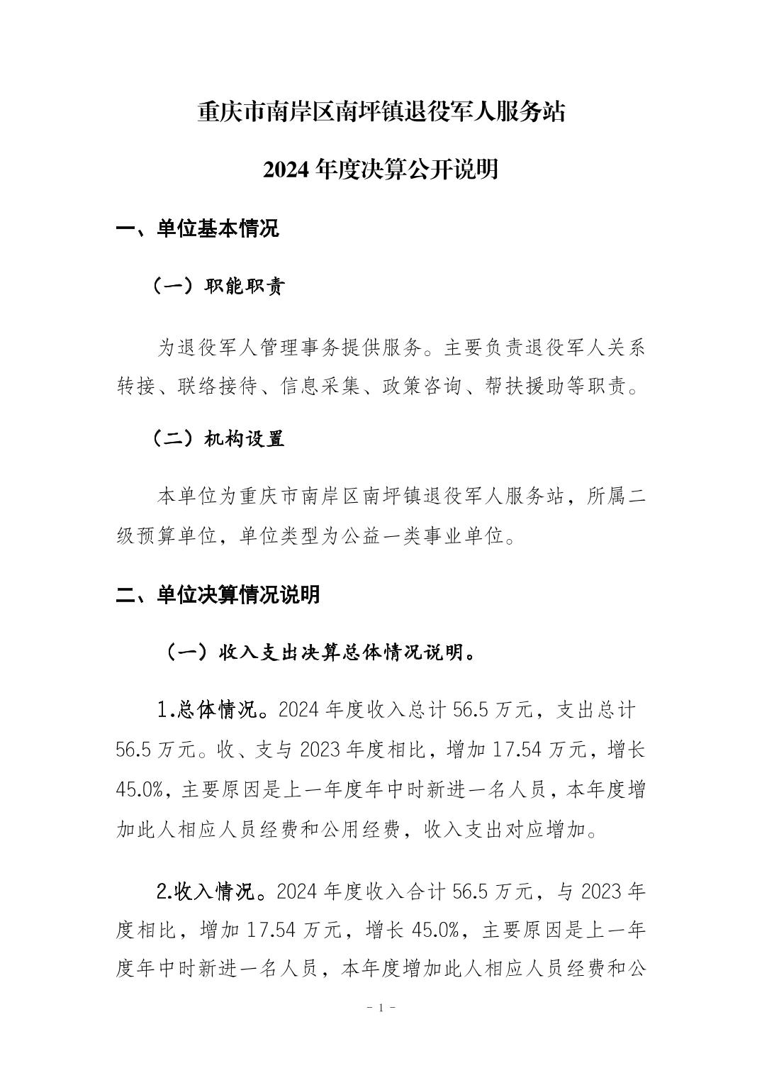 重庆市南岸区南坪镇退役军人服务站2024年度决算公开说明