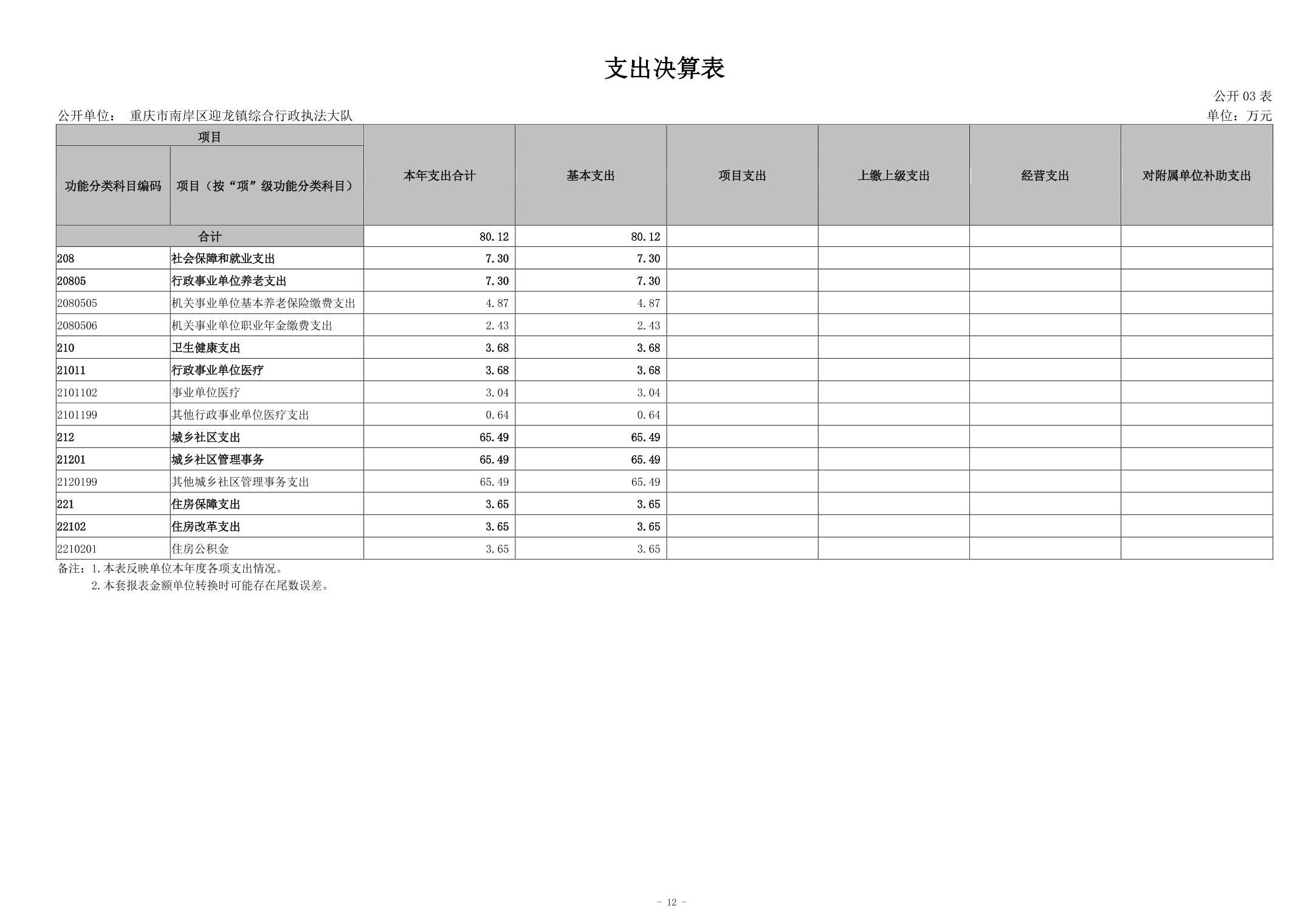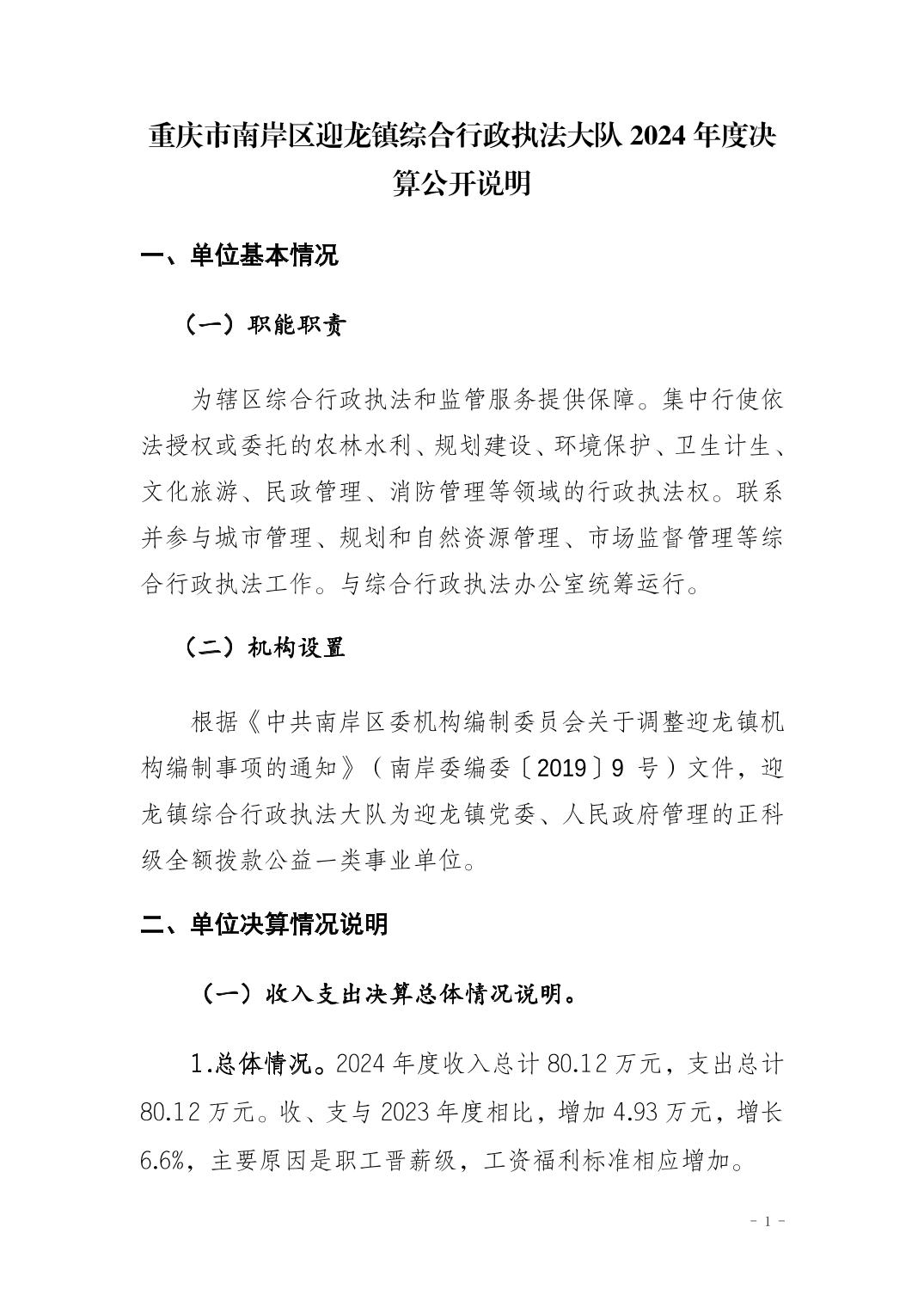 重庆市南岸区迎龙镇综合行政执法大队2024年度决算公开说明