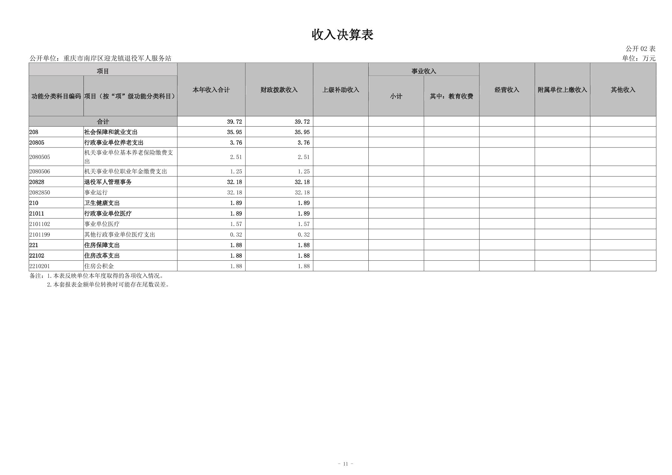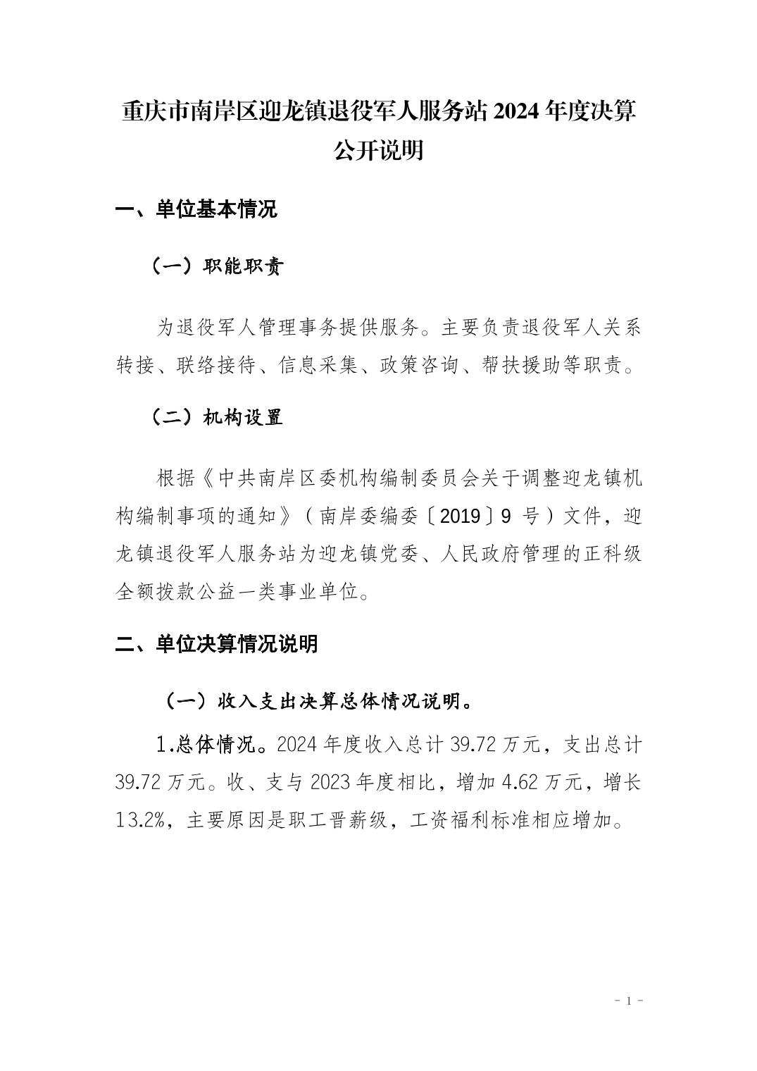 重庆市南岸区迎龙镇退役军人服务站2024年度决算公开说明