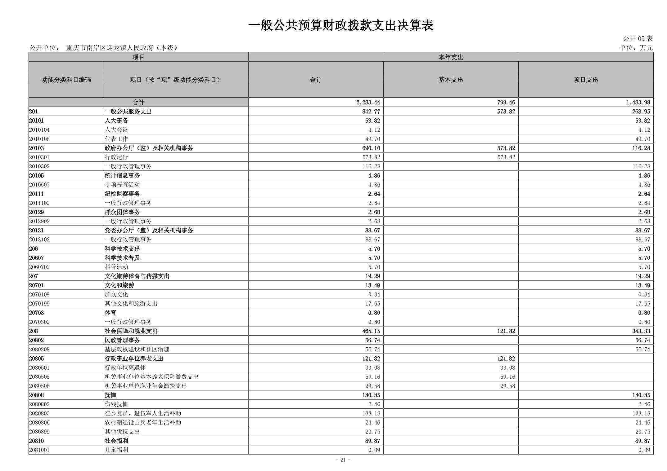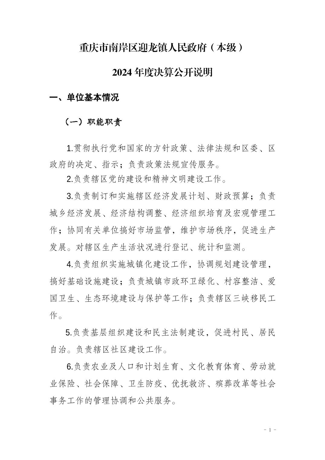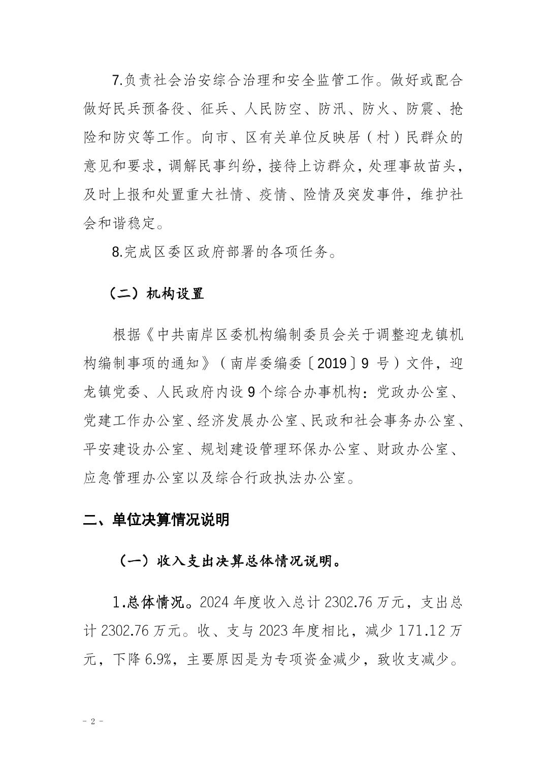 重庆市南岸区迎龙镇人民政府(本级)2024年度决算公开说明
