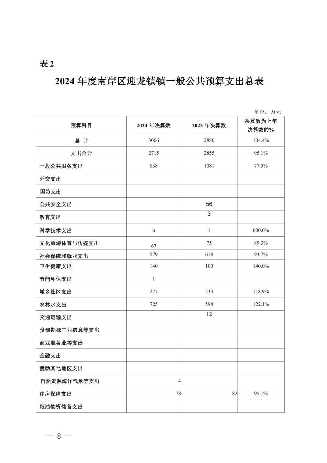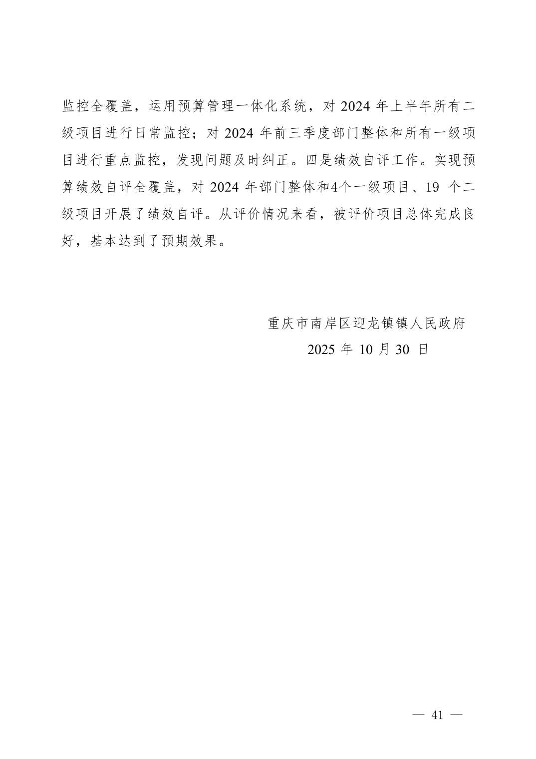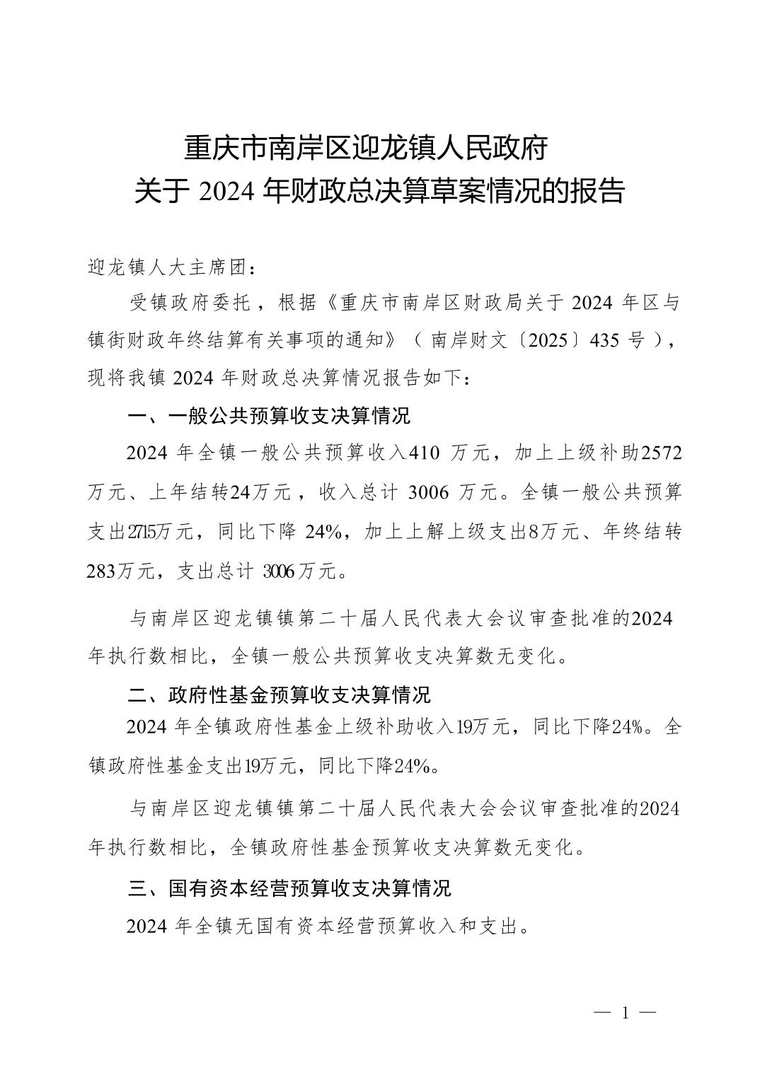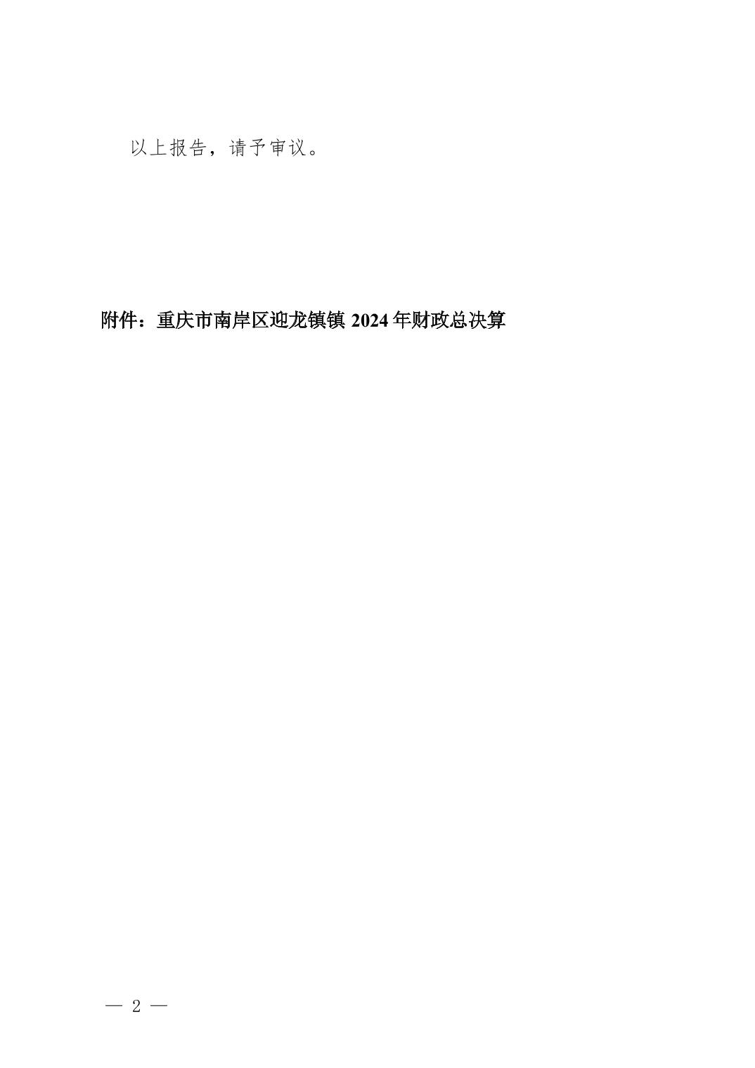 重庆市南岸区迎龙镇人民政府关于2024年财政总决算草案情况的报告