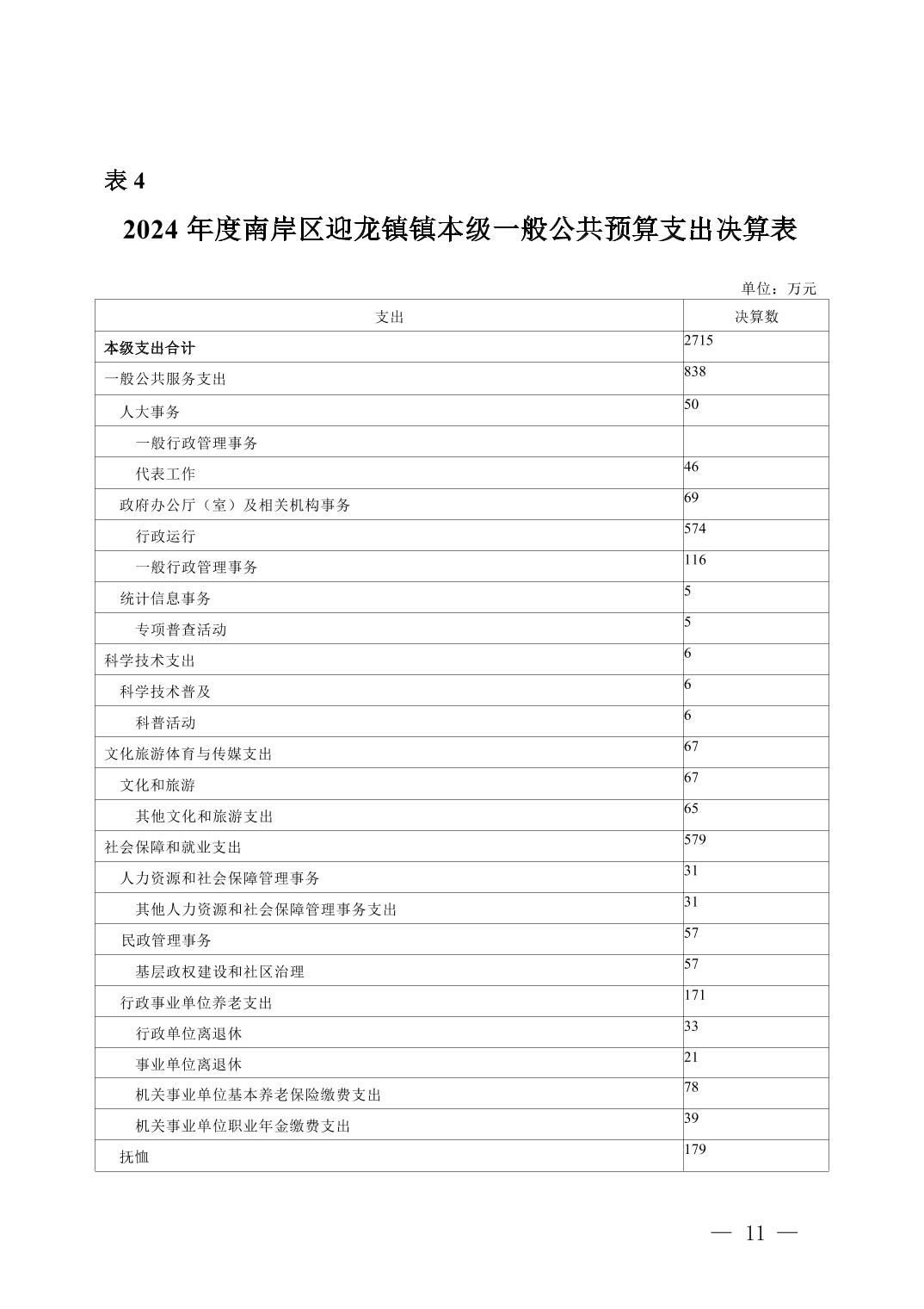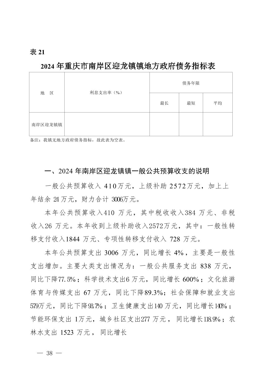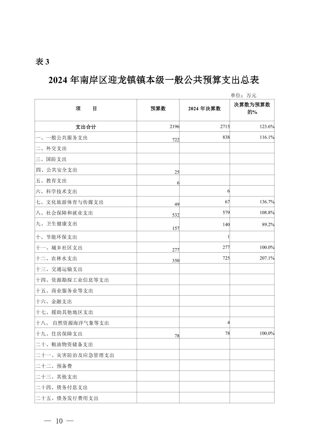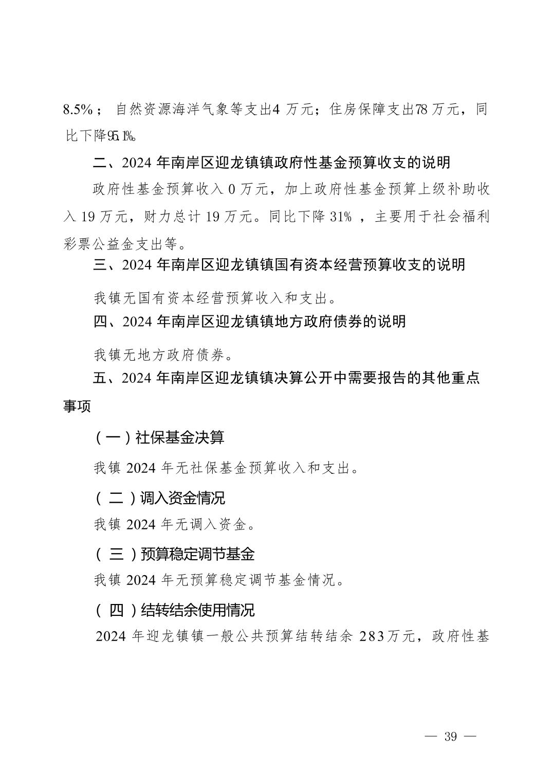 重庆市南岸区迎龙镇人民政府关于2024年财政总决算草案情况的报告