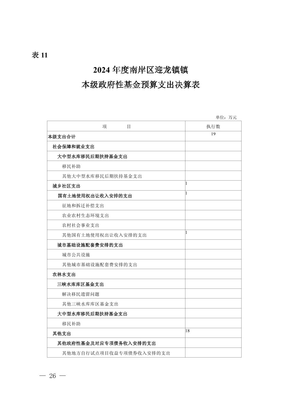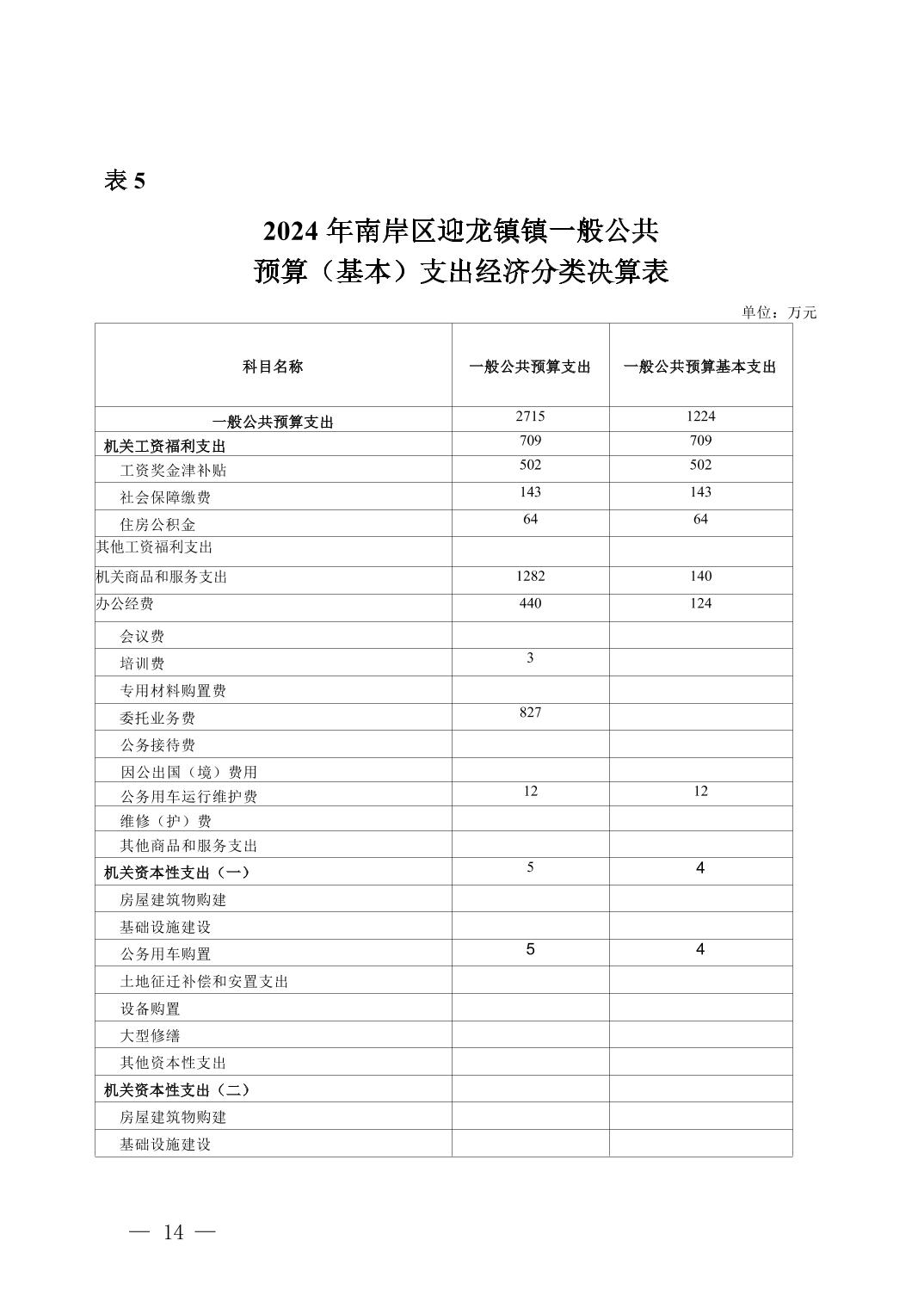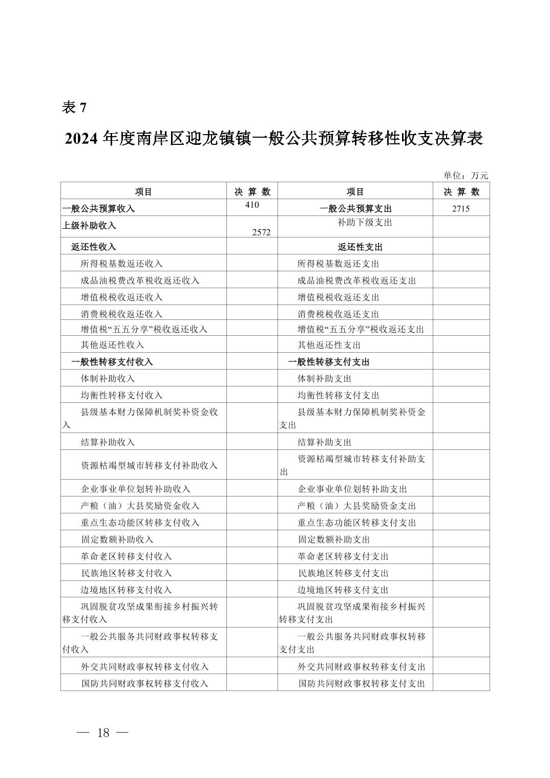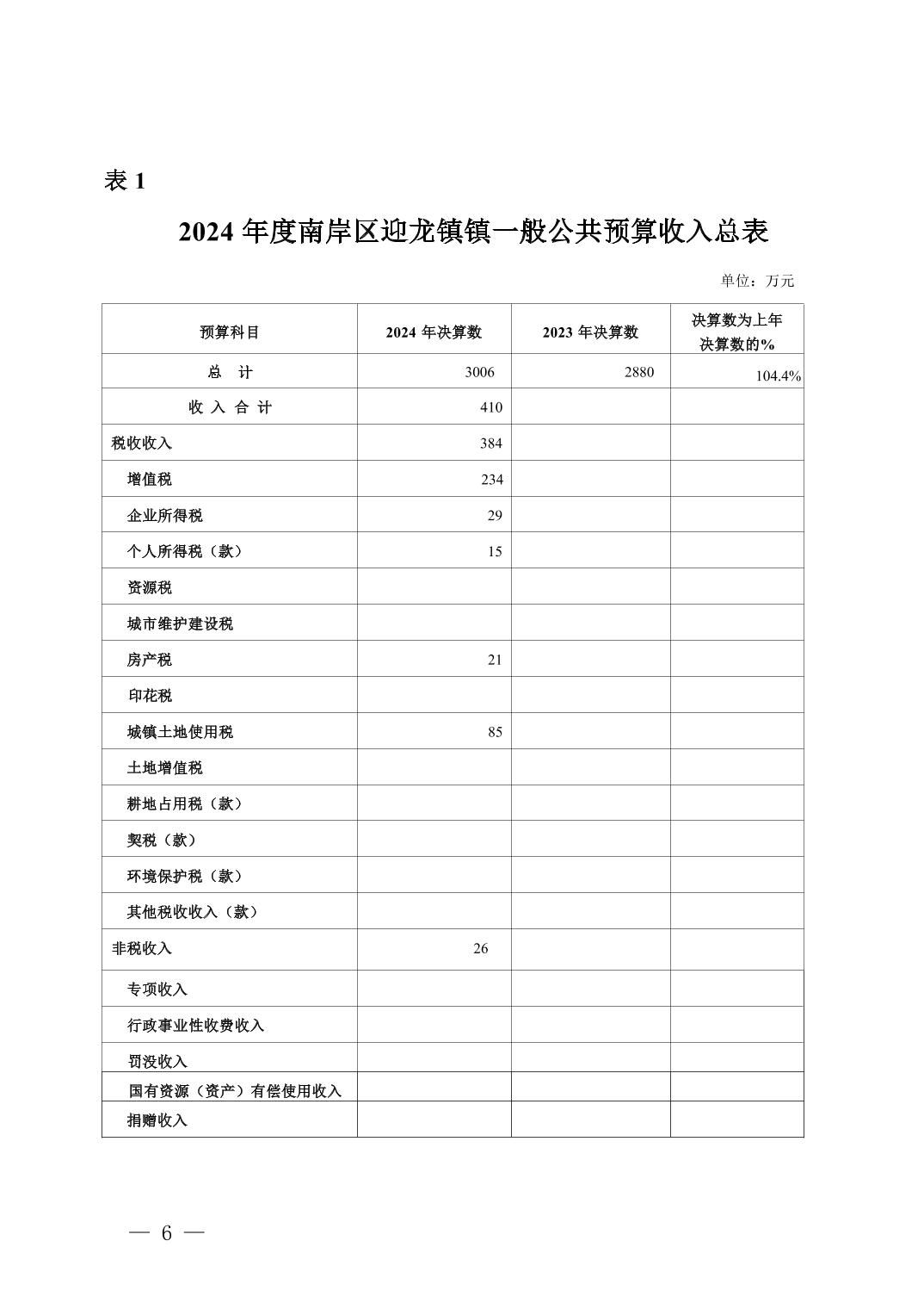 重庆市南岸区迎龙镇人民政府关于2024年财政总决算草案情况的报告