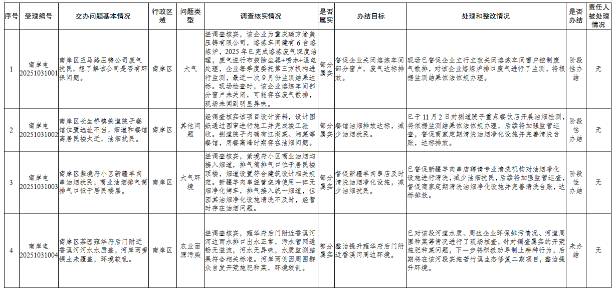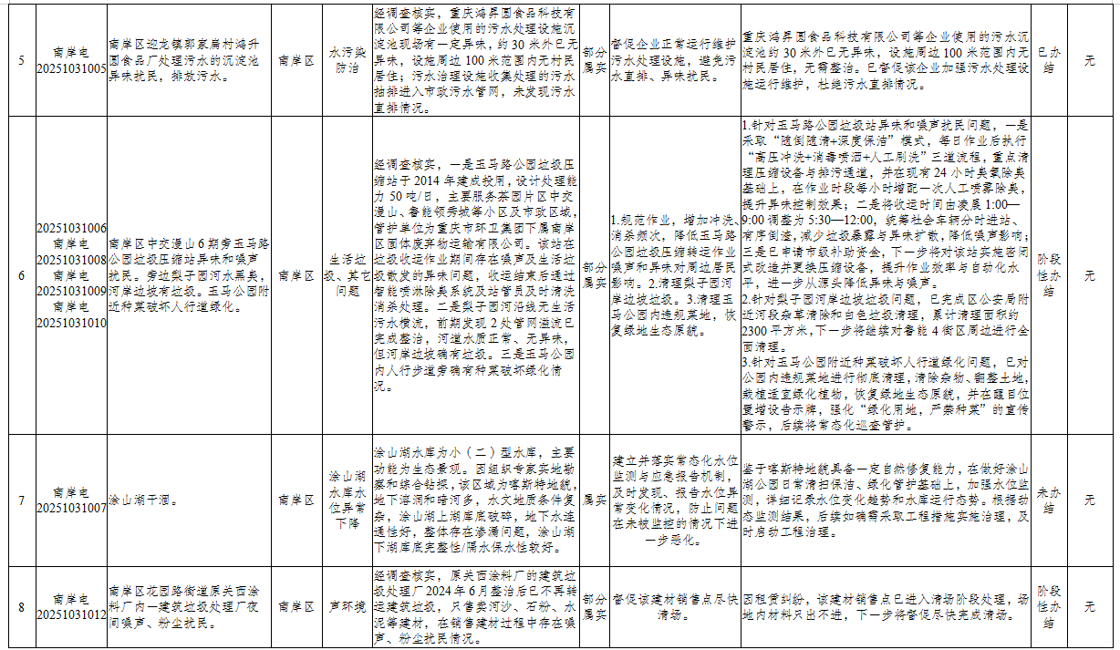 重庆市第二轮第三批第一生态环境保护督察组群众信访举报转办和边督边改公开情况一览表(第三批)