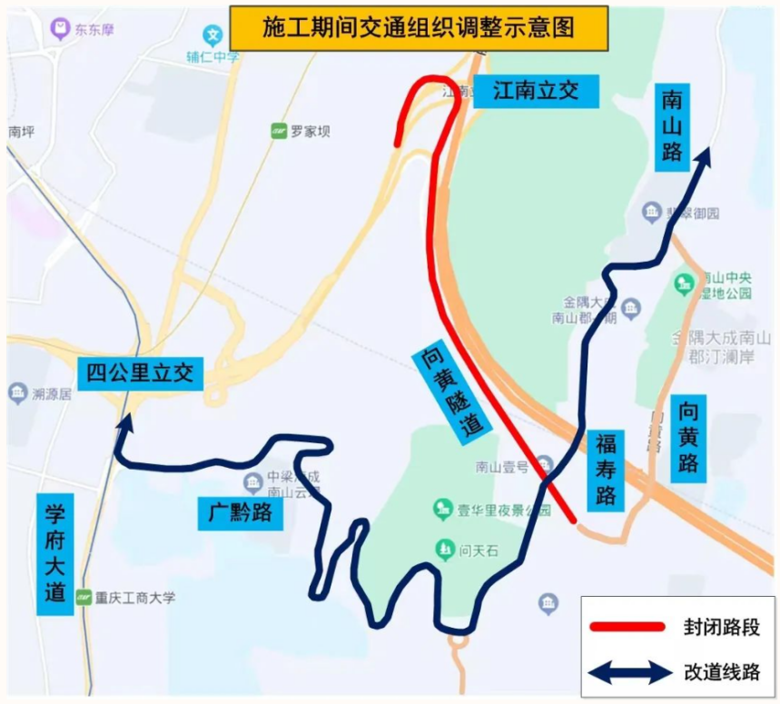 绕行路线:南山—广黔路—江南大道—四公里立交