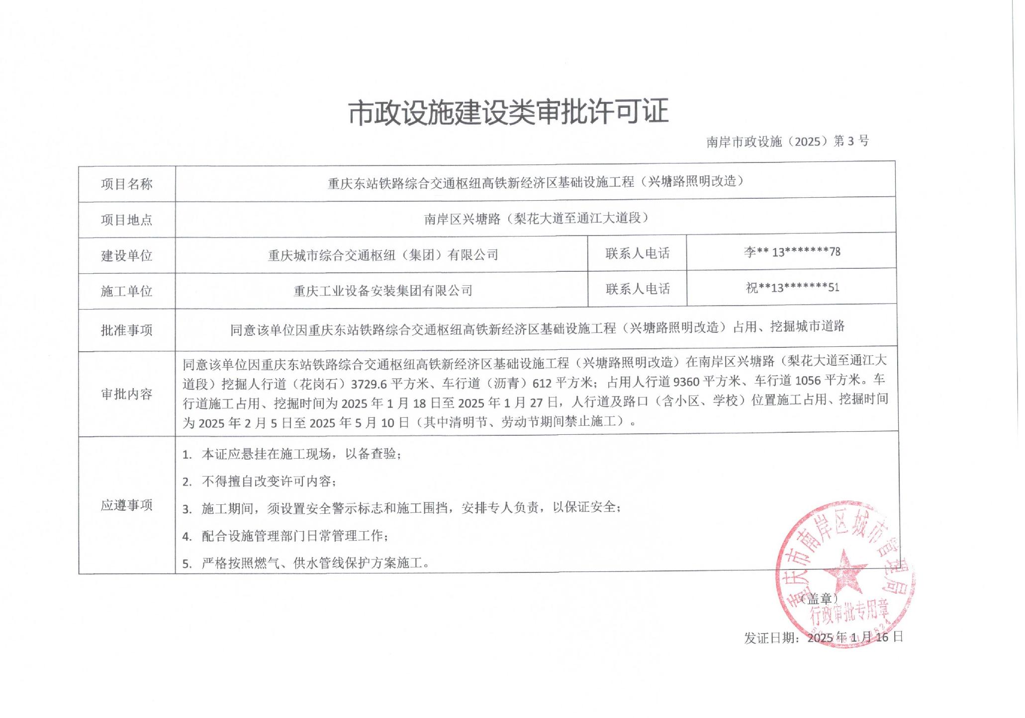 南岸市政设施(2025)第3号-重庆东站铁路综合交通枢纽高铁新经济区基础设施工程(兴塘路照明改造)