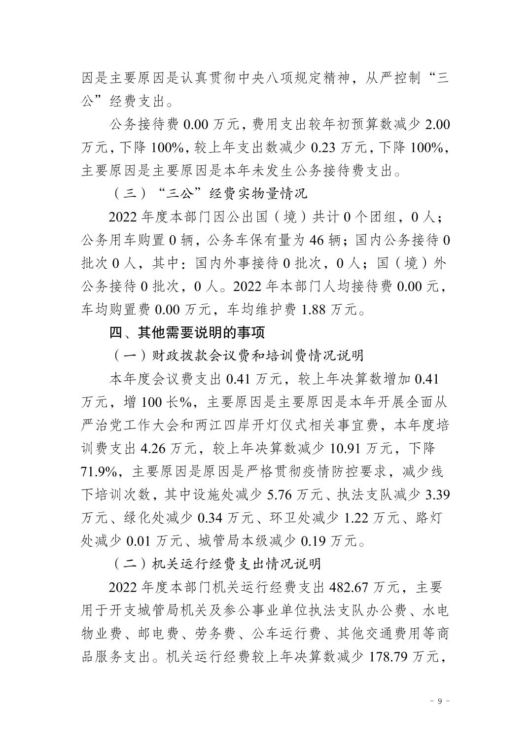 重庆市南岸区城市管理局2022年度部门决算情况说明