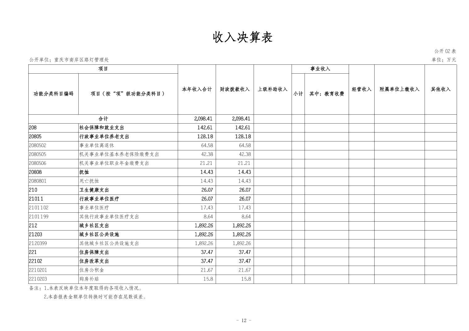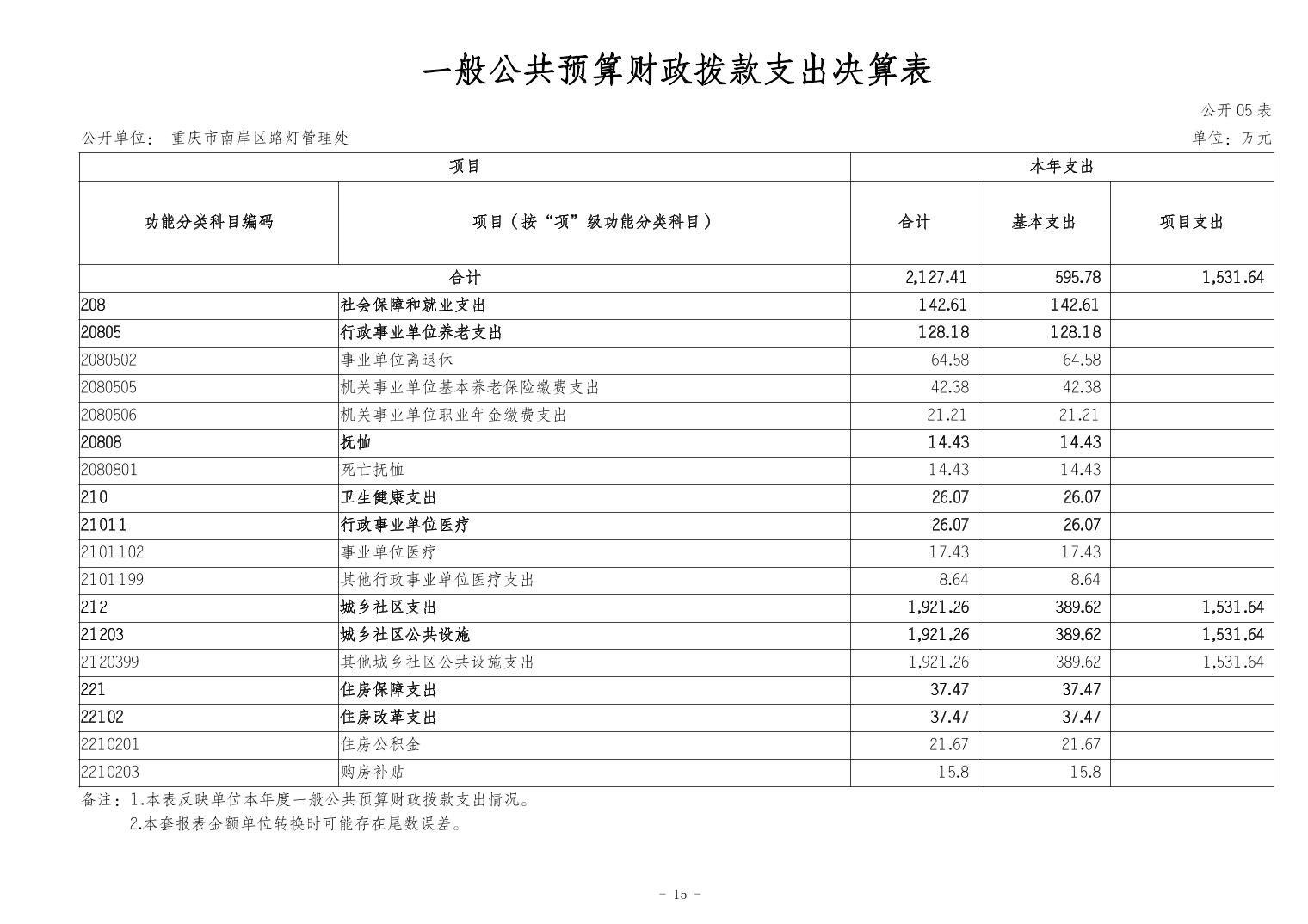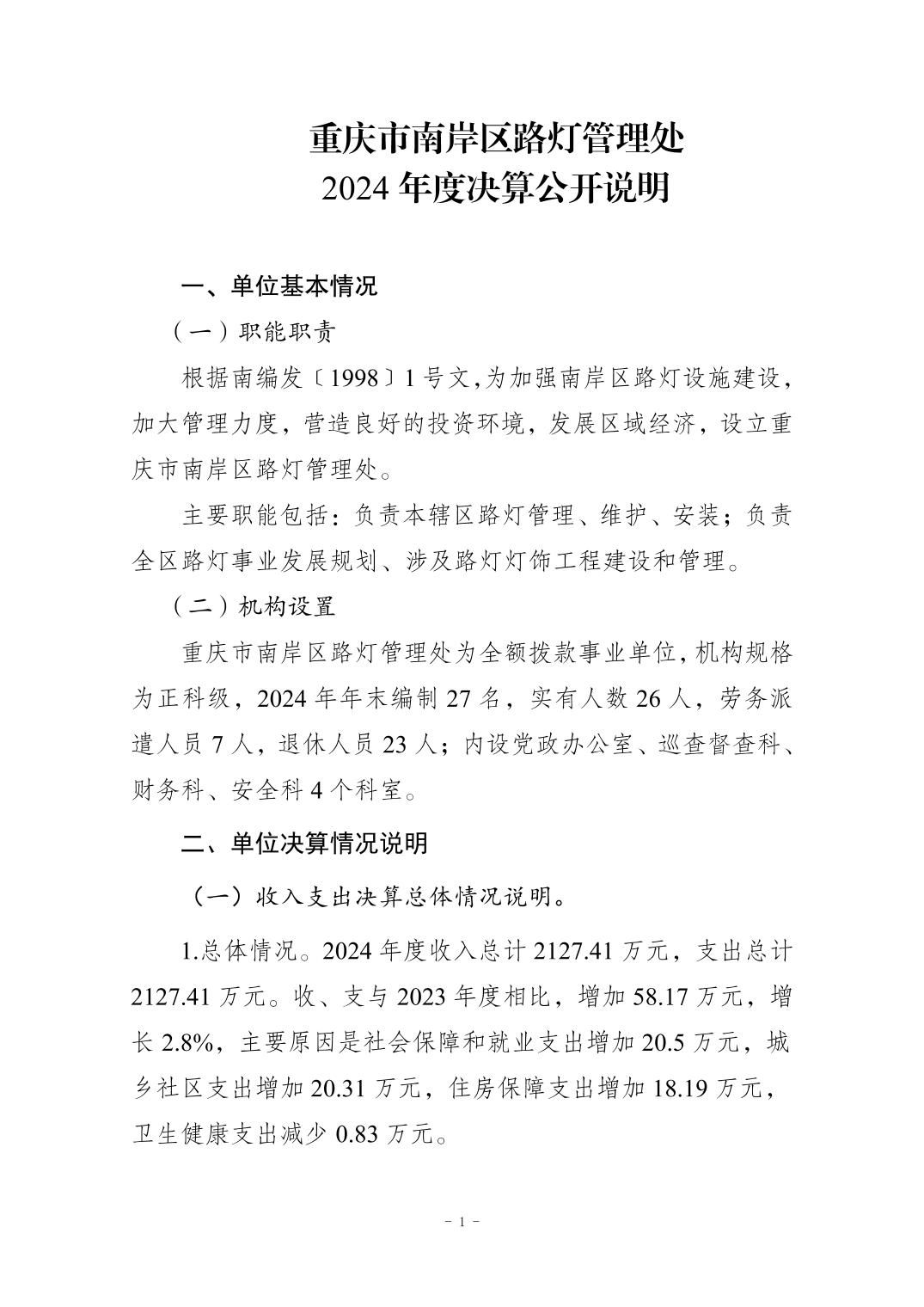 重庆市南岸区路灯管理处2024年度决算公开说明