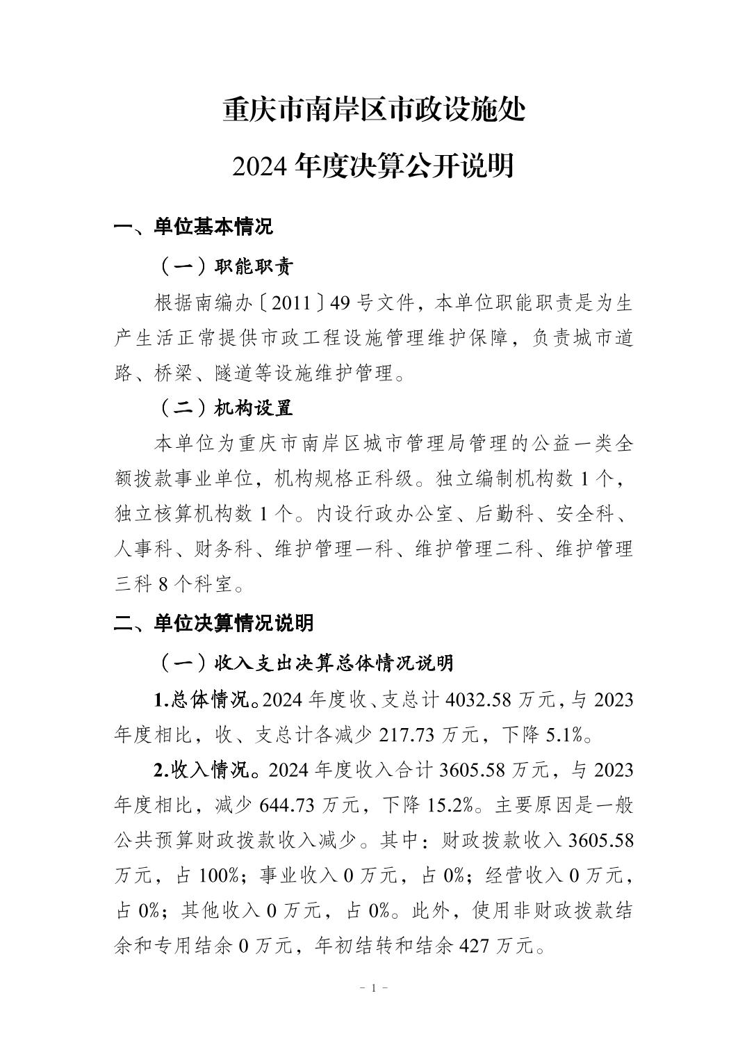 重庆市南岸区市政设施管理处2024年度决算公开说明