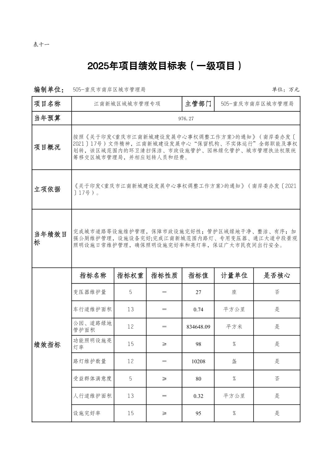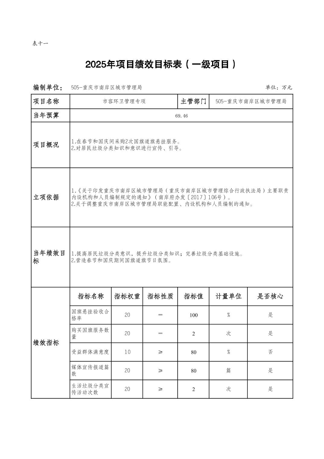 重庆市南岸区城市管理局2025年部门预算情况说明