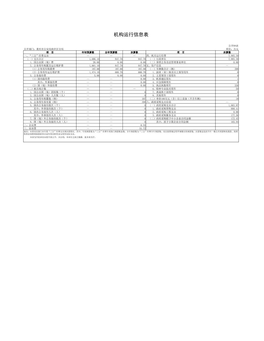 重庆市公安局南岸区分局2022年度部门决算情况说明