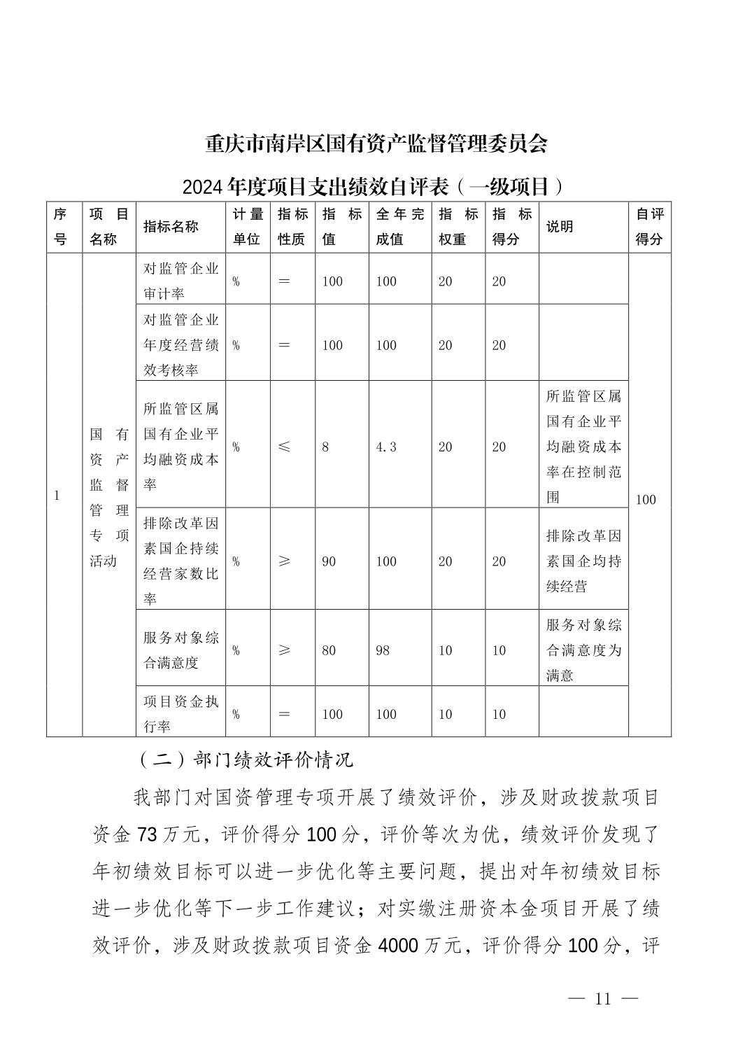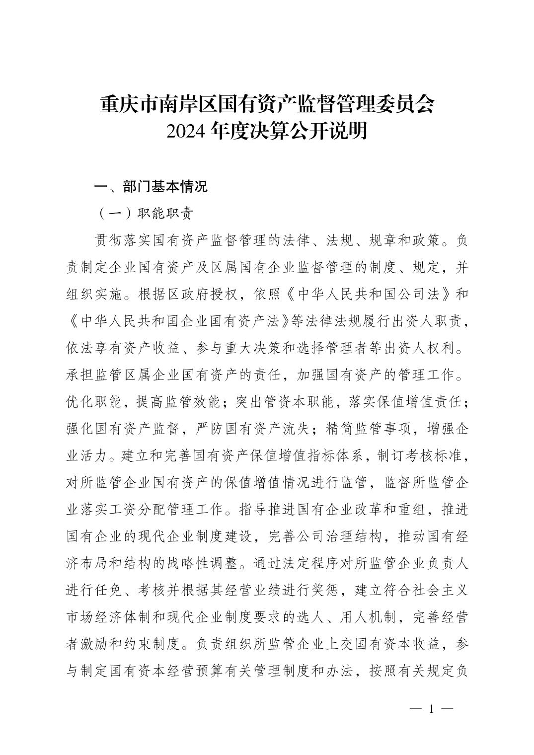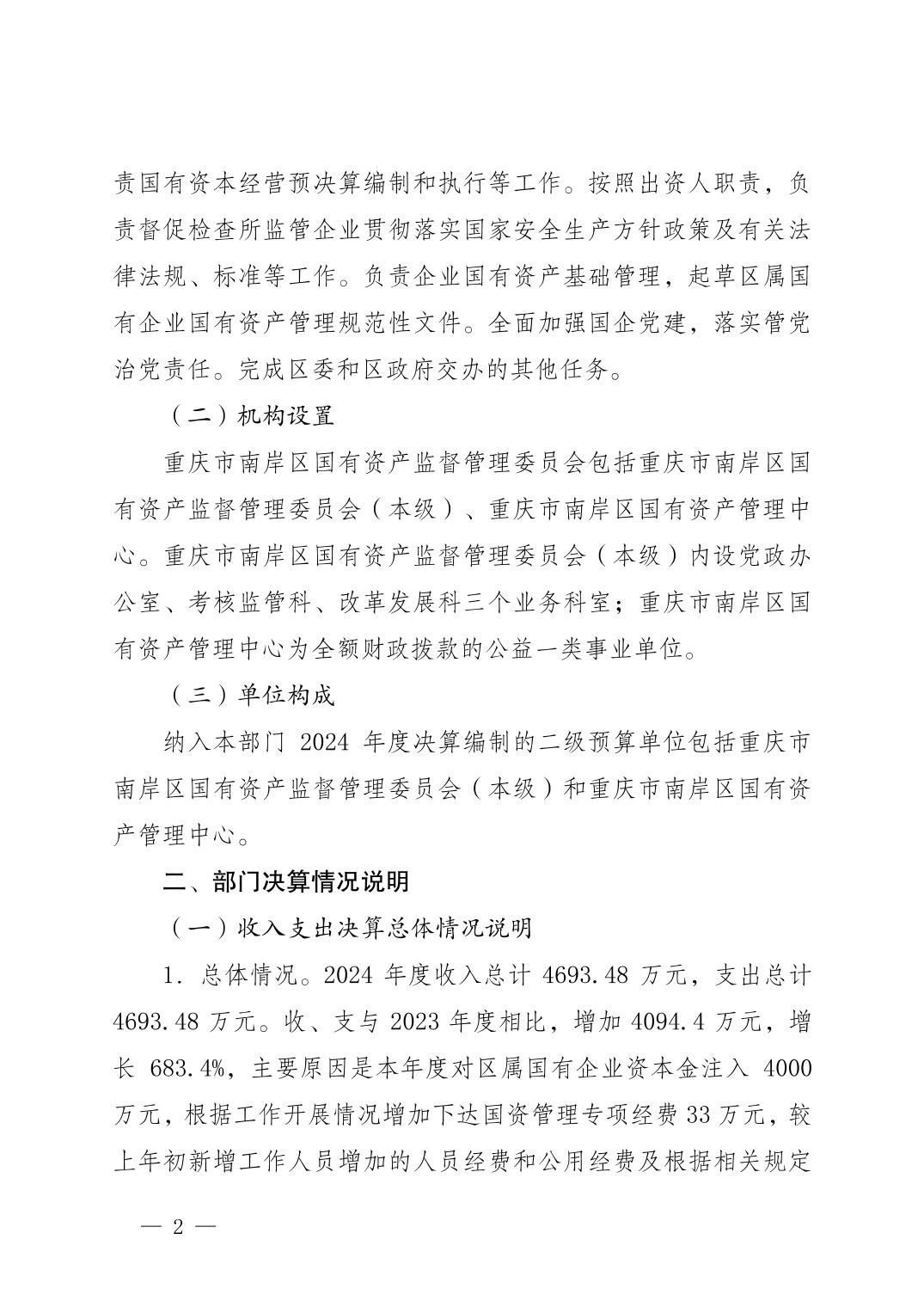 重庆市南岸区国有资产监督管理委员会2024年度决算公开说明