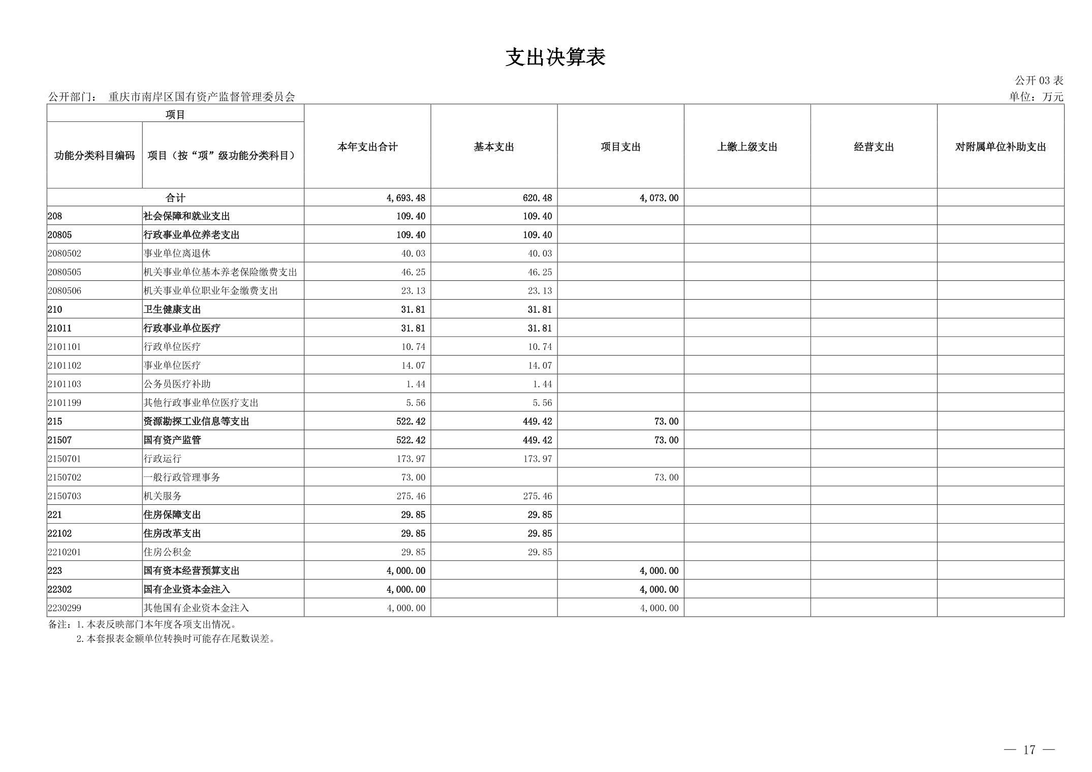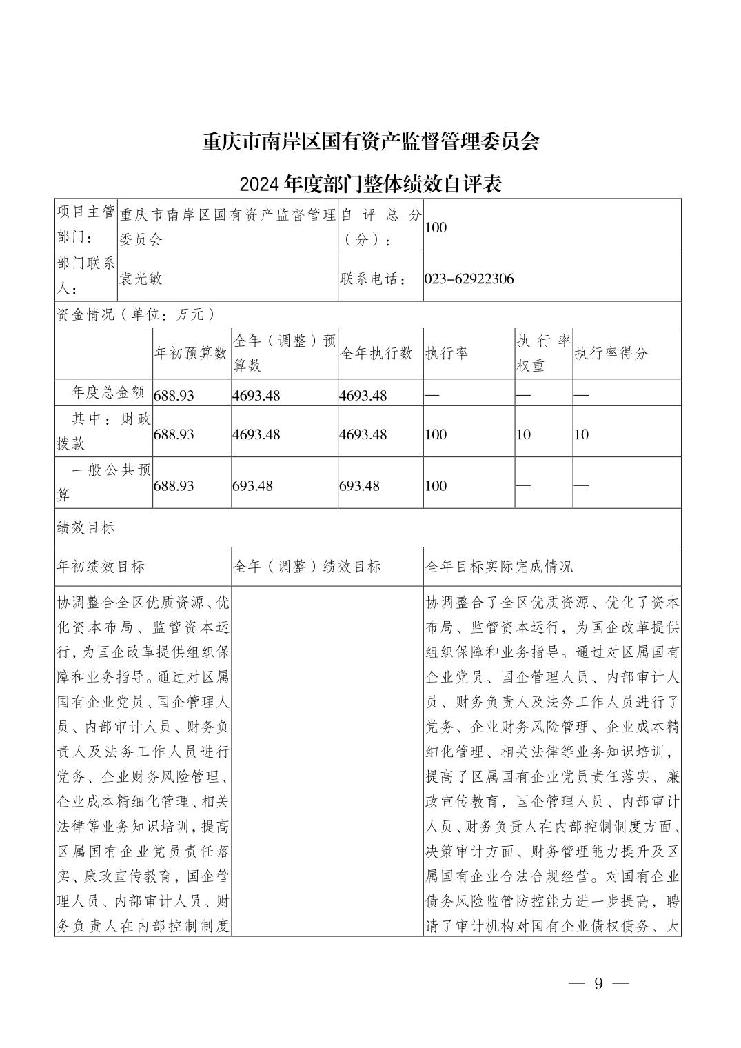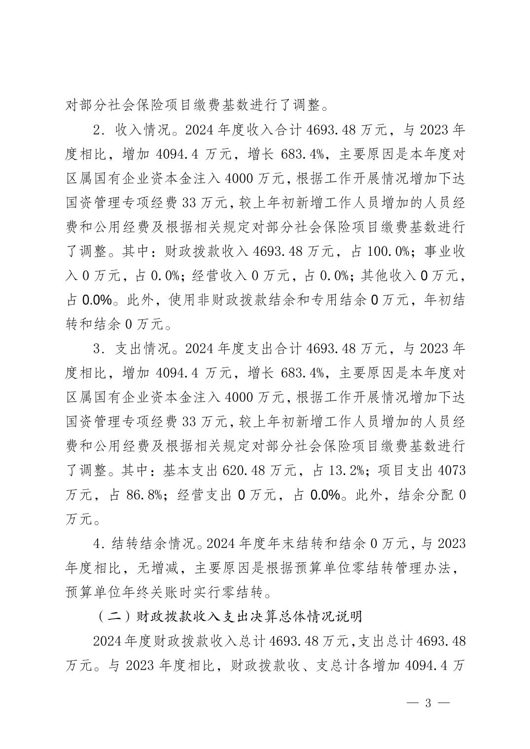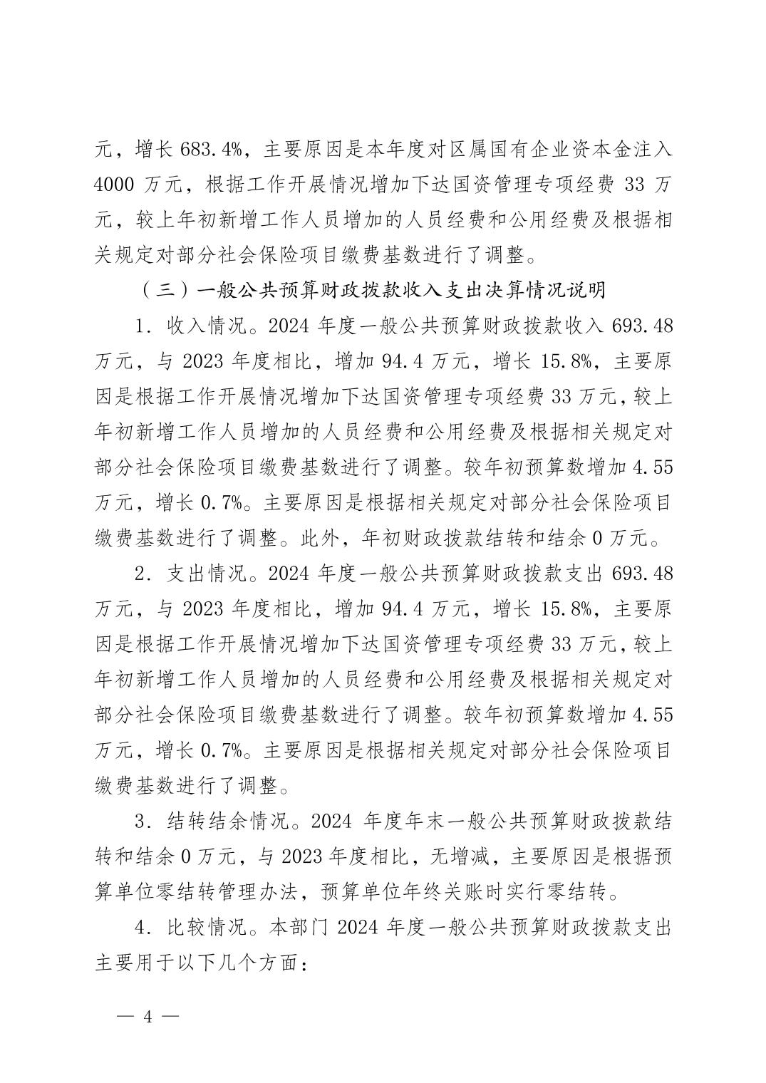重庆市南岸区国有资产监督管理委员会2024年度决算公开说明