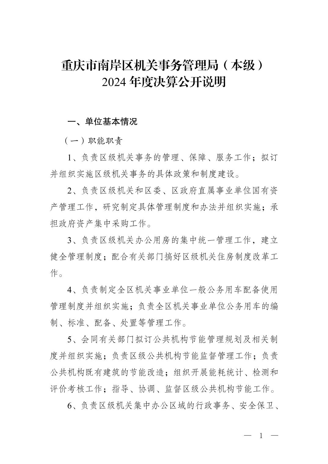 重庆市南岸区机关事务管理局(本级)2024年度决算公开说明