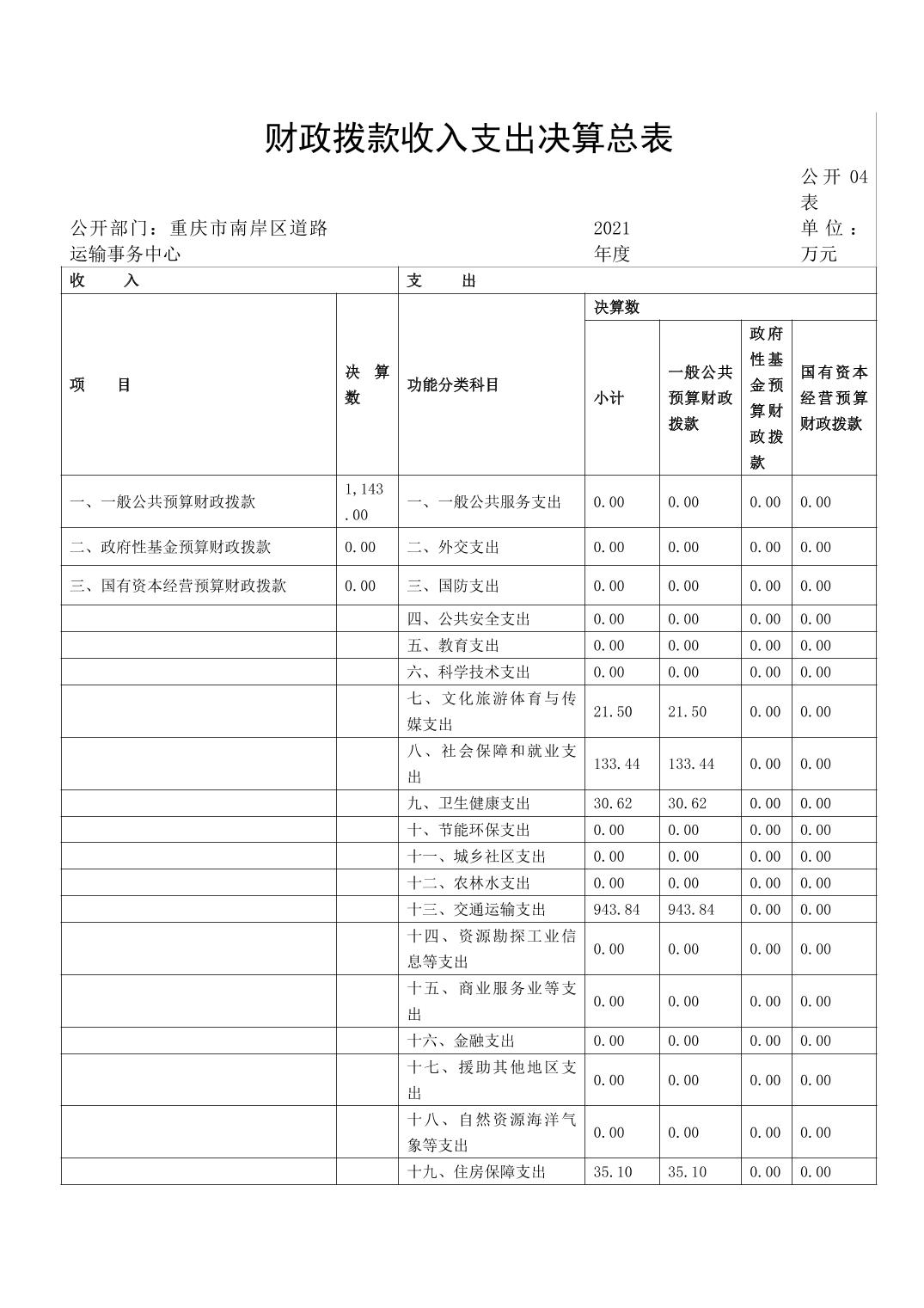 区交通运输委>政务公开>法定主动公开内容>预算/决算>财政决算