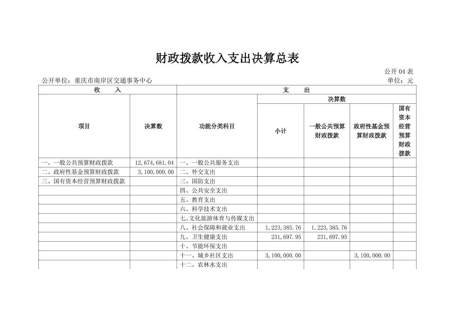 区交通运输委>政务公开>法定主动公开内容>预算/决算>财政决算