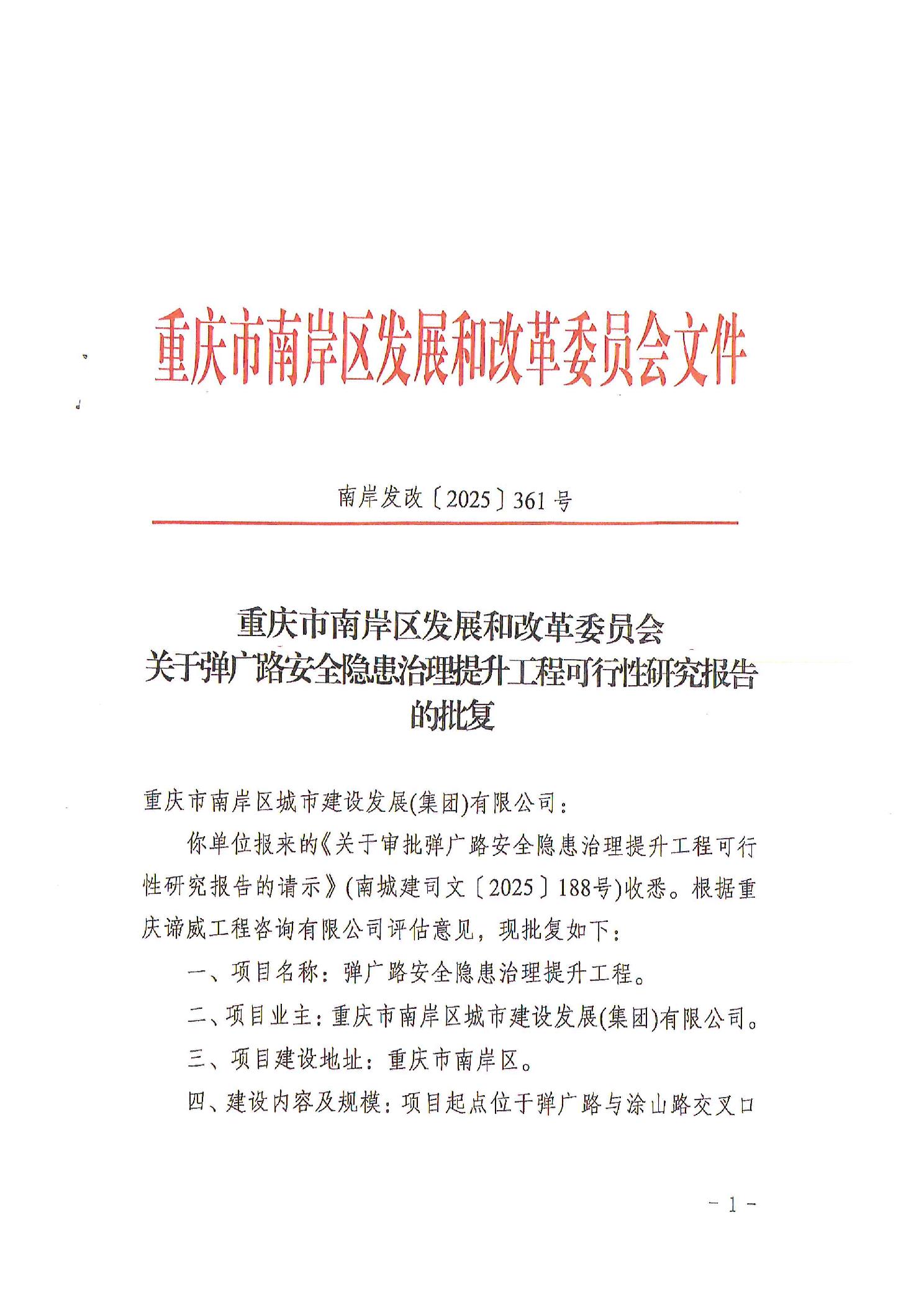 关于弹广路安全隐患治理提升工程可行性研究报告的批复