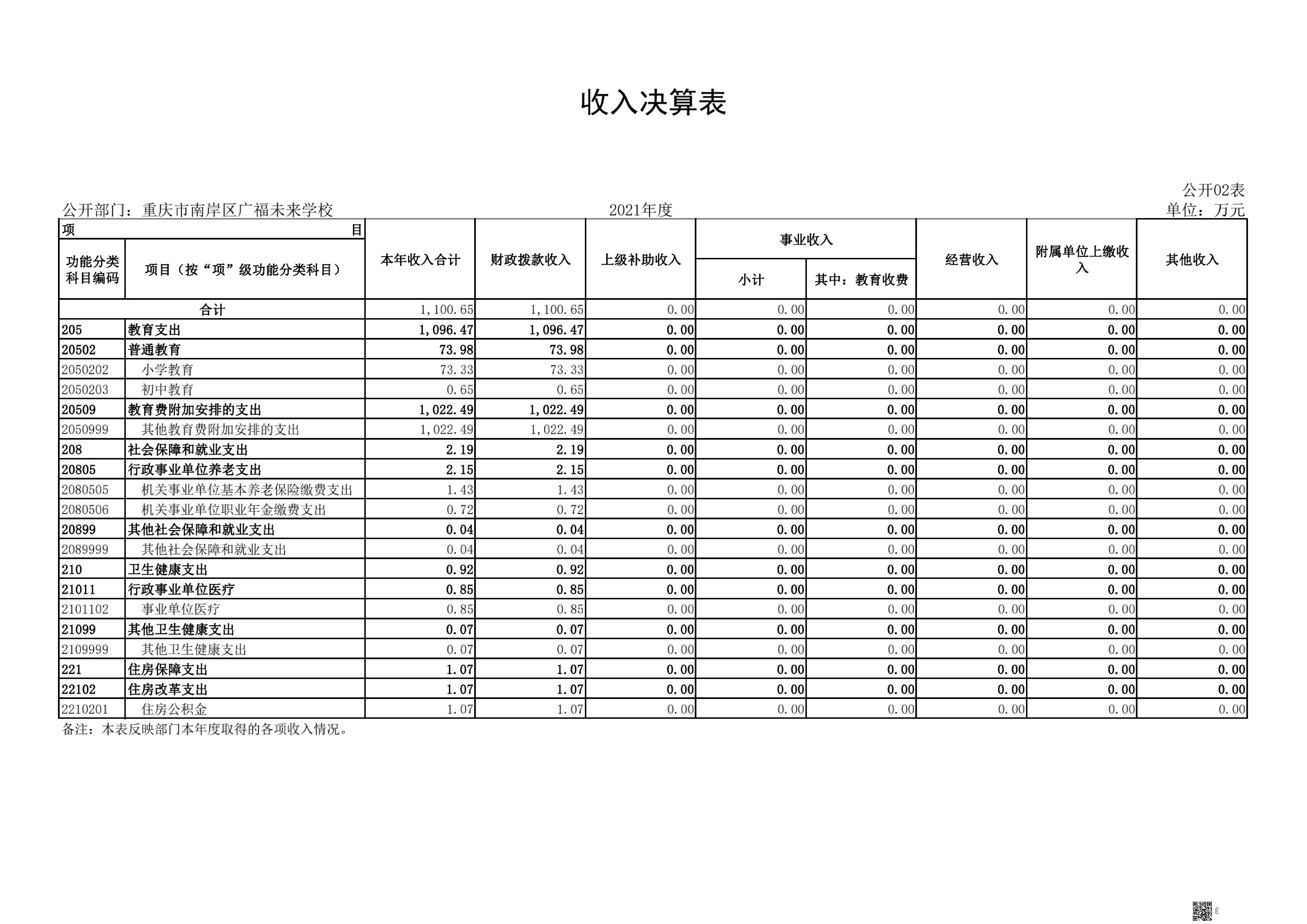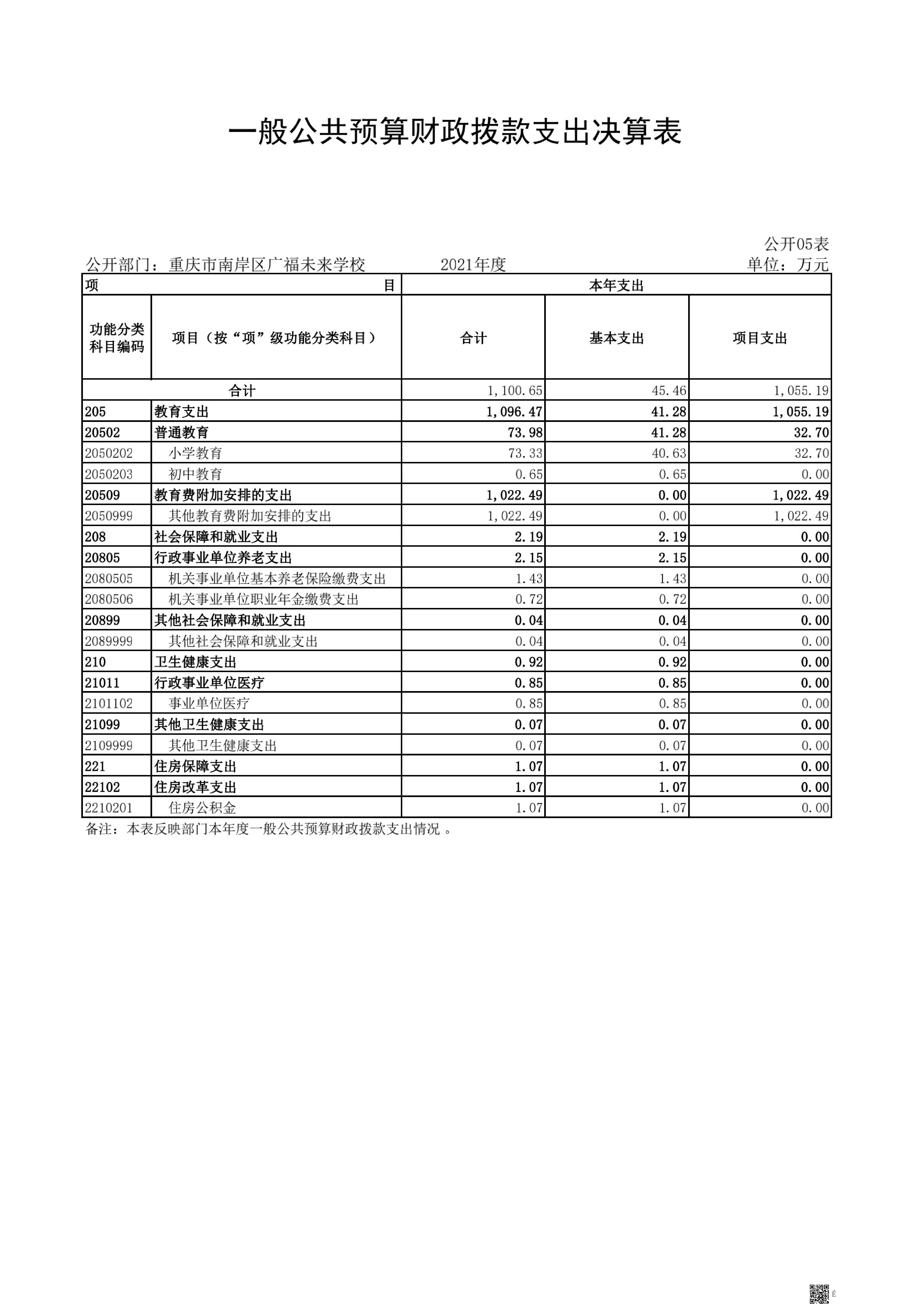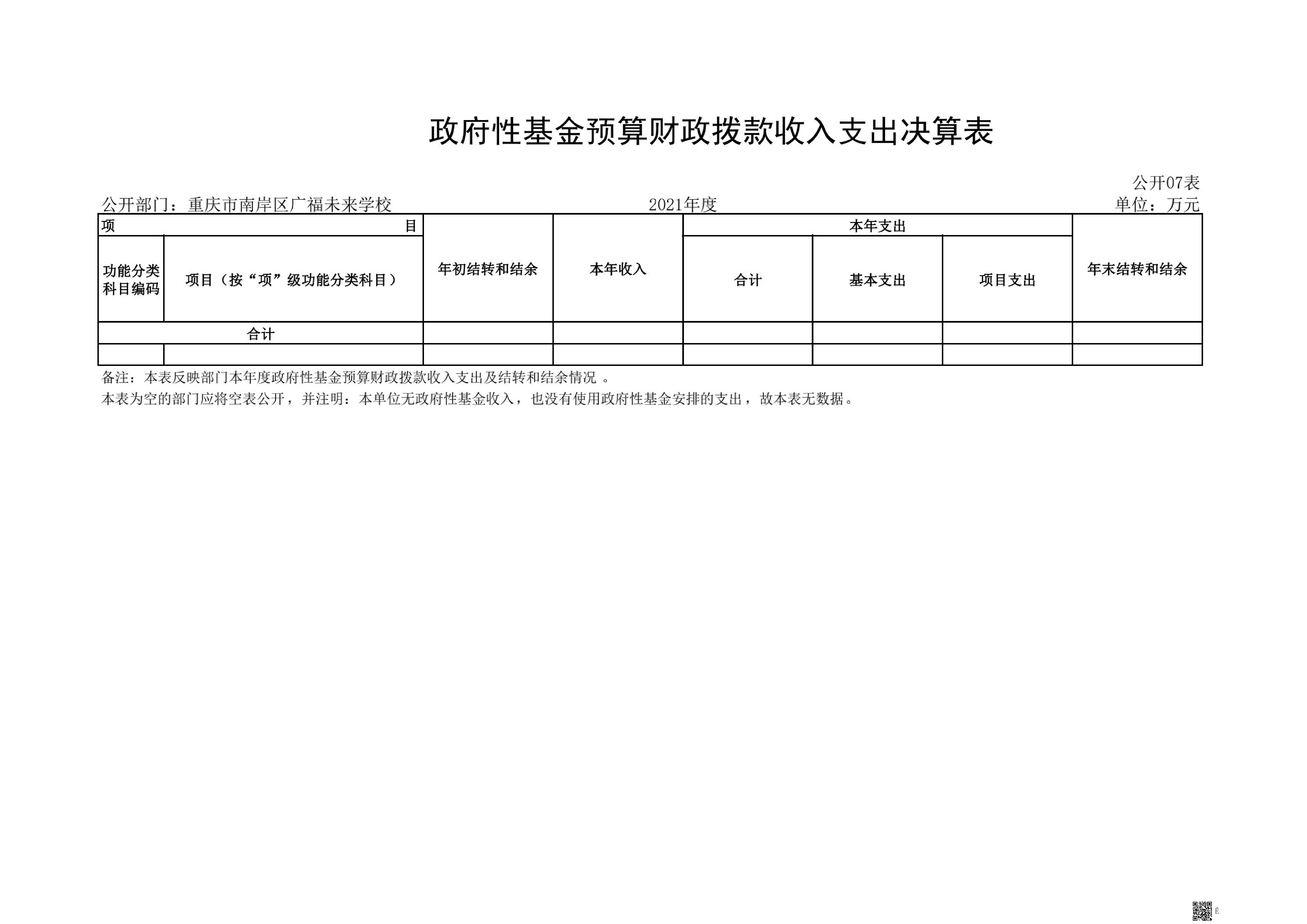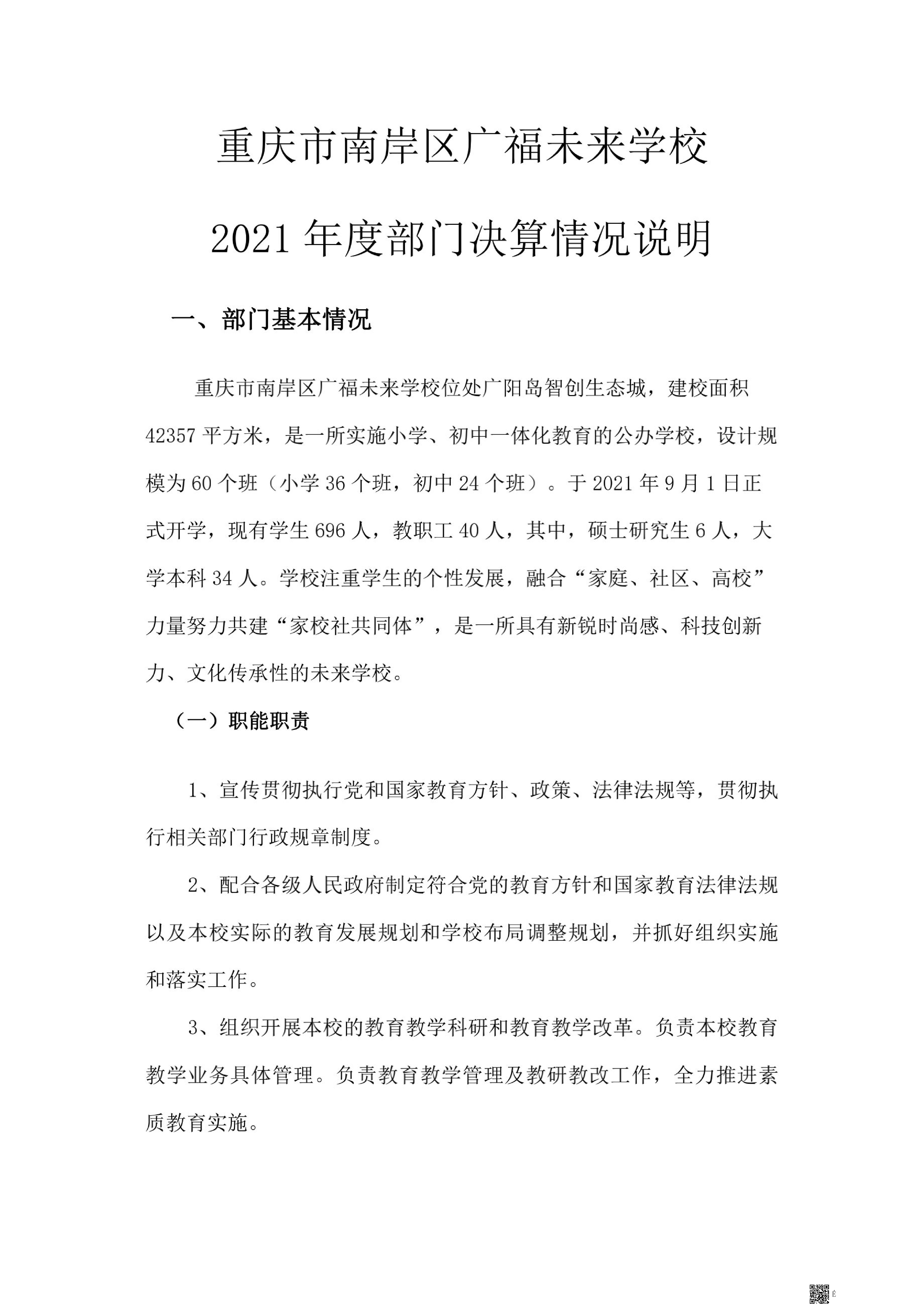 重庆市南岸区广福未来学校2021年决算