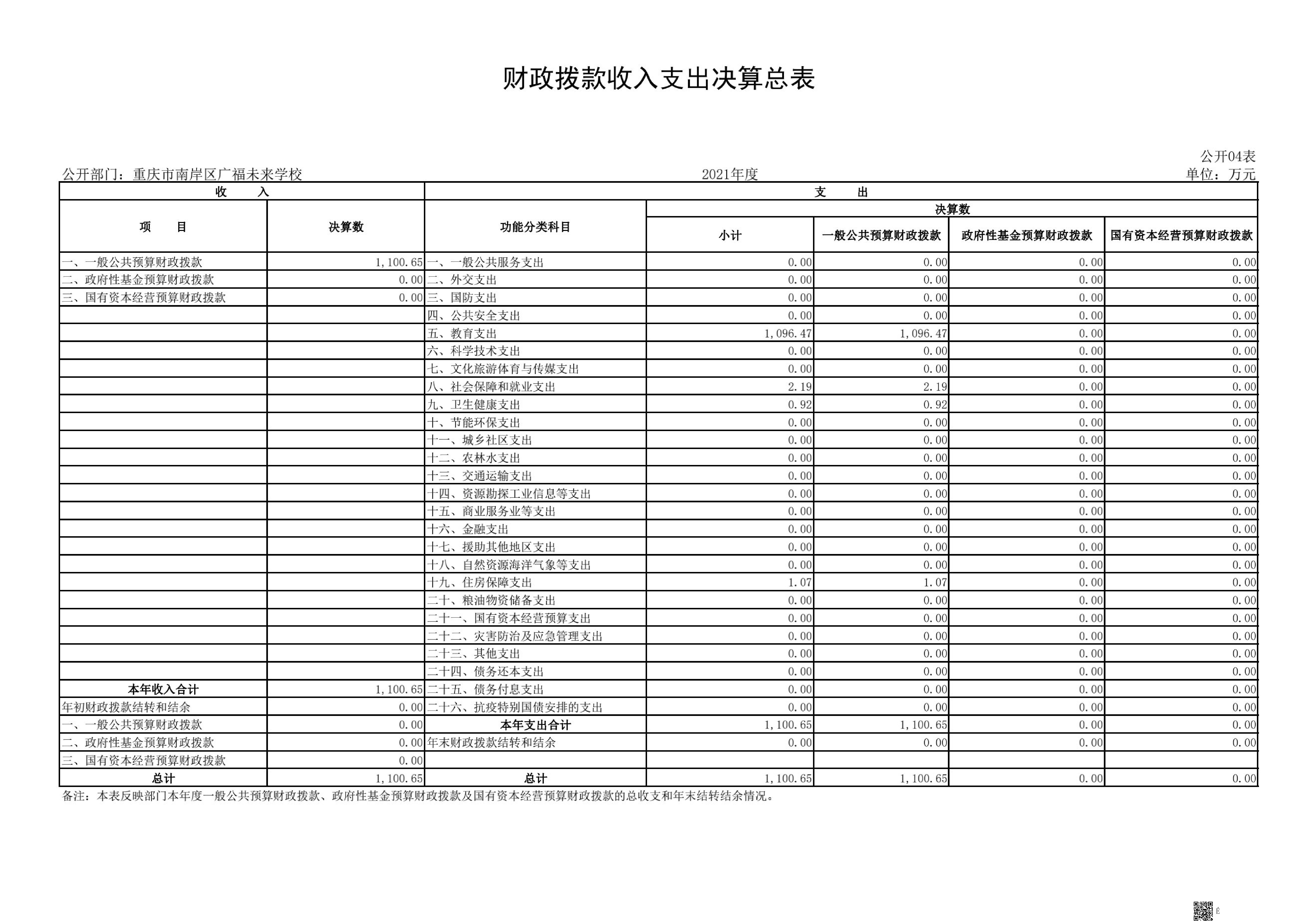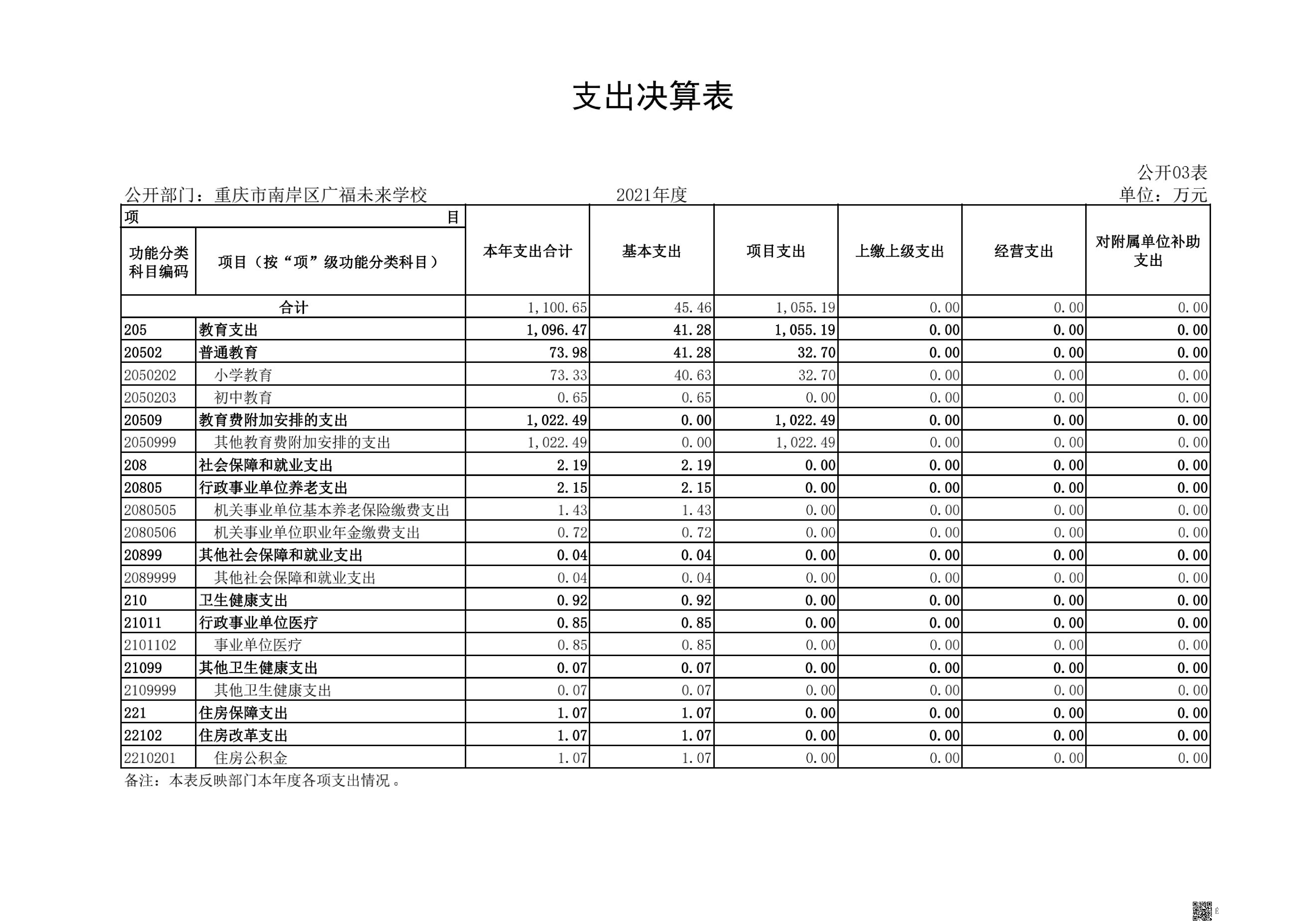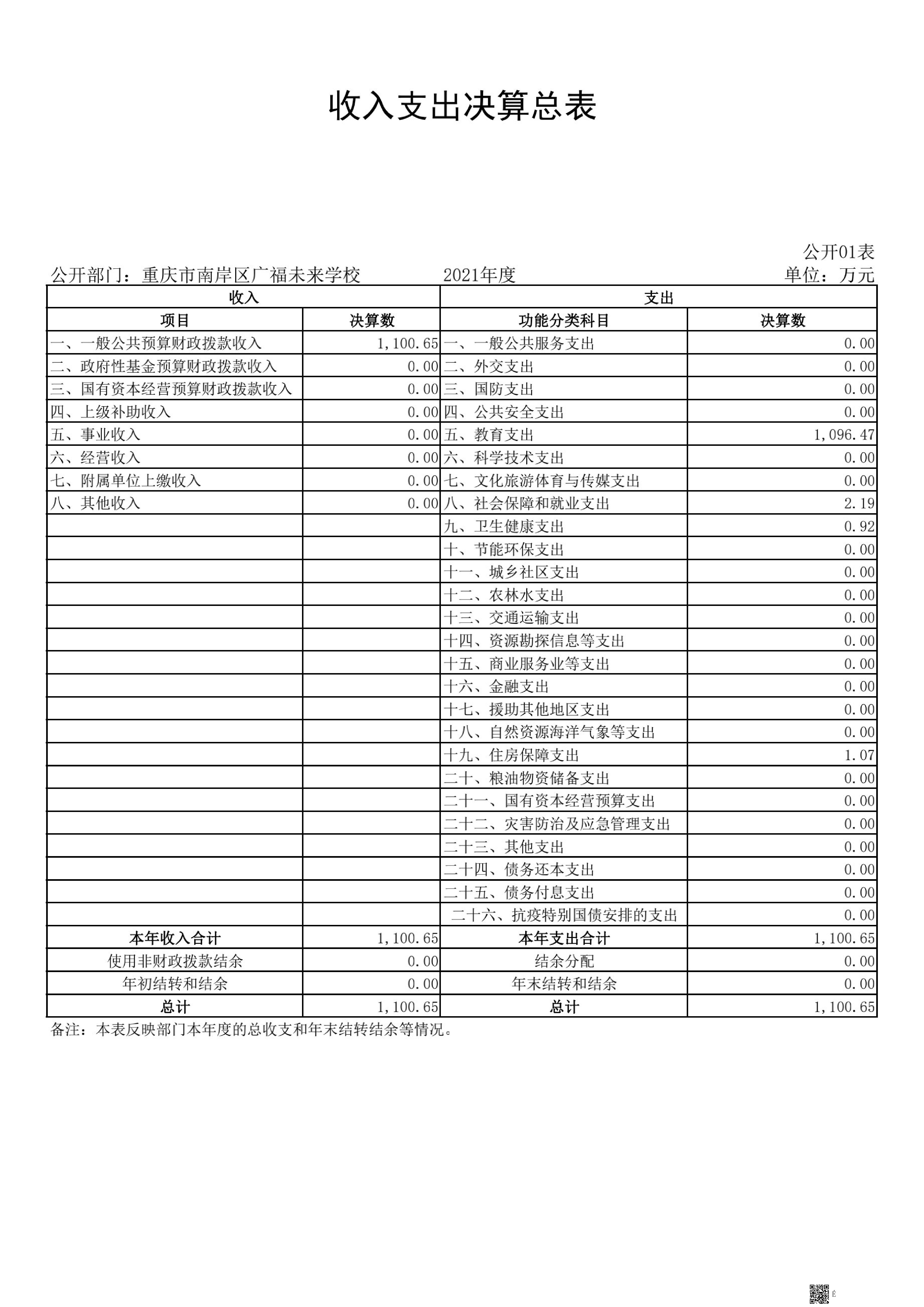 重庆市南岸区广福未来学校2021年决算