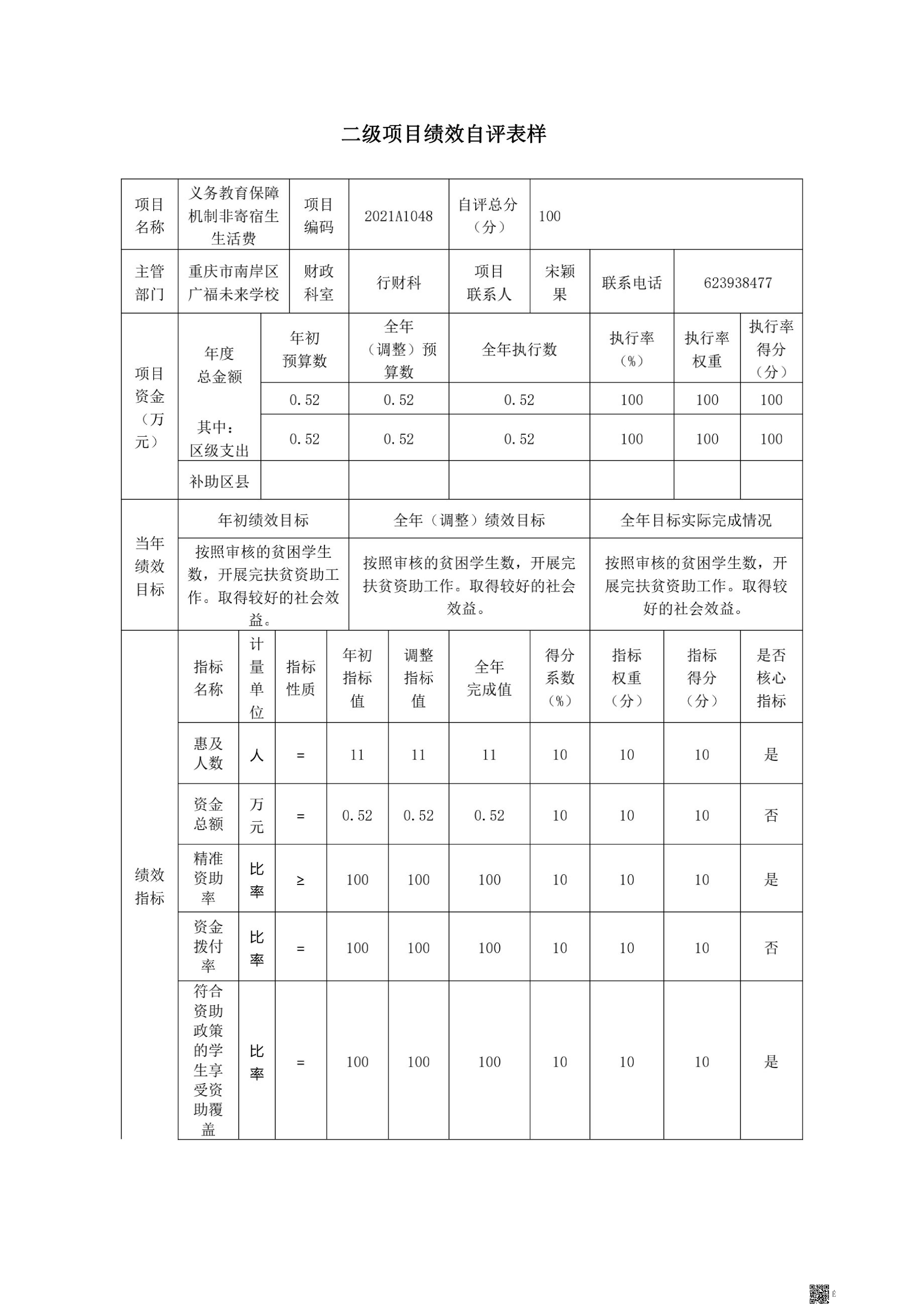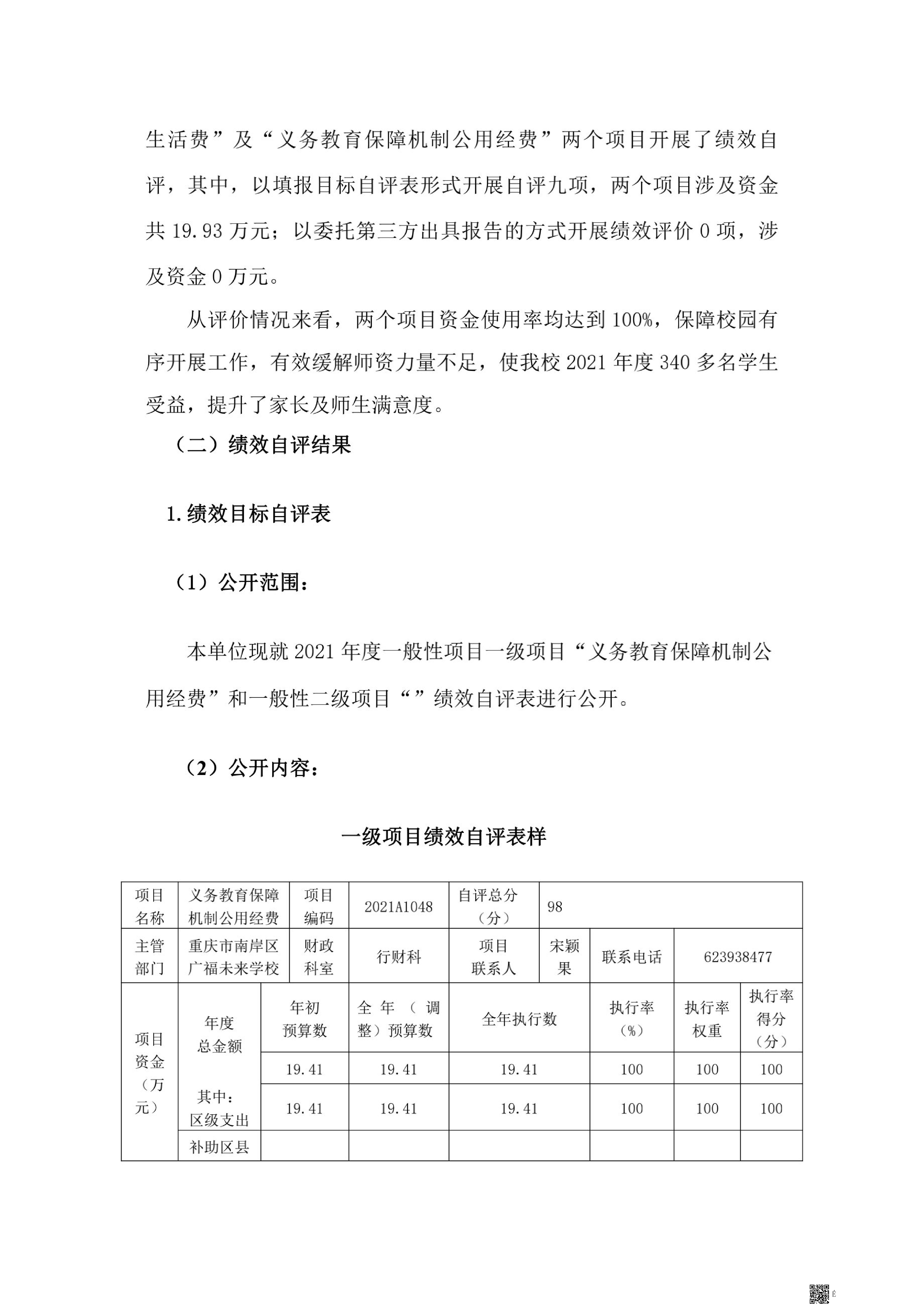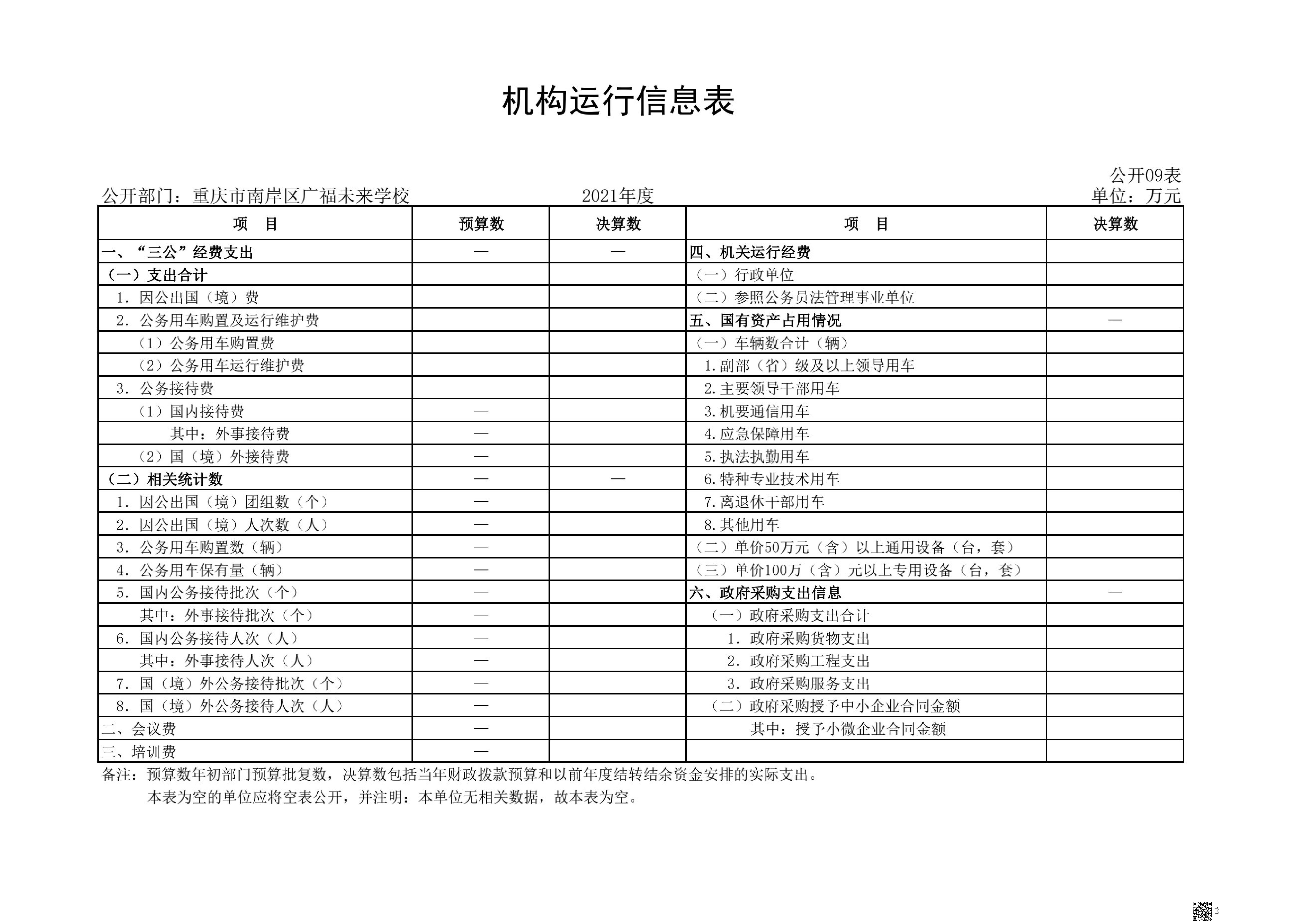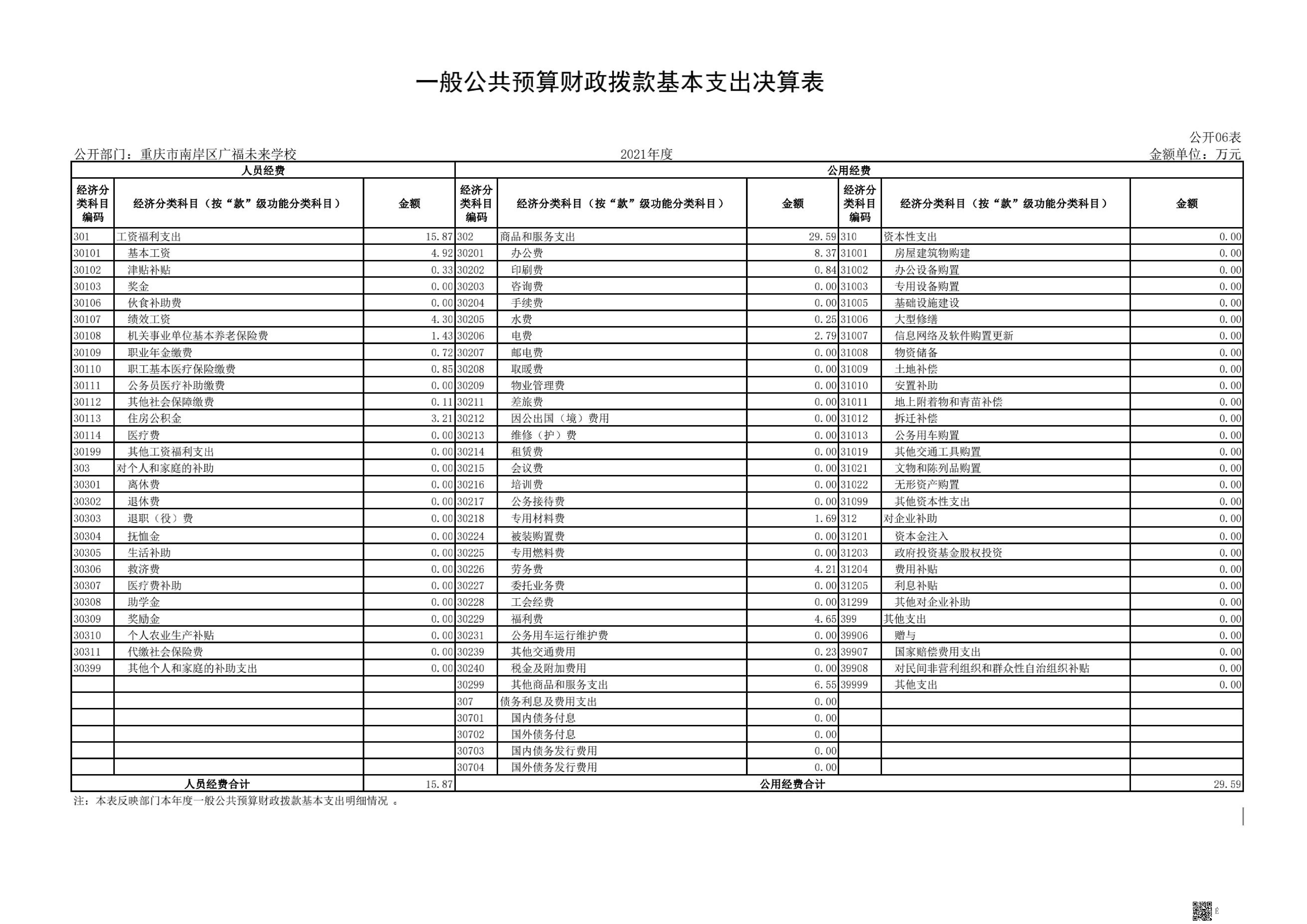 重庆市南岸区广福未来学校2021年决算